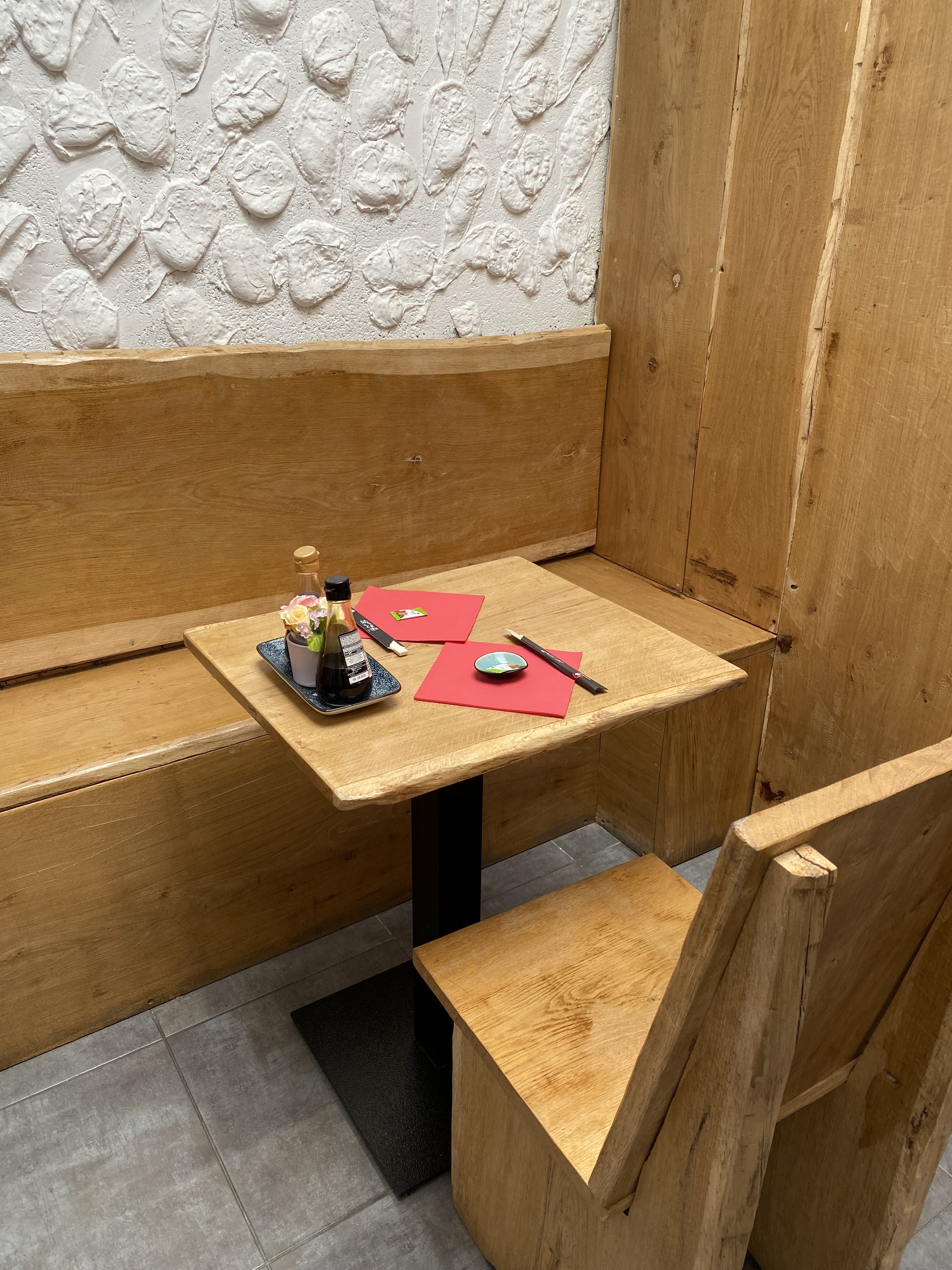 Je n'ai pas mangé des sushis mais un banal riz nature avec du poisson. Il manquait tout ce qui fait un bon sushi (la préparation du riz !). Je n'y retournerai pas.