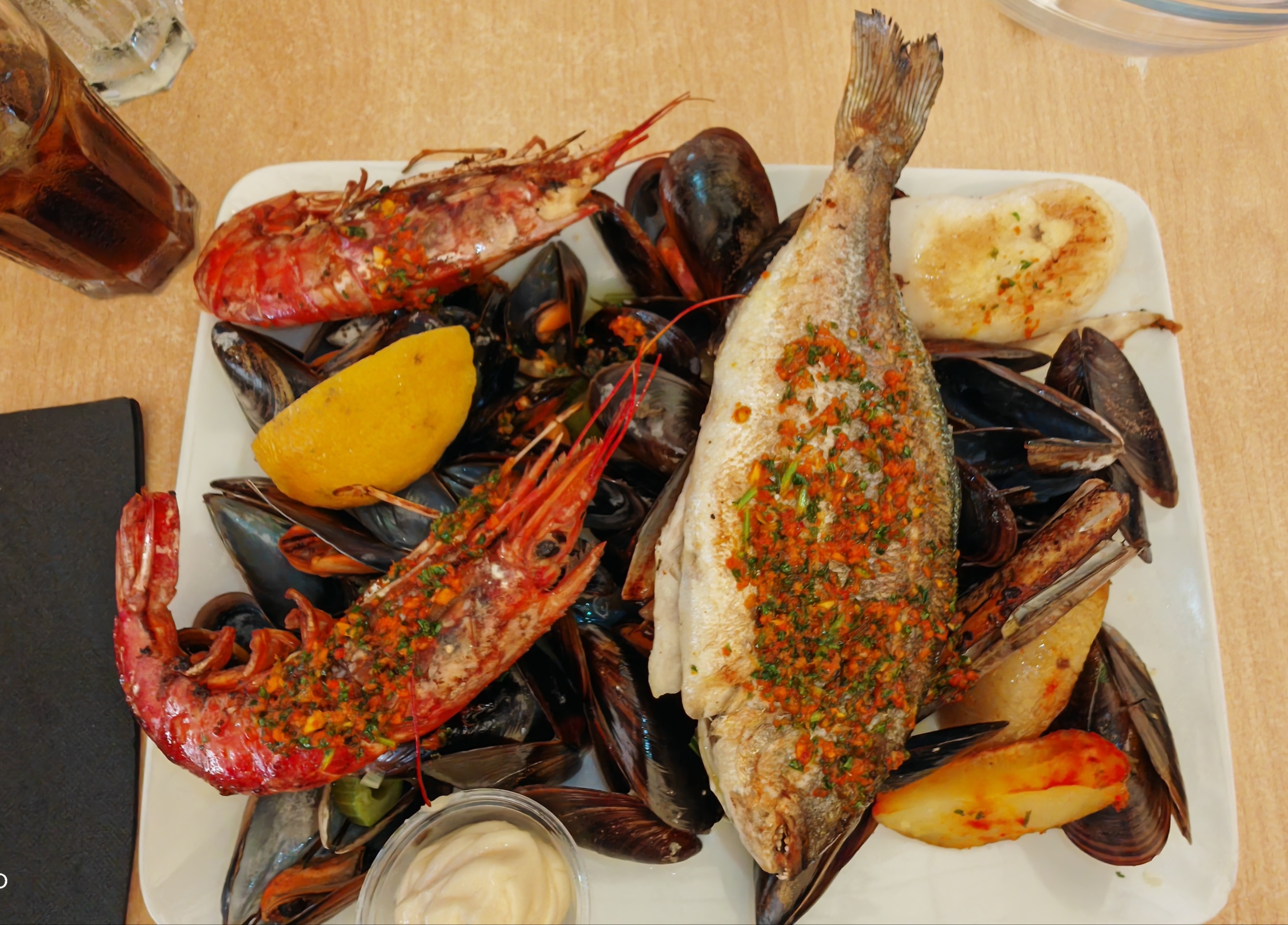 Bonjour les internautes accueil chaleureux le serveur attentionné nous avons pris une parillade de poissons juste il manquait une petite sauce (aïoli) et frites car que des moules et gambas il manquait un accompagnement (frites ou salade) sinon rien a dire bonne vacances sur Argèles 😊