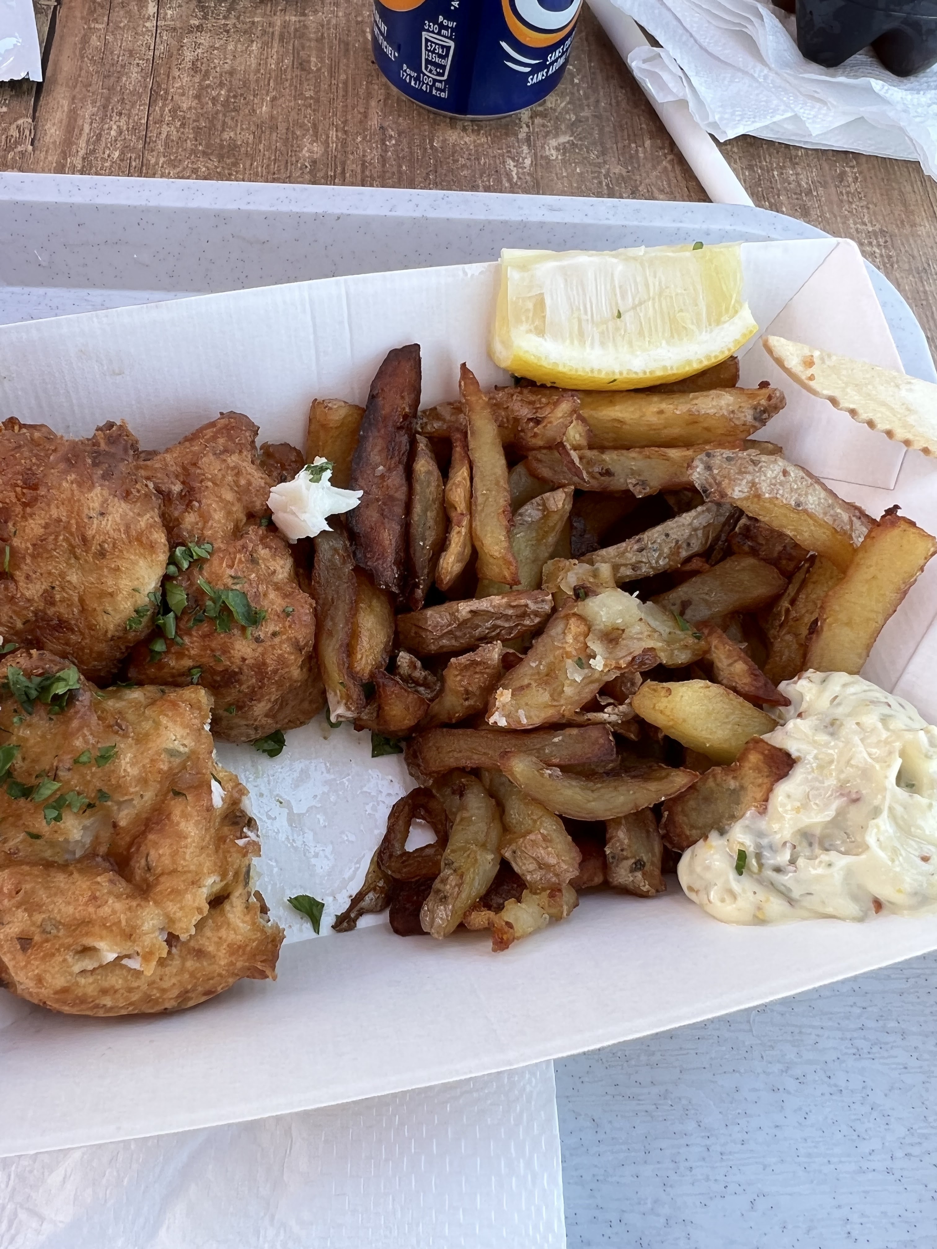 Fishez le camps ! Point positif, le personnel est gentil. Mais pour la nourriture c’est la cata. 12€ pour un fish and ships de l’horreur. Avec des frites noires imbibées d’huile qui doit avoir 3 semaines. Mes artères ont commencé à se boucher avant même de manger.