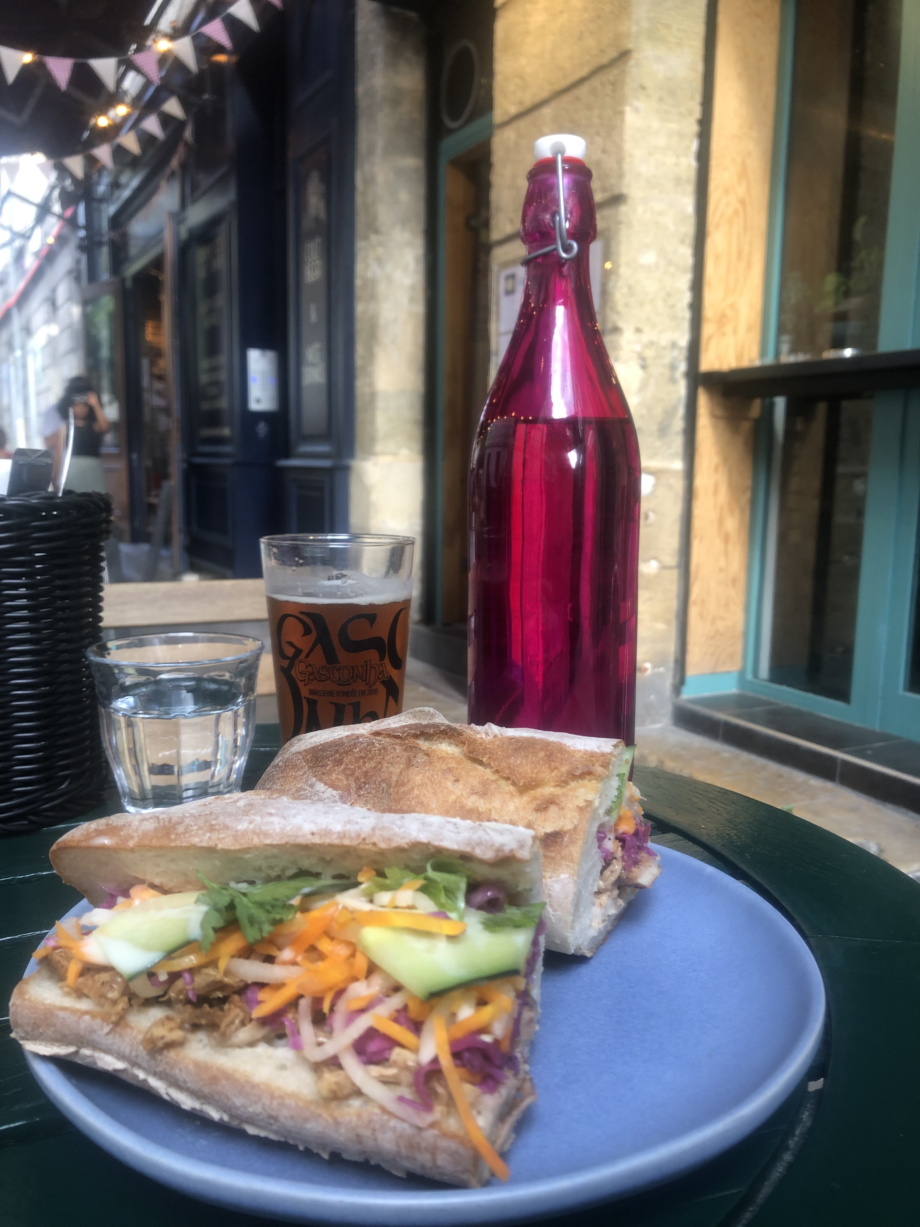 Le Tofu Bahn Mi était délicieux. C'était l'un des meilleurs déjeuners que j'ai eu lors de ma visite en France. Le sandwich ne coûtait que 7 euros. Ajoutez une salade d'accompagnement pour 2 euros. Le pain était une baguette traditionnelle label rouge. Si vous êtes à Bordeaux, rendez-vous simplement à Jūp Jūp. C'est un peu en dehors du centre-ville, mais pas trop loin.