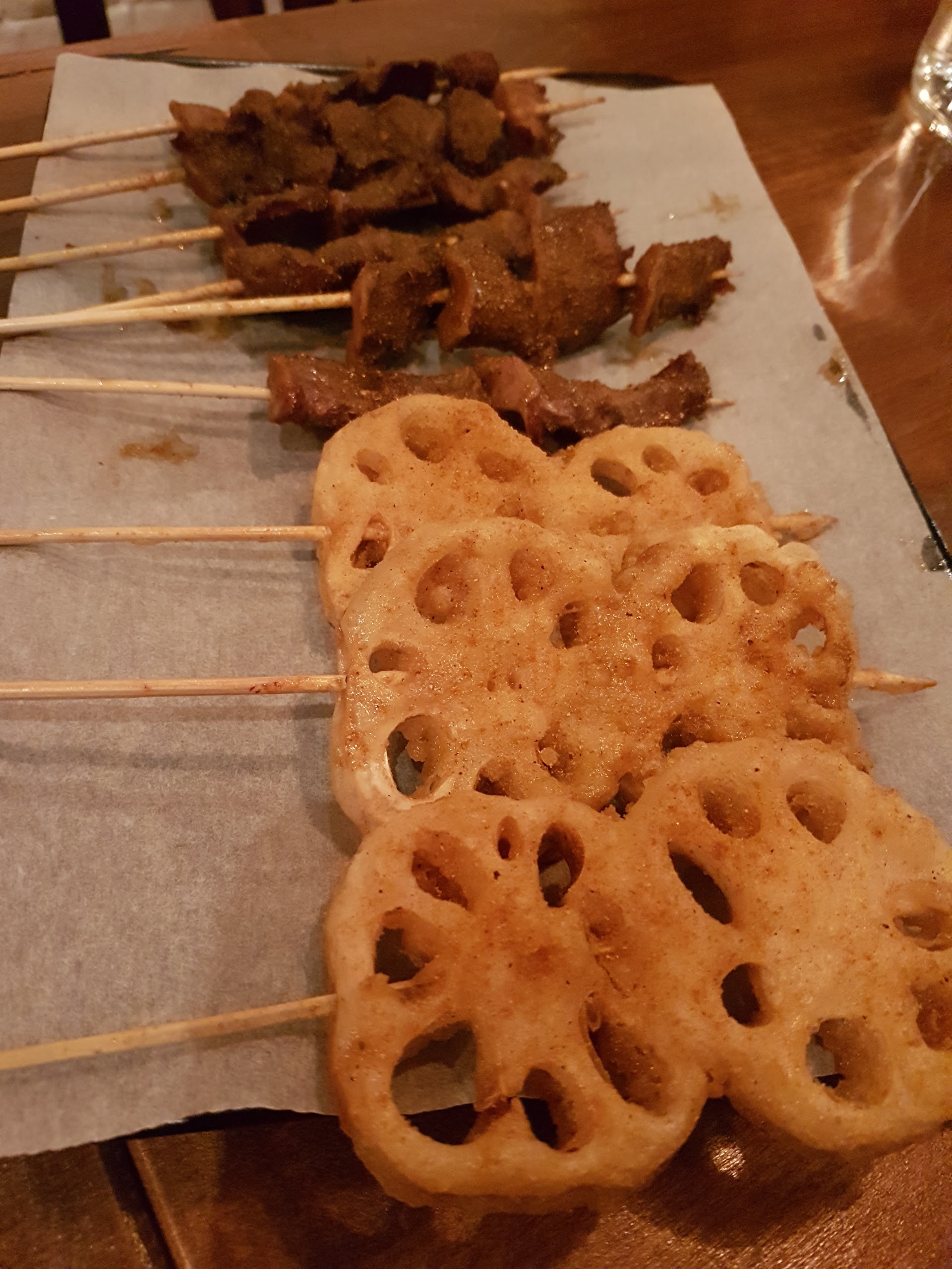 On avait envie de retrouver les saveurs des brochettes de rues de la Chine ou même de Taiwan, on a donc testé les brochettes à l'agneau et les brochettes au légume : c'est réussi, la viande est bonne et les épices bien présents. On a apprécié aussi les patates douces en beignets. La prochaine fois on teste les plats. Un restaurant original à la belle présentation et au prix correct. A tester.