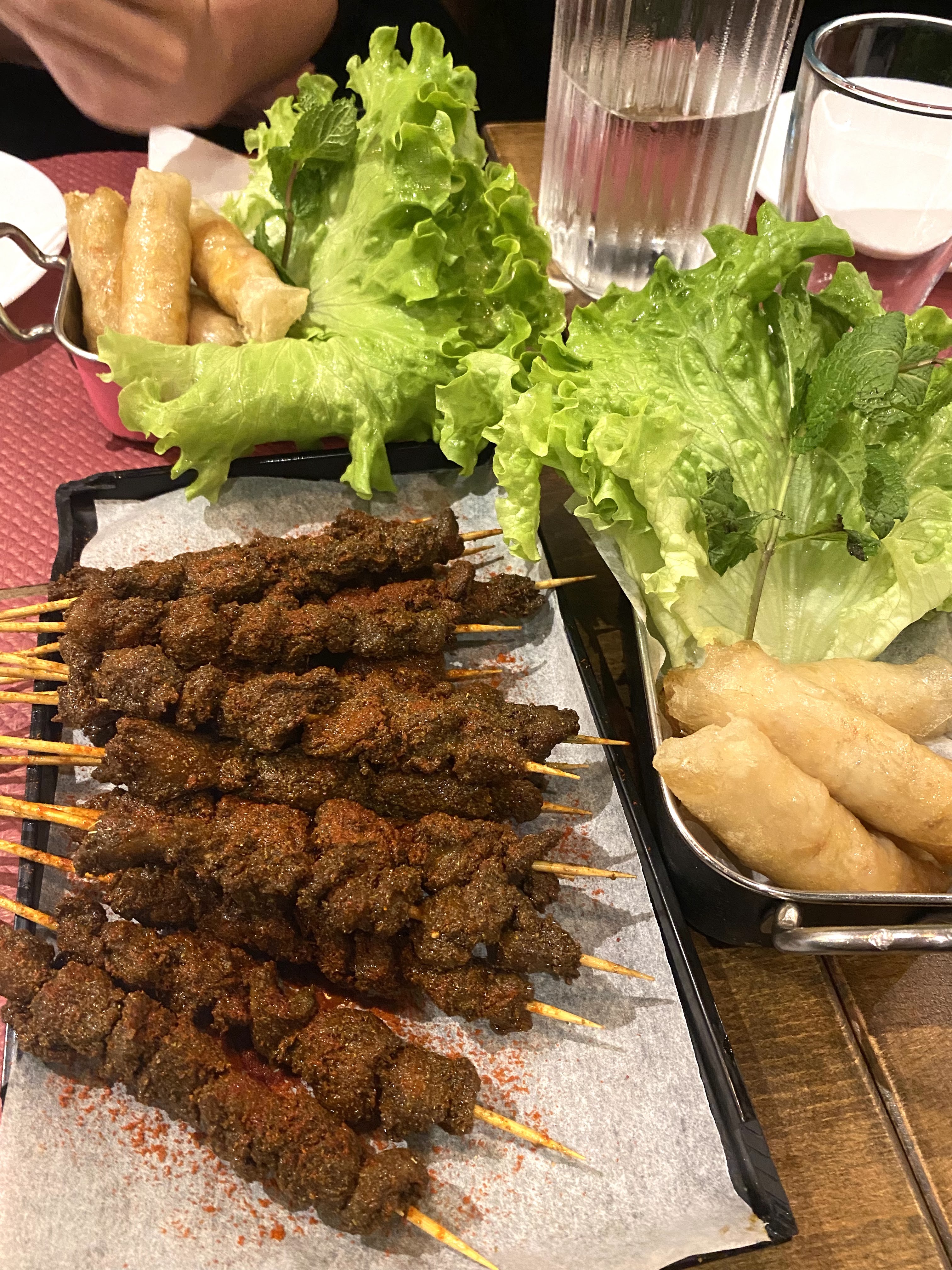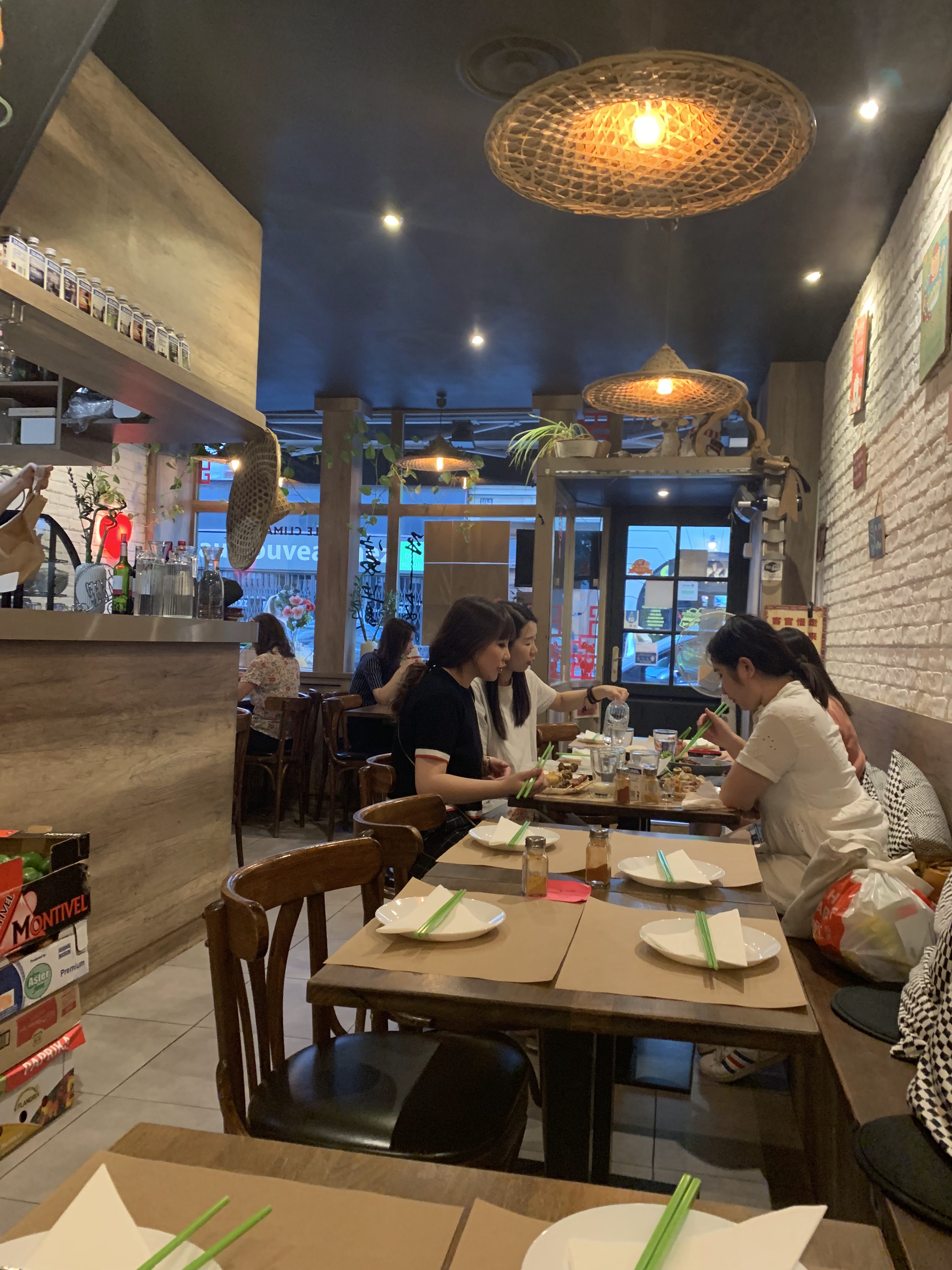 Une expérience particulière. On en entre dans le restaurant et le dépaysement est total. Je suis la seule personne qui parle français. Nous avons commandé des brochettes du vin des nems. Nous nous sommes régalés. Service efficace malgré le monde. A 2 nous avons payé 23e Je retire une étoile pour le bruit à l'intérieur, mais c'est une expérience à vivre.