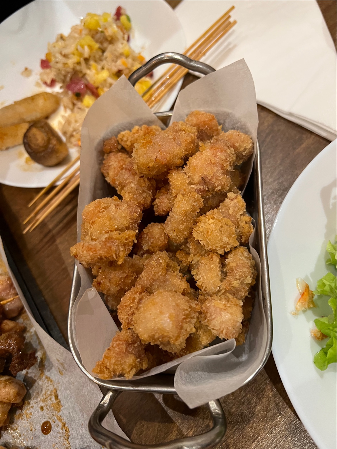 Commandé en livraison, j'ai choisi des crevettes sautées au sel et poivre accompagné de son riz sauté à l'ananas. C'était plutôt réussi.