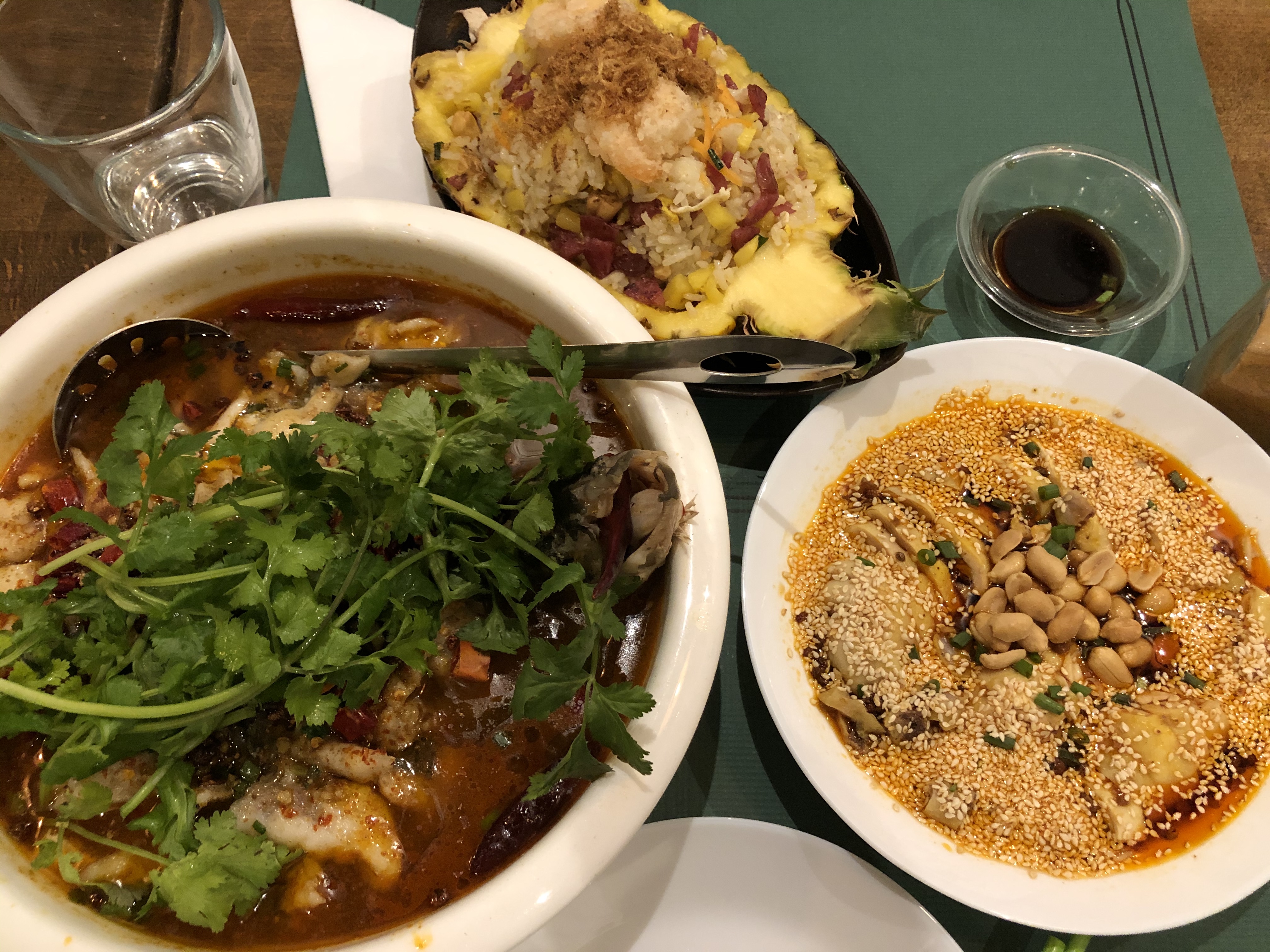 C'était délicieux, j'ai pris des brochettes d'agneau, mapo tofu avec porc et porc frites avec la sauce aigre doux avec ananas. Tout est bon, c'était parfait !