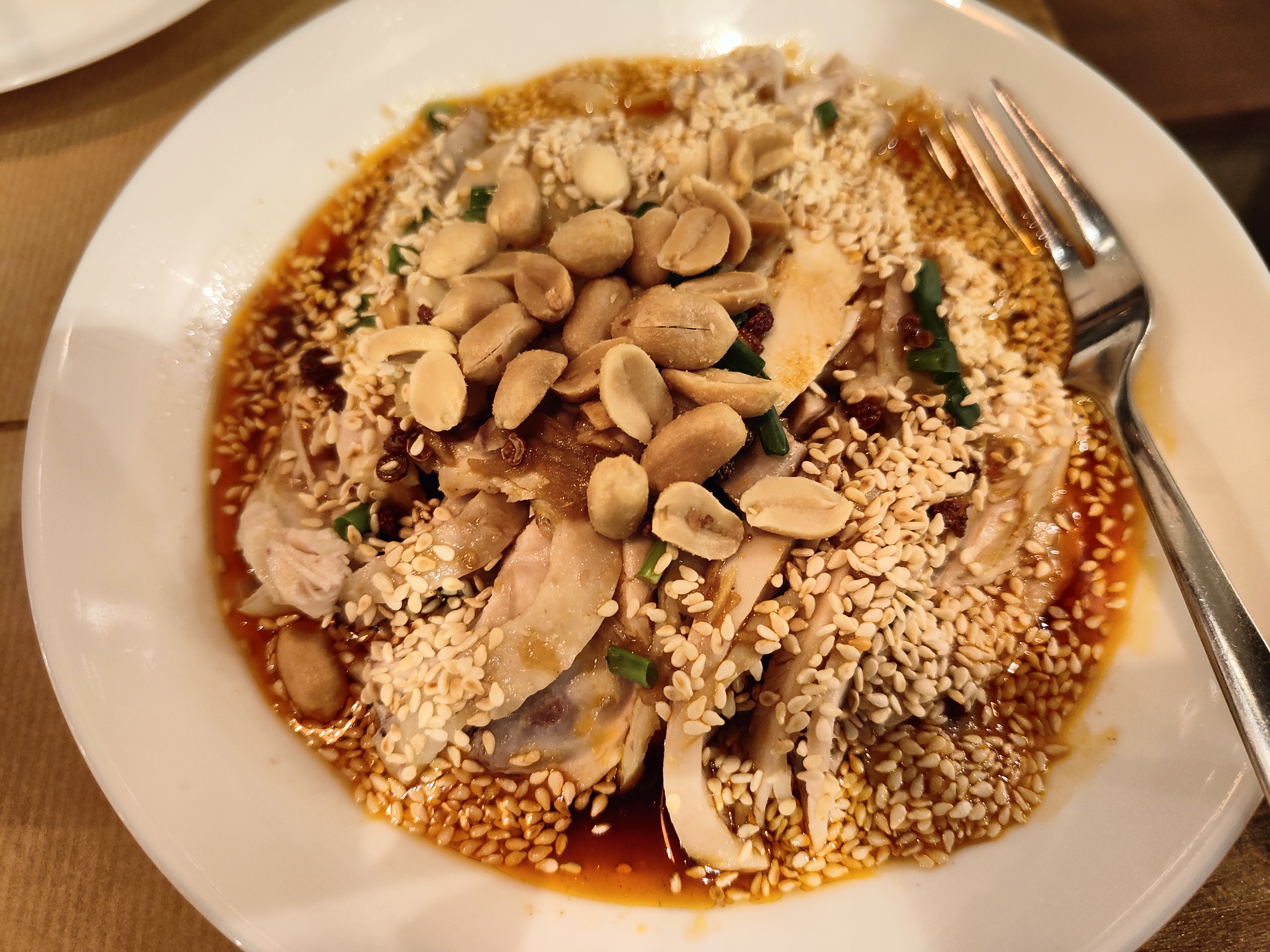 Bon resto : ma po tofu, aubergines sautées etc Mention spéciale aux brochettes de toutes sortes (un peu trop cuites a mon goût) et au poulet croustillant