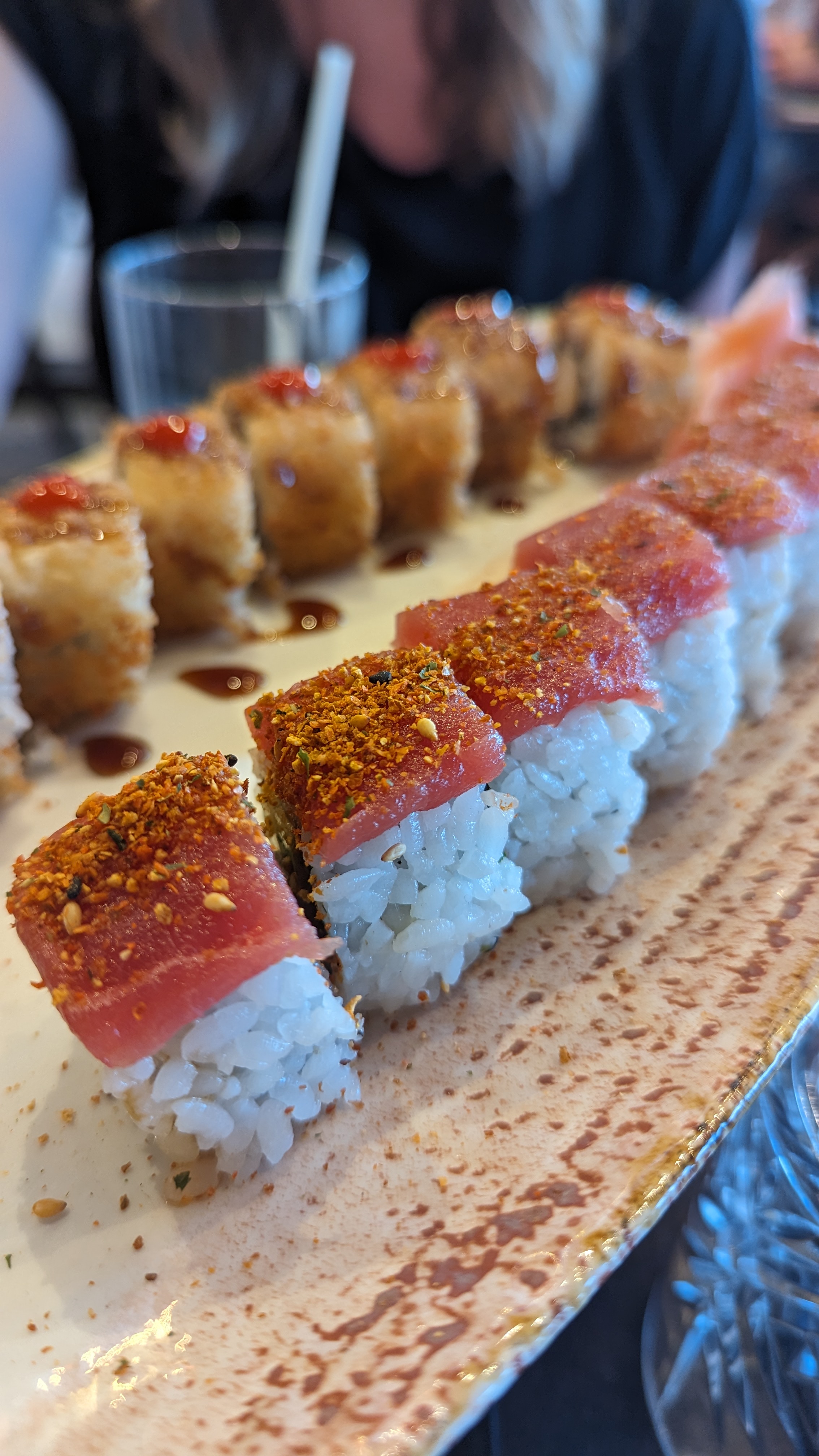 J'ai passé un très bon moment. J'ai prit des maki inari roll, tellement bon que j'en ai recommandé. Très bonne ambiance, pas trop bruyant et les serveur.ses sont très sympathiques ! Très joli déco et petit point bonus pour les chaises que j'ai trouvé très confortables, je reviendrais ✌️