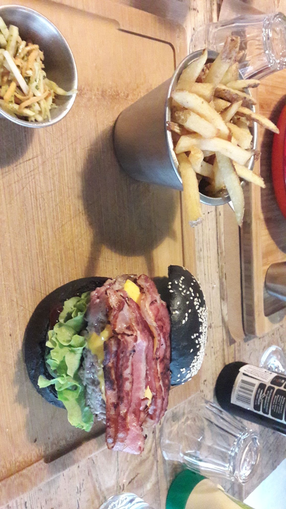 1 étoile pour le saumon... Le reste!!...coleslaw loin d'être du jour...sauce vinaigre.. Hamburger bien triste....pain hamburger sec....