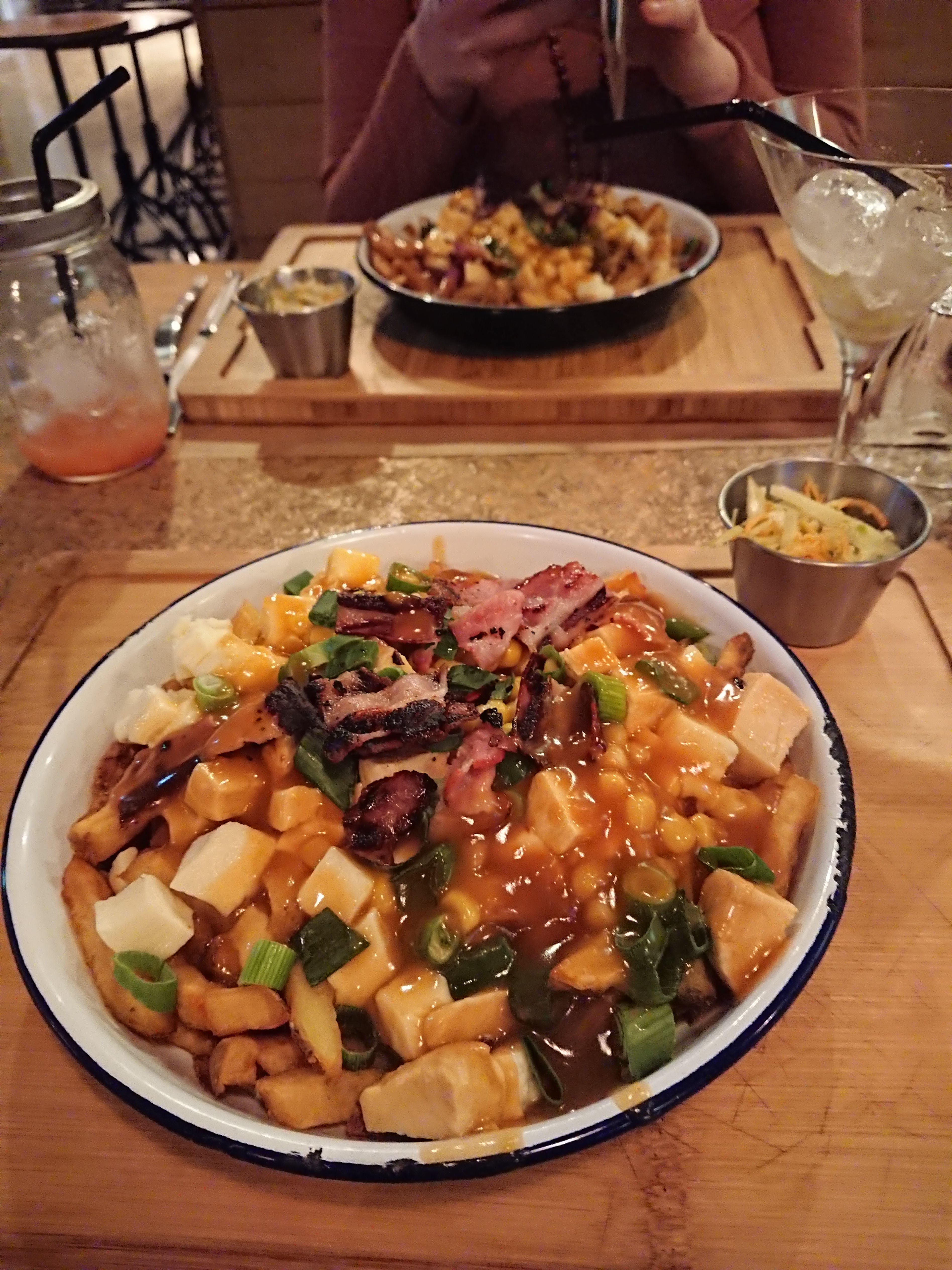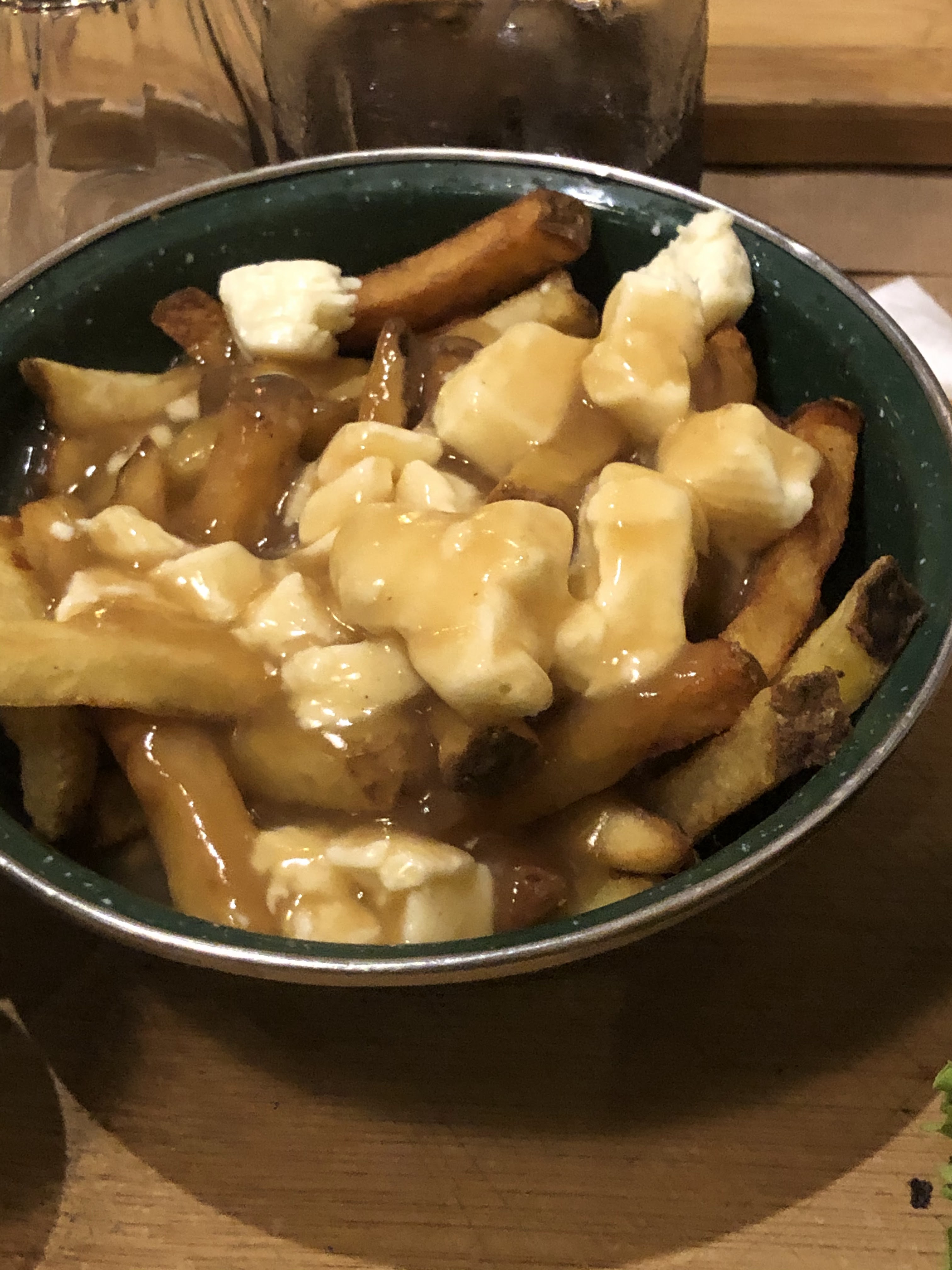 Poutine délicieuse ,du mal à finir l'assiette mais c'est délicieux, cocktail parfait