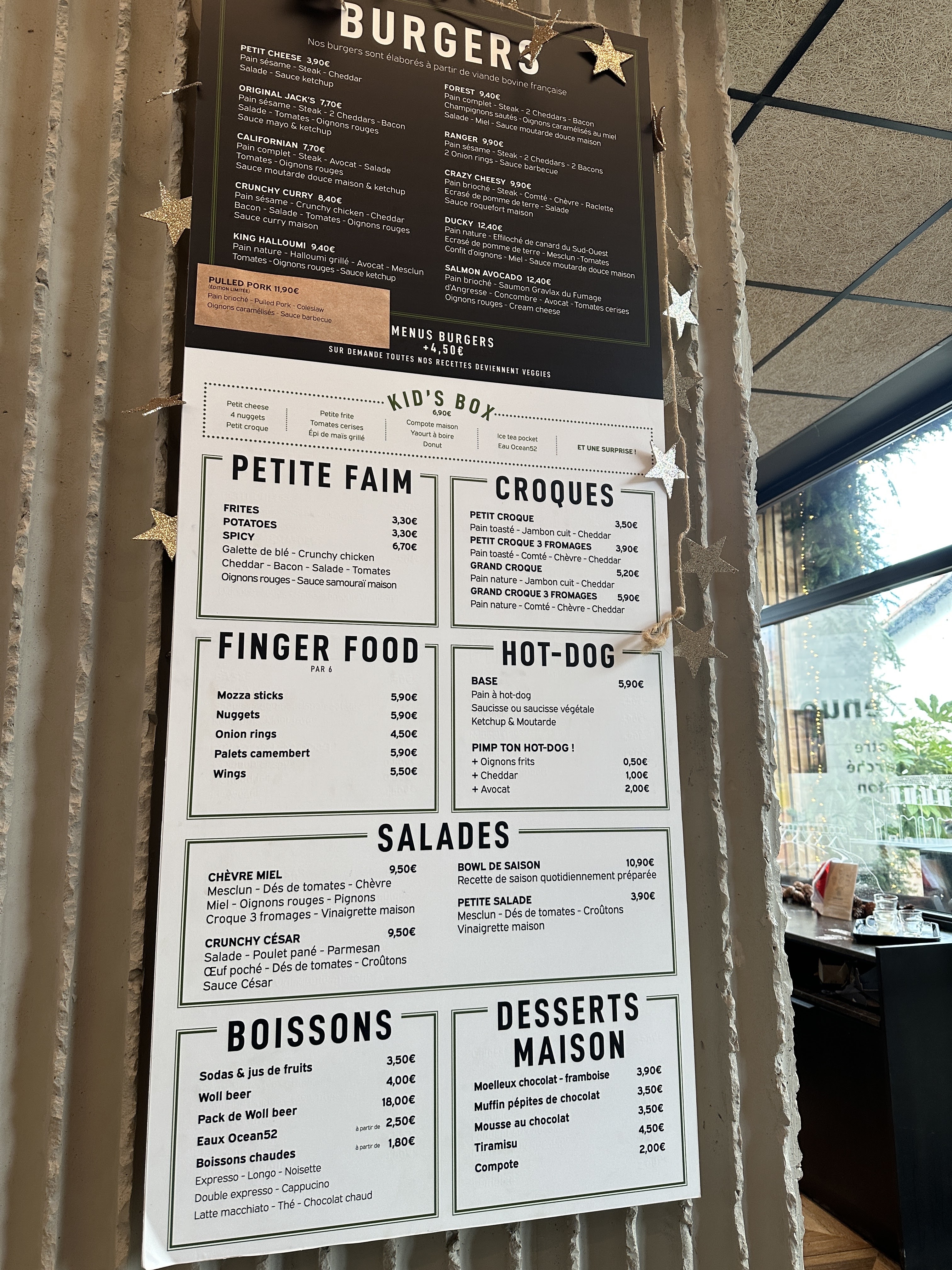 Bon accueil, Bon burger (avec de vrai steack), pour un budget raisonnable (11€ le menu). Sur un ton biologique (peu de plastique dans les emballages).