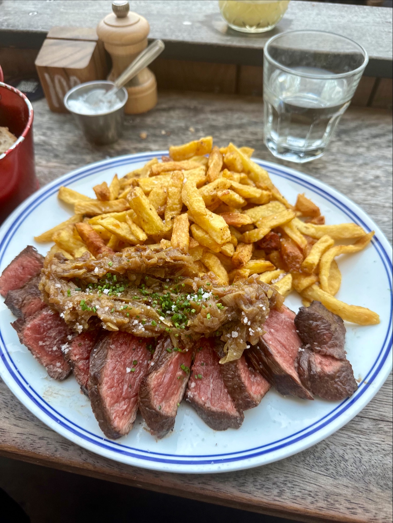 Les serveurs es sont très pro et sympa mais coll svp nous sommes en vacances c est un peu trop expédié. Par contre les frites de midi réchauffées c est pas bon,c est tellement simple de faire de bonnes frites bien croustillantes !!!