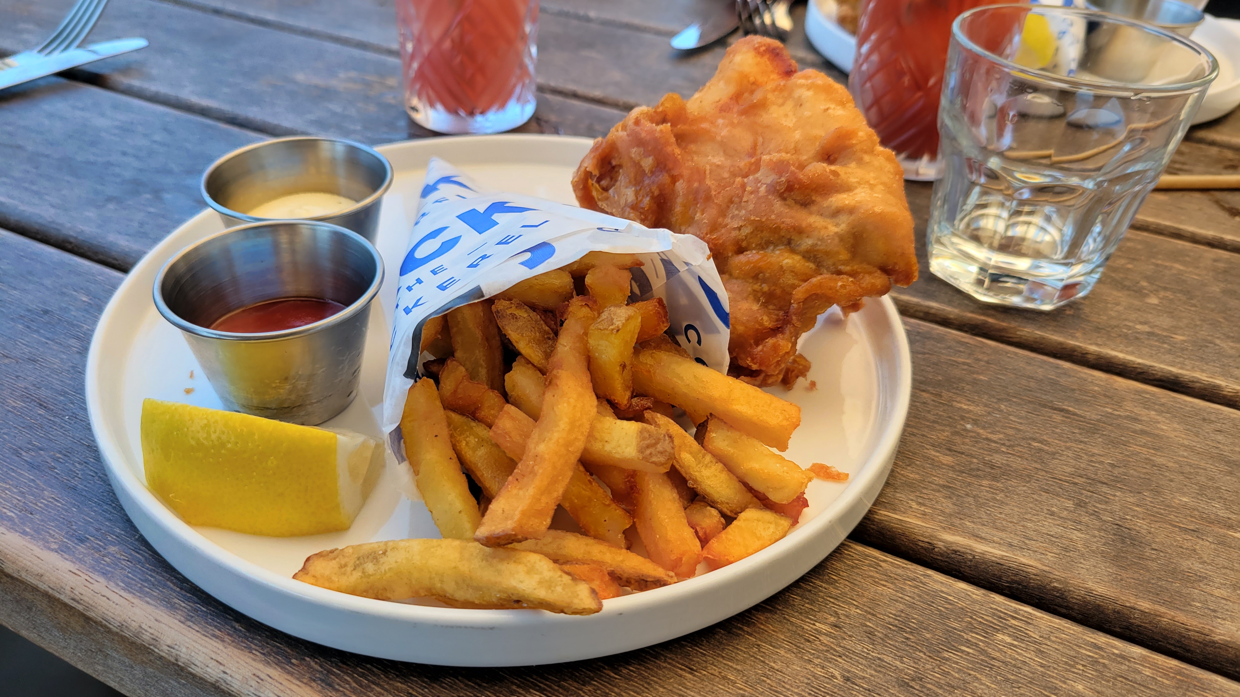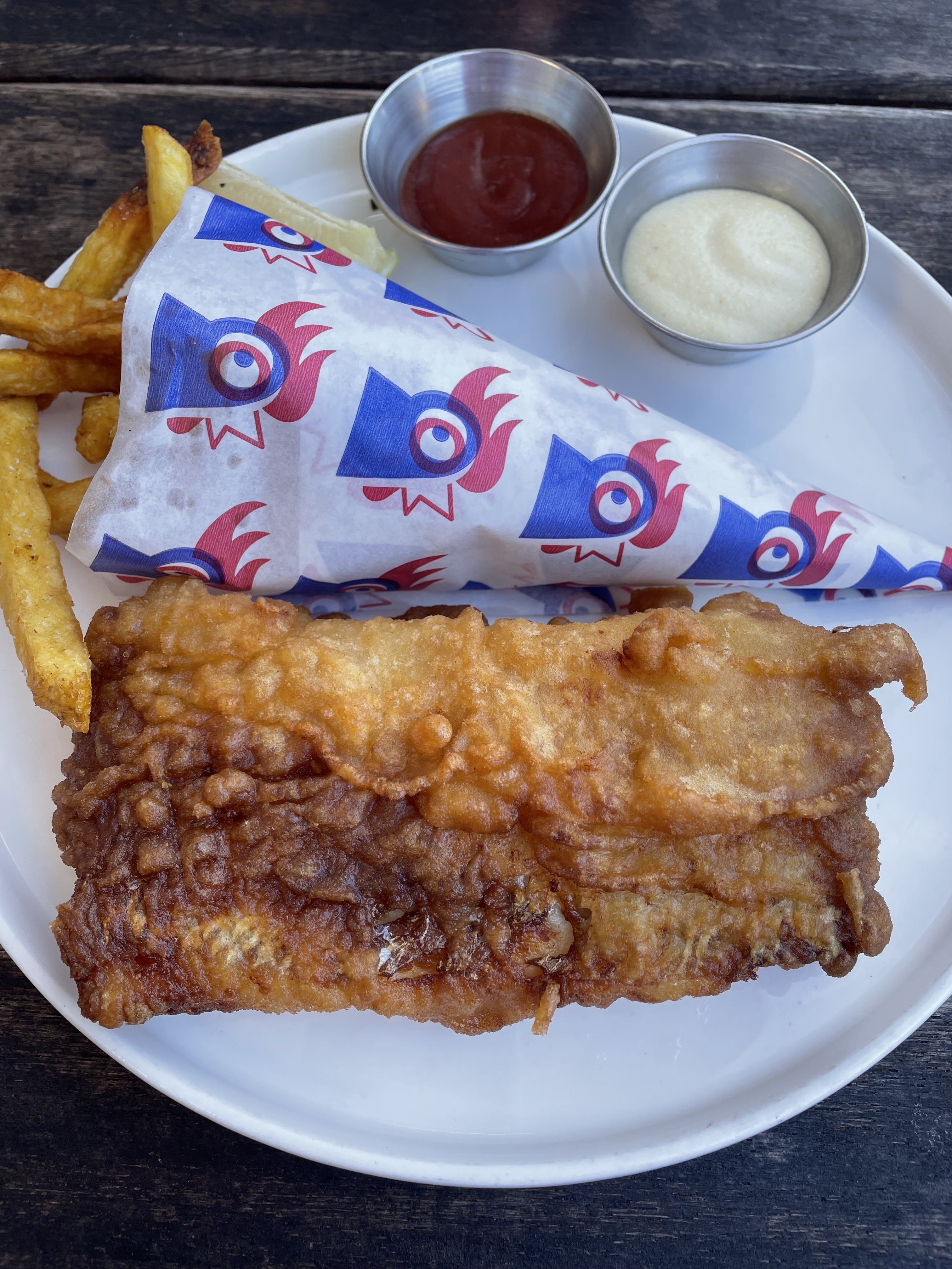 Exceptionnel. Pour avoir habité à Londres le fish and chips était bien meilleur ici. Le meilleur que j’ai mangé so far. Suggestion : Une sauce petit poids menthe et on était sur une médaille d’or aux championnat du monde de street food. Service impeccable, efficace et souriant. Je recommande et reviendrai.