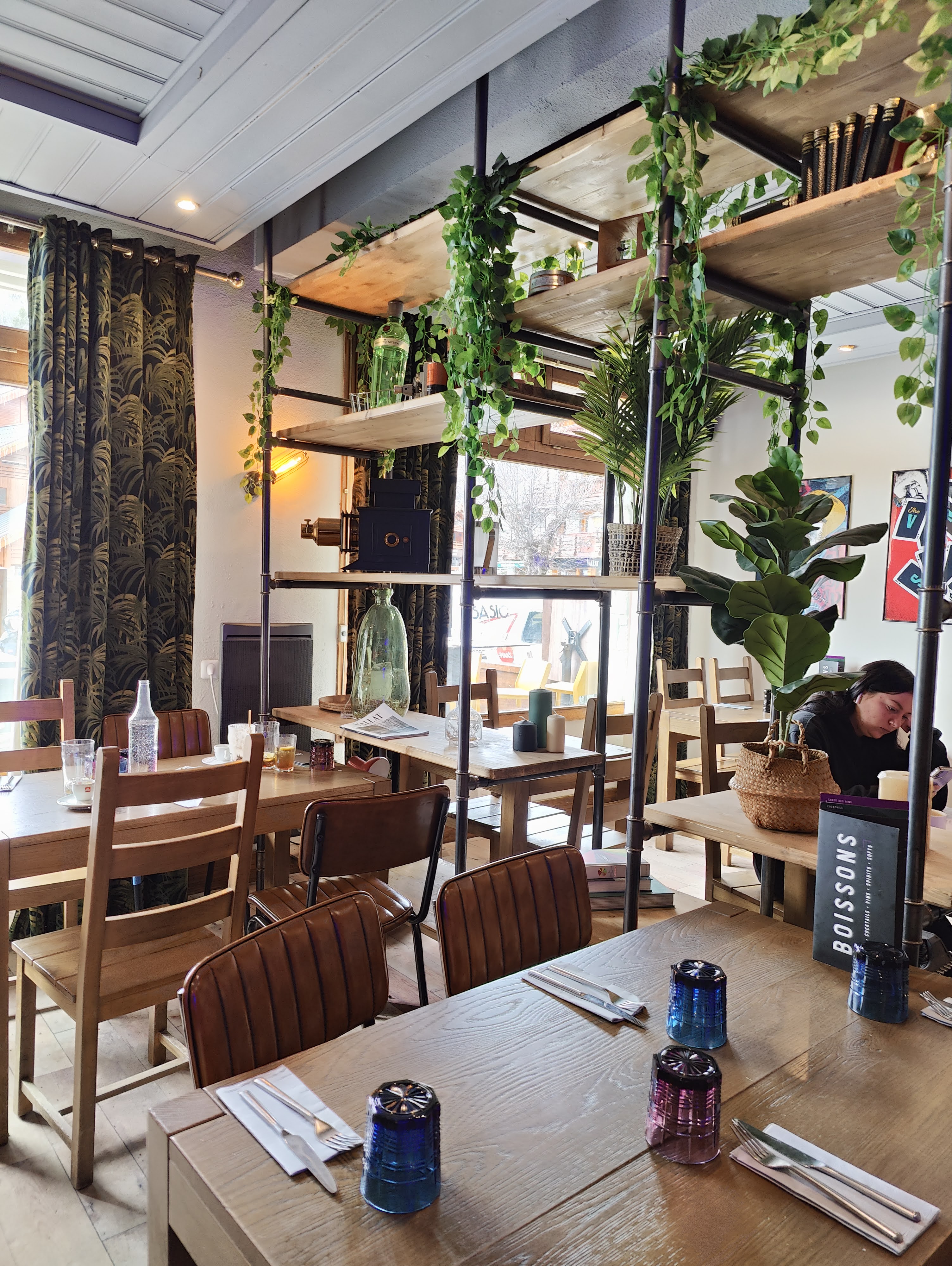 Déjeuner en terrasse, bière IPA super, vin blanc très frais, burger VG délicieux, et moelleux aux dattes parfumé ! Je recommande 👍👍👍 Hâte de venir un mardi pour tester le service 100% VG 🌟
