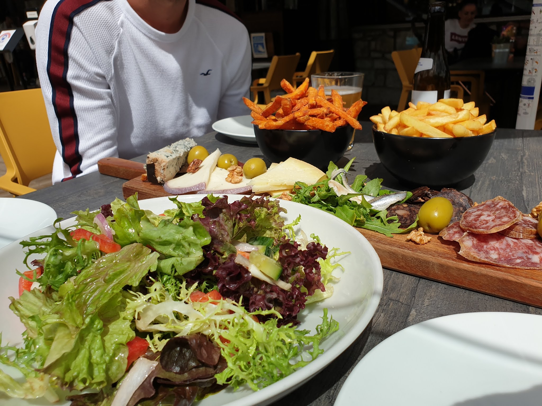 Il est vrai, nous sommes arrivés tard donc le restaurant était fermé. Alors on nous a proposé une assiette de charcuterie et de fromage à tomber. Des frites normales et des frites patates douces accompagné d'une salade. Seul point à revoir, même excellents, dommage d'avoir du chorizo et du saucisson espagnol dans cette région si riche en produits du terroirs. Bien situé, face aux montagnes en terrasse. L'accueil agréable et le service assez rapide.