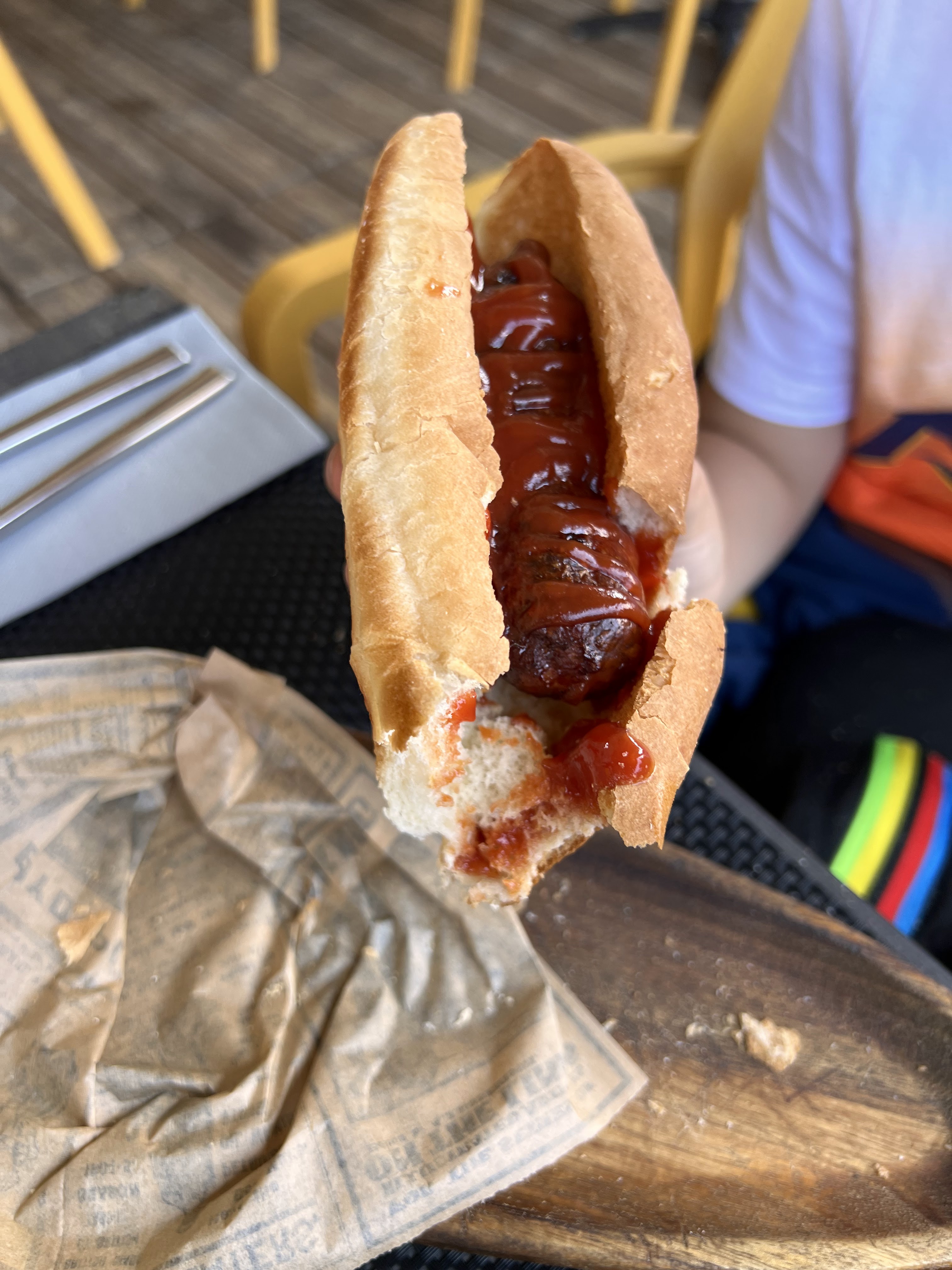 Nous avons mangé des burgers, c'était délicieux. On pourrait aussi regarder les gens skier ⛷️