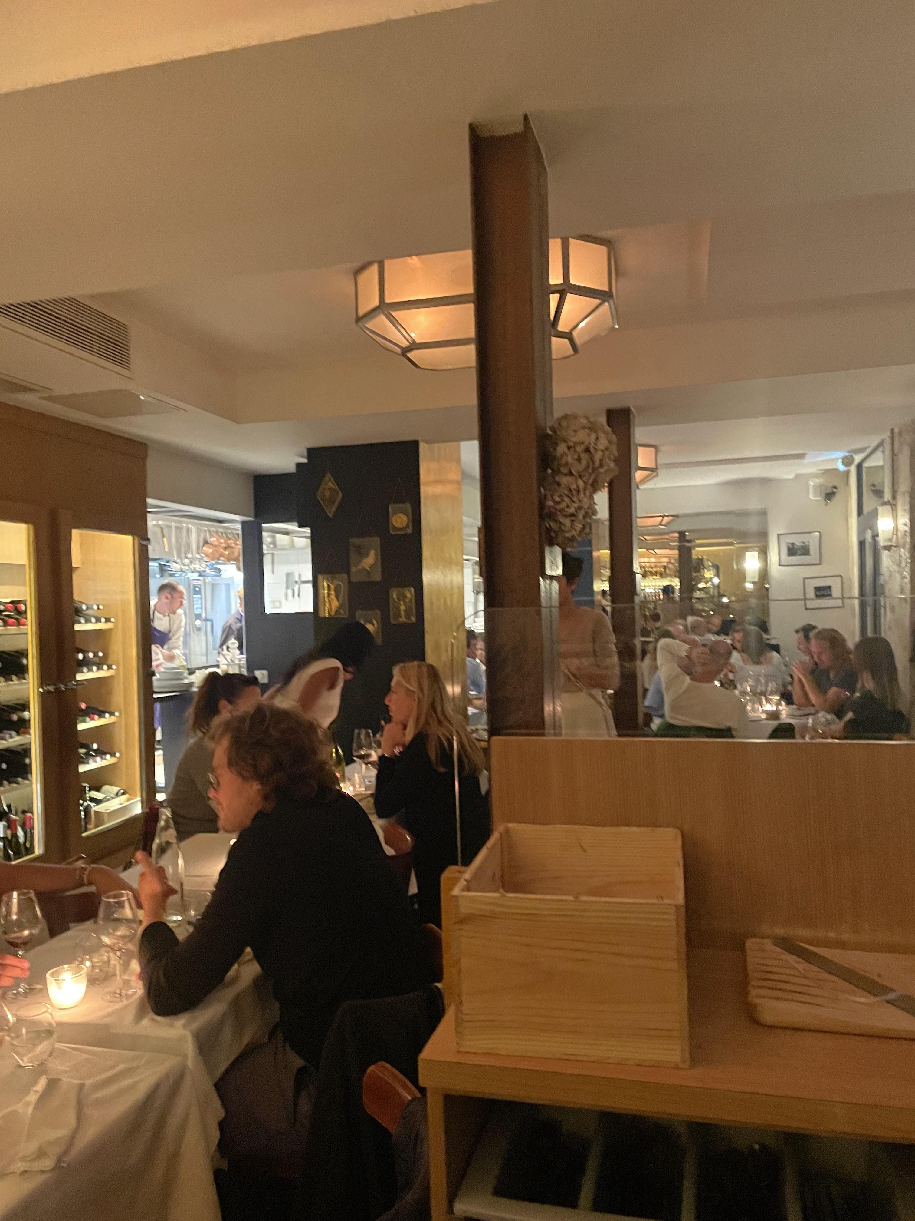Restaurant très en vogue que je voulais tester. Grosse déception, c’est ultra bruyant, impossible de discuter. Les plats et la carte des vins, très chers. Effectivement c’est bon (heureusement) mais de la cuisine de bistrot avec des entrées à 20€ et des plats à 45€… Les vins entrée de gamme à 130€ la bouteille. Les tables sont collées les unes aux autres. Rien d’exceptionnel dans ce restaurant. Je note juste un service super. Bravo à tout le personnel. Je connais beaucoup d’autres restaurants avec une ambiance très sympa, où on peut discuter sans problème et se régaler pour une note bien moins élevée.