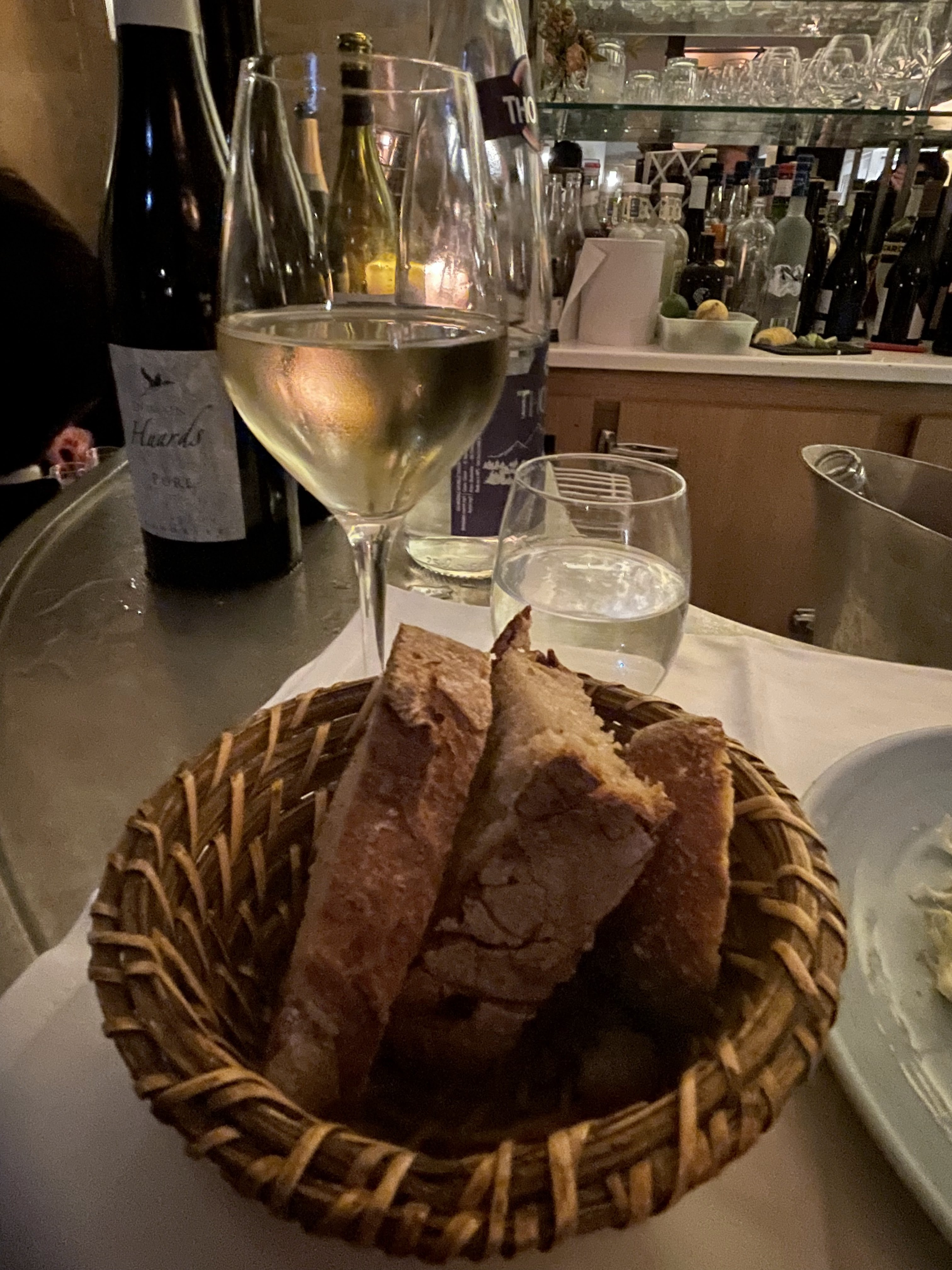 Excellentes propositions du jour, gnocchis à la feta puis filet de dorade cuisson irréprochable et jeunes choux de Bruxelles dans un beurre blanc citronné d’anthologie ! Le tout avec un verre de Vezelay et du pain à se damner de Thierry Breton… Dommage que certains clients saturent l’espace sonore dans ce charmant bistrot au sol carrelé et aux tables dressées de blanc… On reviendra !