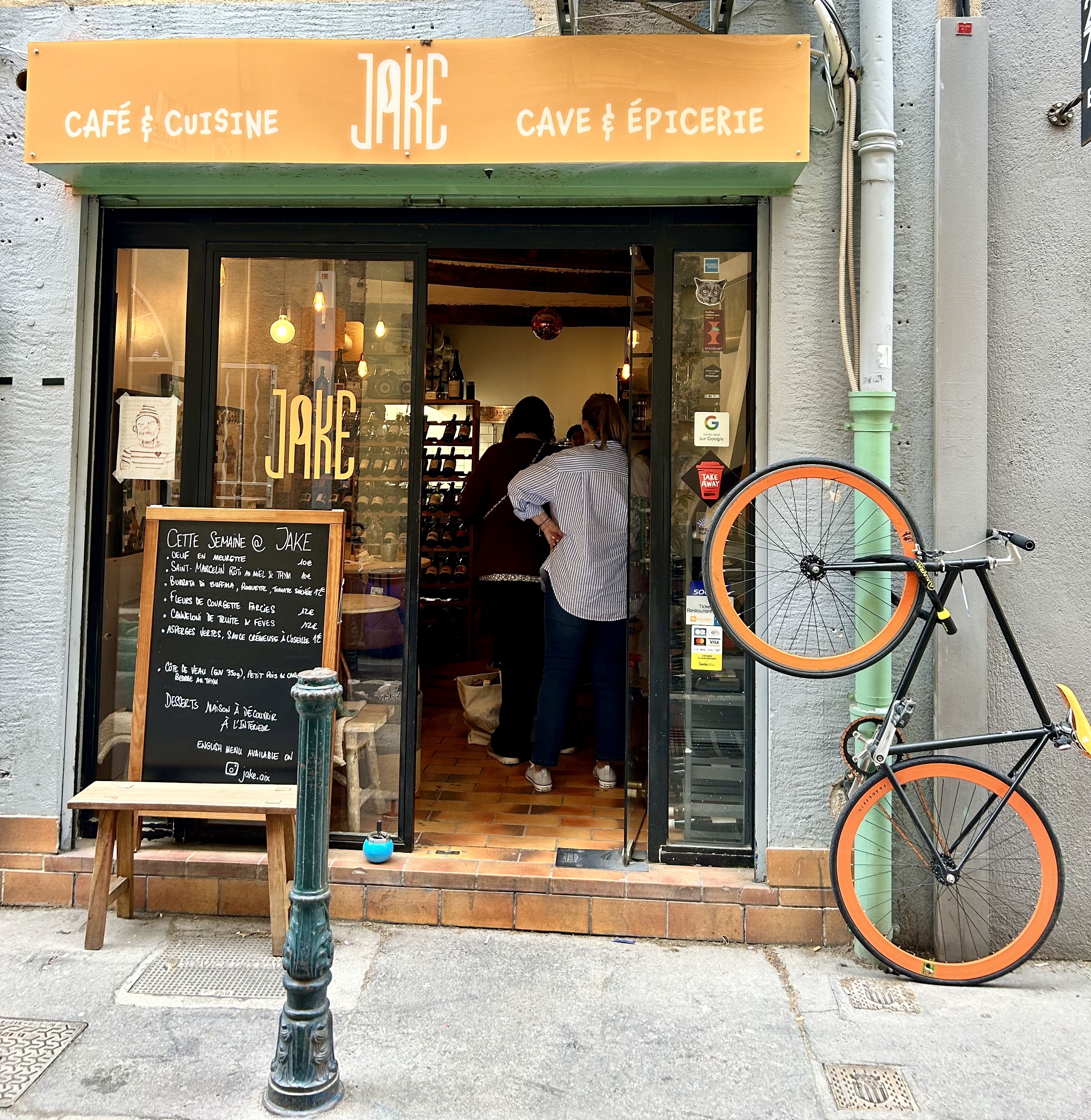 Tout ici est de haute qualité à un prix tellement juste ! Du choix des produits frais à la confection très appliqué et créative des plats où les parfums et textures sont recherchés pour une expérience gourmande à souhait. Côté boisson, une myriade de déclinaison autour du café finement sélectionné, des jus à l'extraction et une gamme de boissons gazeuses au kombucha d'exception. Bières artisanales et vins natures sont à l'honneur et Jennifer Audinet, humaine au grand coeur à la création de Jake, saura vous partager leurs secrets et son intense passion pour le vin. La sélection en épicerie fine à la vente aussi est à l'image du lieu, chaleureuse et exigeante. Chance pour toi Aix-en-Provence de profiter de cette best place !