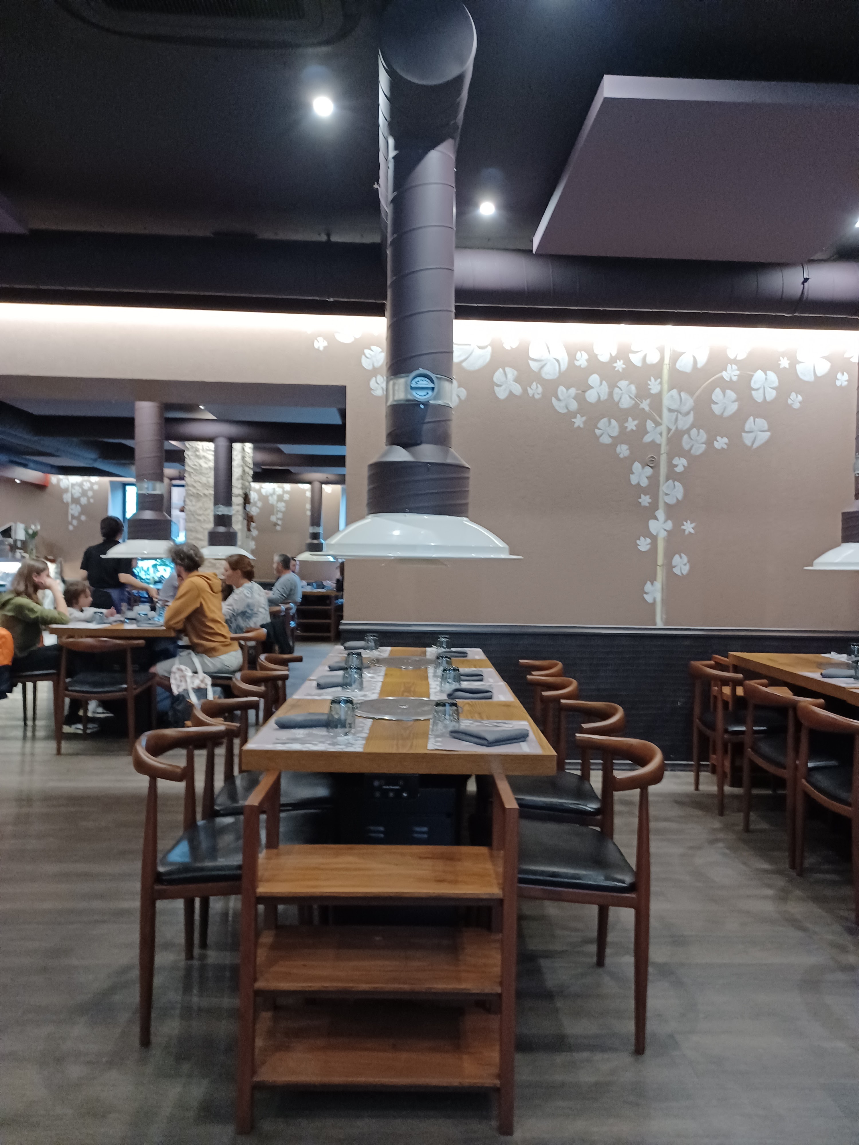 Joli déco, gros bémol pour les aspirateurs de fumée au-dessus de chaque table qui donnent un sentiment d'écrasement une fois installé à table et qui de plus occulte la lumière. Les desserts, chers, sont inintéressants, les bibimbaps très moyens. Bof...