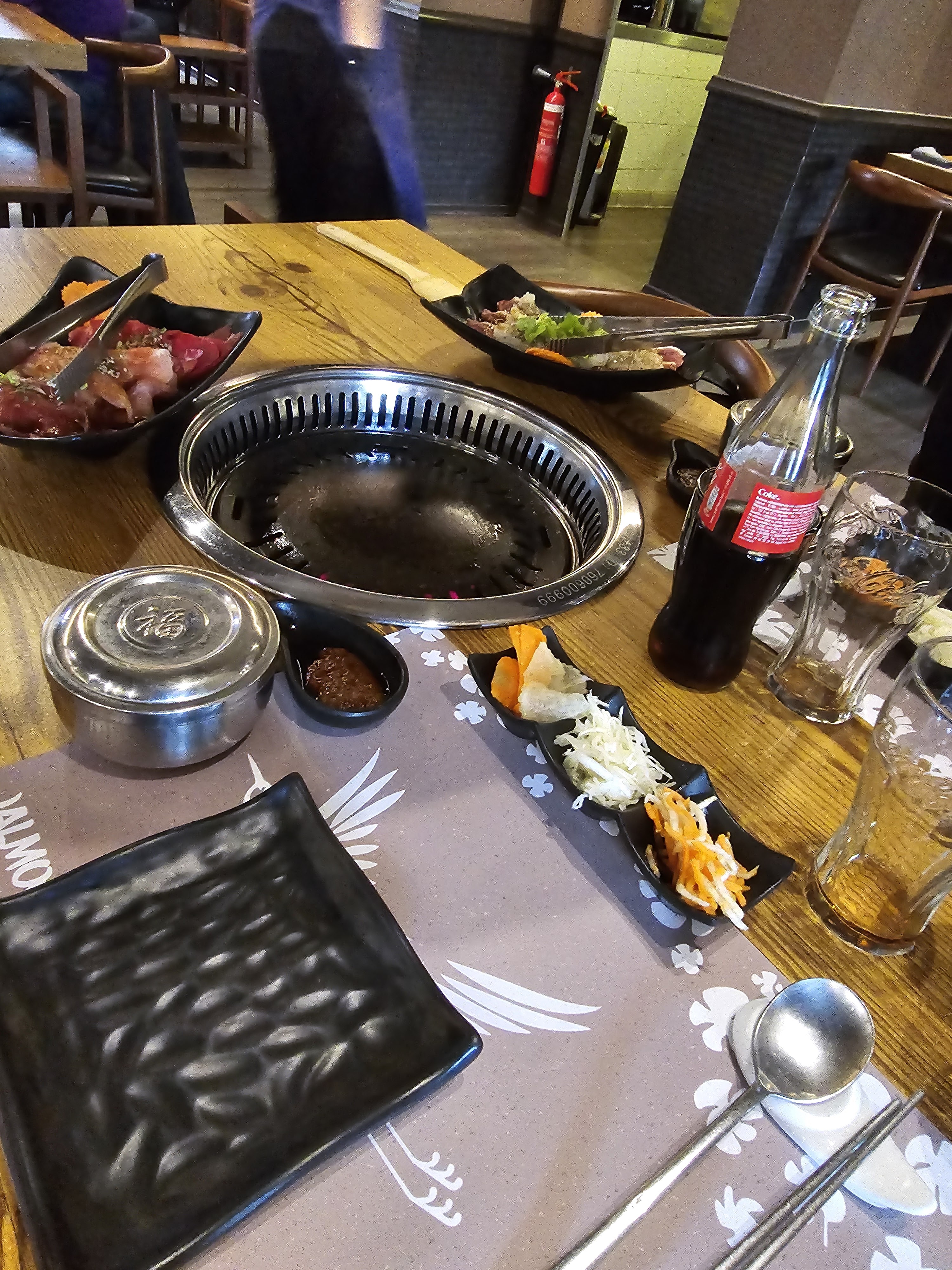 Projection quasi immédiate en Corée du Sud, avec un accueil particulièrement souriant ! L’atmosphère est simple et chaleureuse. Le barbecue est tout bonnement délicieux et à la hauteur de l’attente liée au souvenir du pays ! Idéal pour un moment détendu sans prétention en famille ou entre amis. Le plus : la prise de commande via tablette qui induit un service ultra rapide. Le moins : l’odeur qui s’imprègne sur les vêtements (et pourtant l’aspiration ne fait pas semblant).