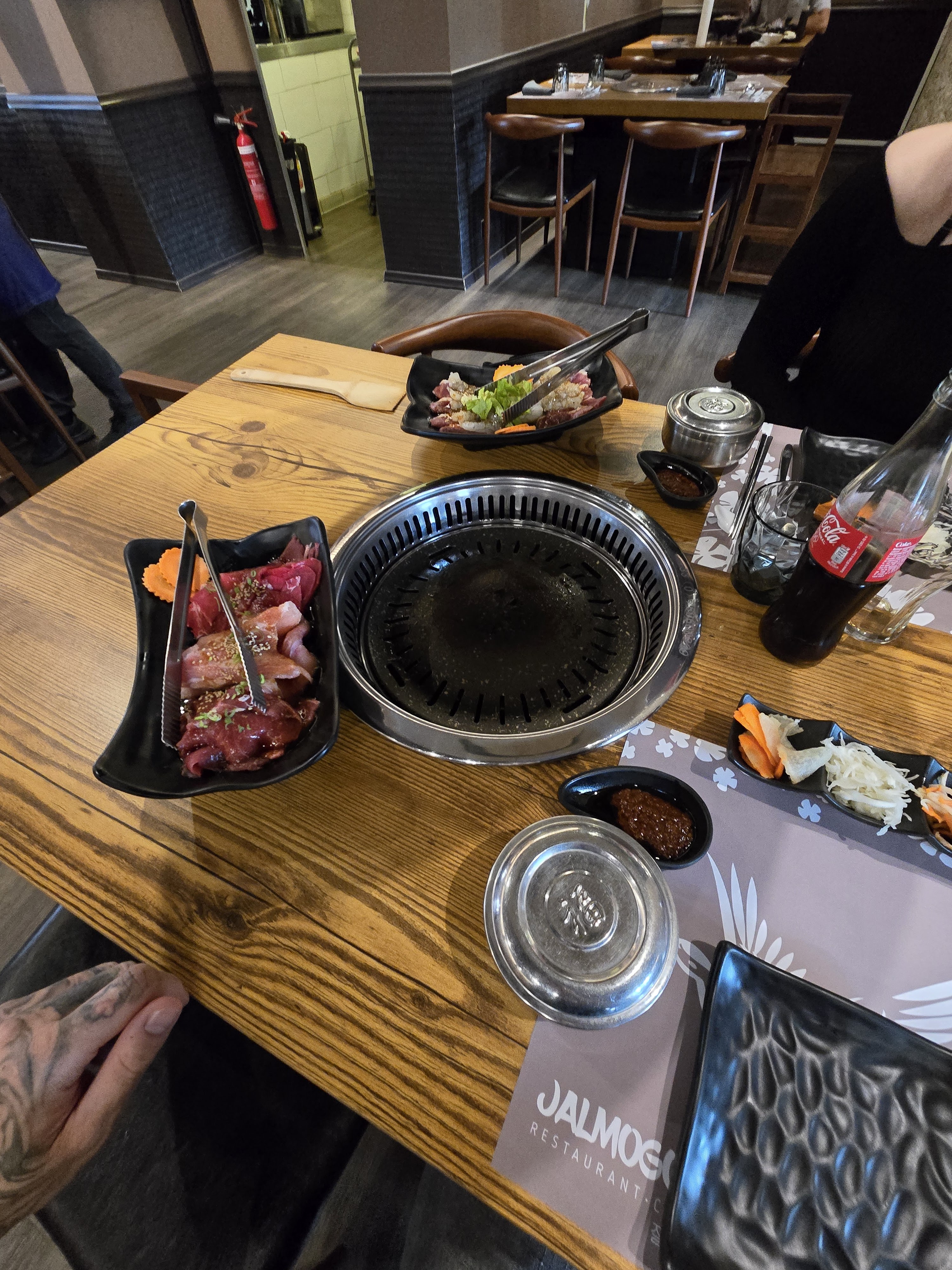 Cela fait maintenant plusieurs fois que je me rends au Jalmogoyo et je dois dire que je suis à chaque fois de plus en plus déçu. La première fois était la meilleure expérience parce que l'originalité du concept et du lieu à Mulhouse masque en réalité le service qui n'est pas à la hauteur des attentes. Serveuses froides, pas souriantes, et le barbecue était défectueux lors de ma dernière visite. Aucun geste n'a été proposé alors que cela semblait être du bon sens. Le prix est également trop élevé mais pourrait être justifié avec un service plus qualitatif. J'y suis allé 3 fois mais je ne pense pas y retourner.