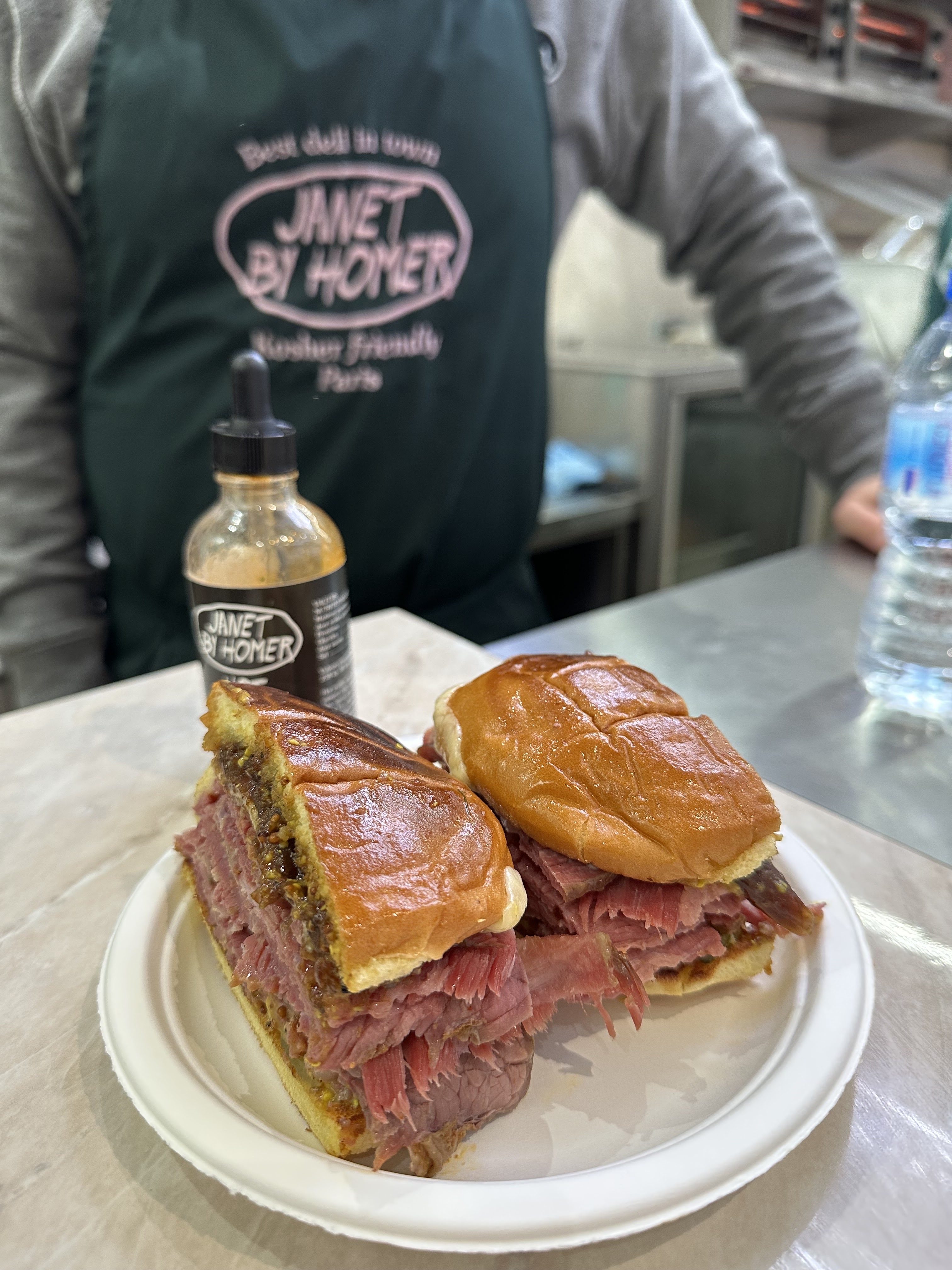 En effet, la MEILLEURE épicerie fine de la ville ! J'ai pris le JANET avec du fromage et c'est tout simplement INCROYABLE. Le pastrami est si tendre et juteux, fraîchement sorti du four et le pain est également excellent. Ils vendent aussi leur propre moutarde, ce qui est un délice. Noam, le propriétaire, est super gentil, serviable et nous a même recommandé de visiter l'autre chaîne qui sert des rouleaux de homard.
