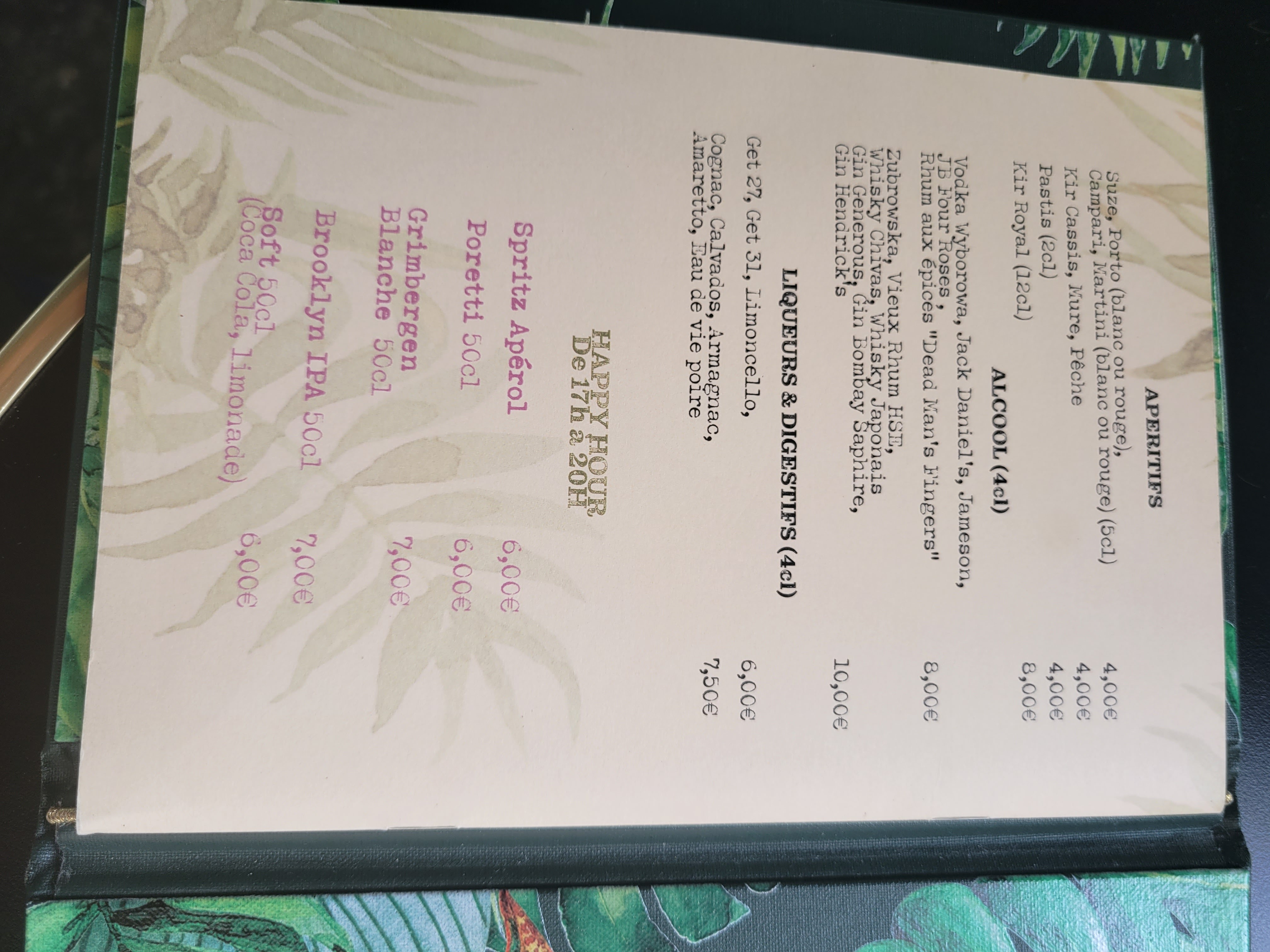 Un endroit très chaleureux, sous un plafond de plantes magnifiques. Nous sommes venues entre amies pour un brunch plus que copieux avec un super rapport qualité prix, la soupe nous a suffit ce soir! La petite serveuse Léa très sympathique et souriante, quel plaisir d'être aussi bien accueillies sur Paris !