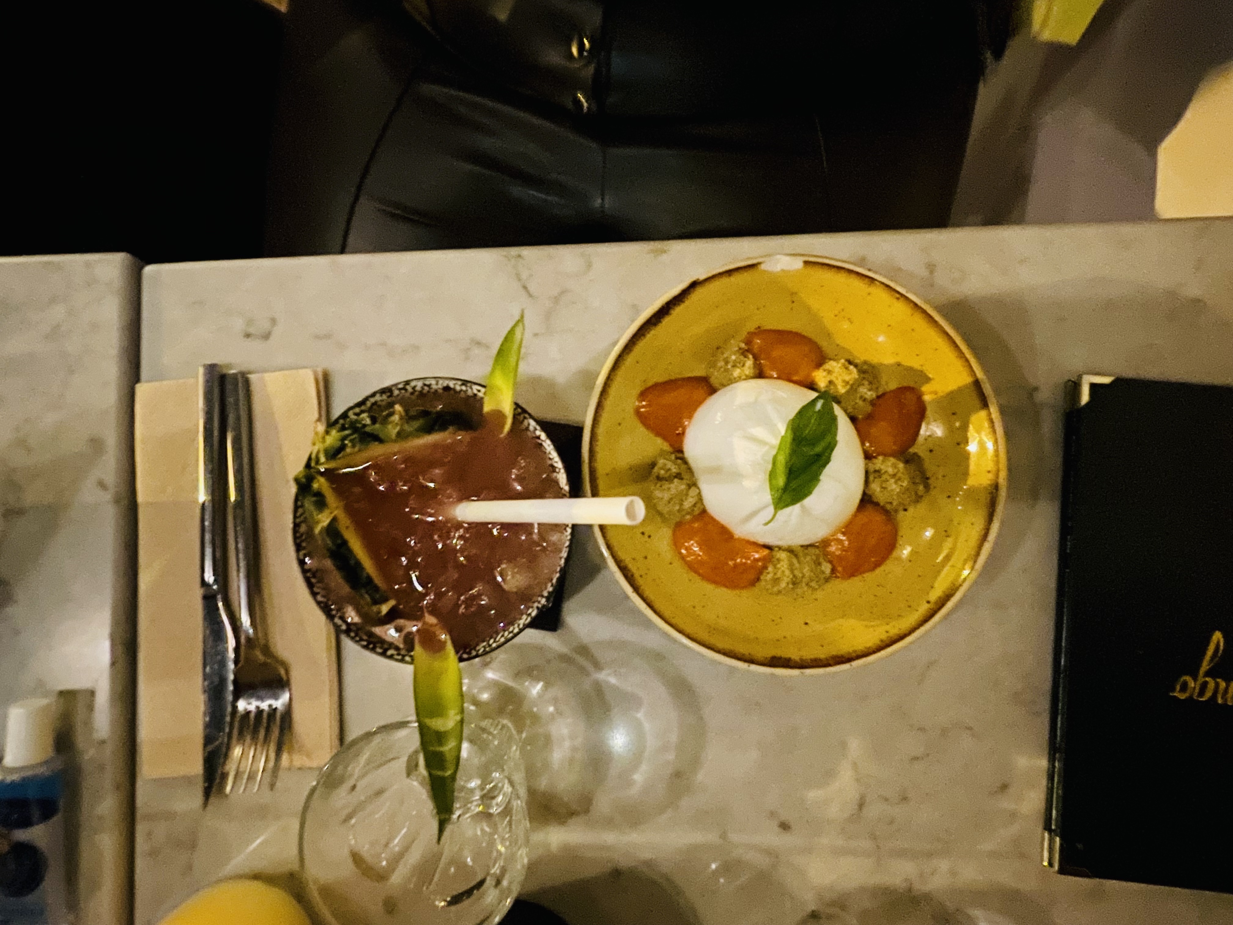 Lieu sympa , salade burrata très bonne et leur chardonnay pas mal du tout 🧡