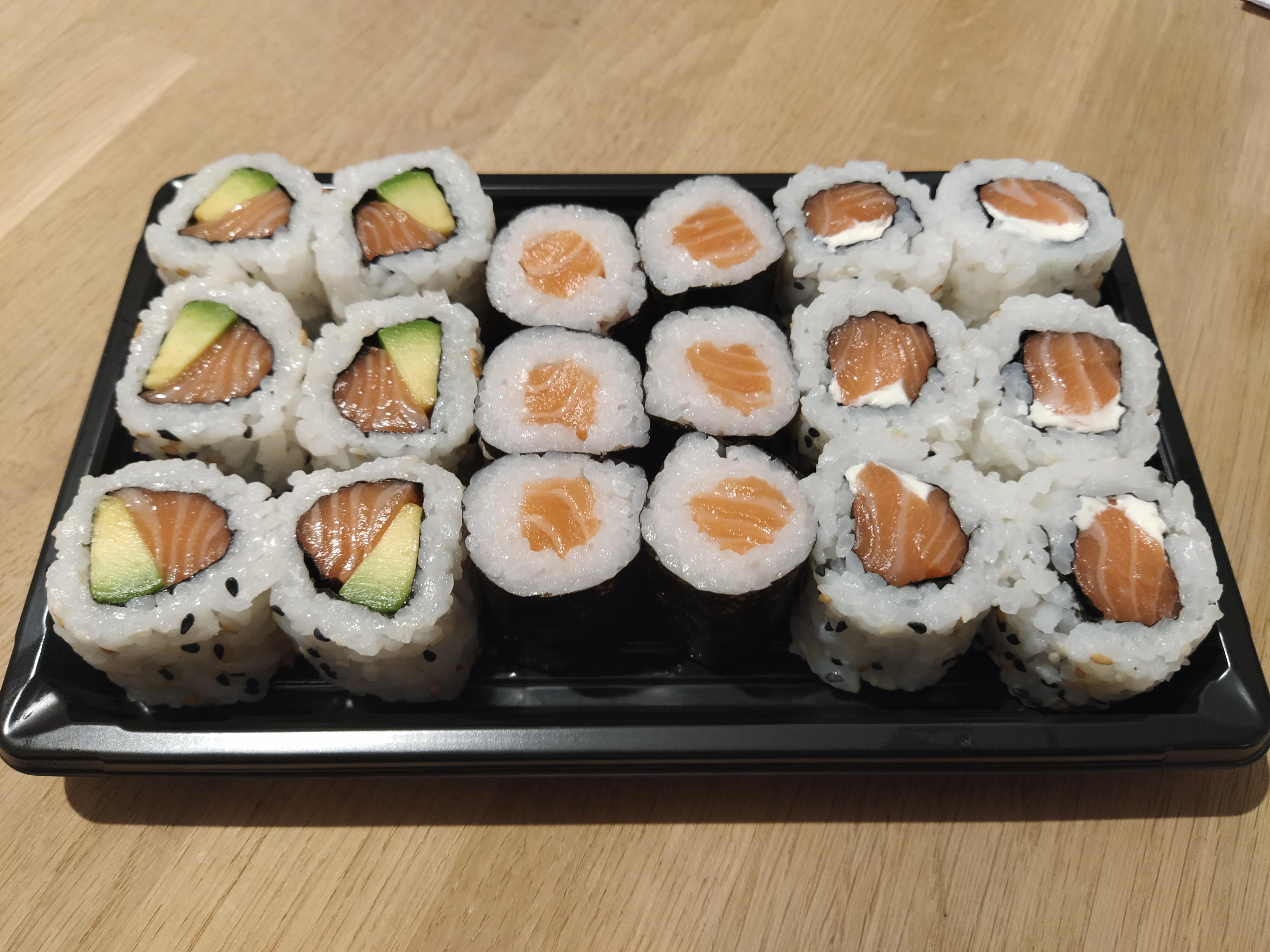 Les sushis avaient un super rapport qualité prix, par contre je me suis aperçu après qu’il fallait cliquer sur les sauces sur Deliveroo et je pensais que comme les plupart la sauce soja été inclus, heureusement il m’en restait un fond 😅