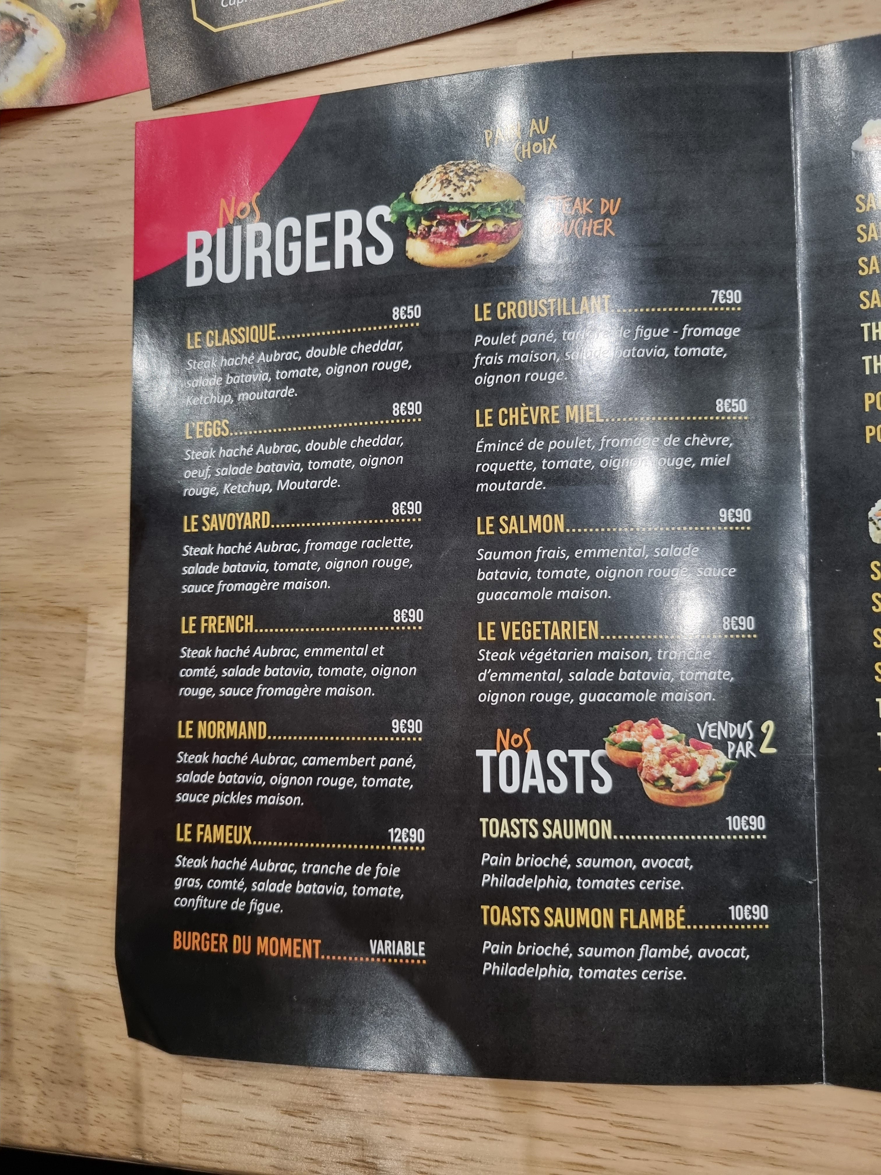 Les burgers et les sushis sont très bons. Produits frais. Excellent service l'équipe est accueillante. A très vite !