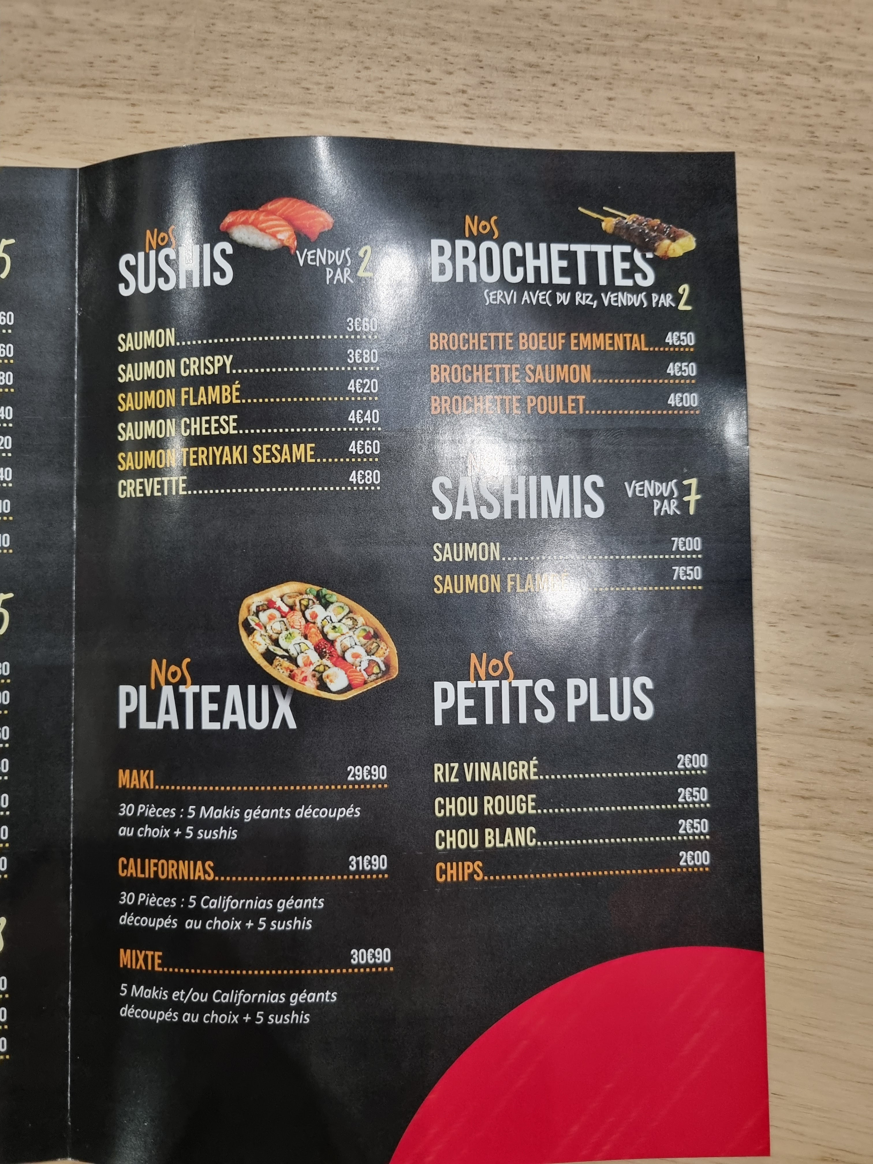 Ben alors je ne sais pas si c’est moi qui n’ai pas eu de chance vu les commentaires qui sont tous très positifs mais j’ai été très déçue de ma commande. J’avais déjà commandée à celui de Pignan et j’avais adorée et j’ai voulu tester celui-ci en livraison et ce n’était pas la même qualité. Le riz des sushis était mal cuit : il ne collait pas donc les sushis se désagrégeaient et en plus il était un peu craquant (pas assez cuit globalement je pense). Puis j’ai demandé du wasabi et des baguettes pour 3 et j’ai eu 2 sachets de wasabi. Pour une box de 30 sushis c’est un peu radin. Pourquoi ne pas en mettre autant que de sauce ? Ou permettre de le sélectionner sur la carte en supplément ? Bref mauvaise expérience sur les sushis, c’est dommage de proposer ça au menu si on ne maitrise pas la cuisson du riz… ça vient d’ouvrir donc je re testerai peut être en espérant que d’ici là ils se soient améliorés.