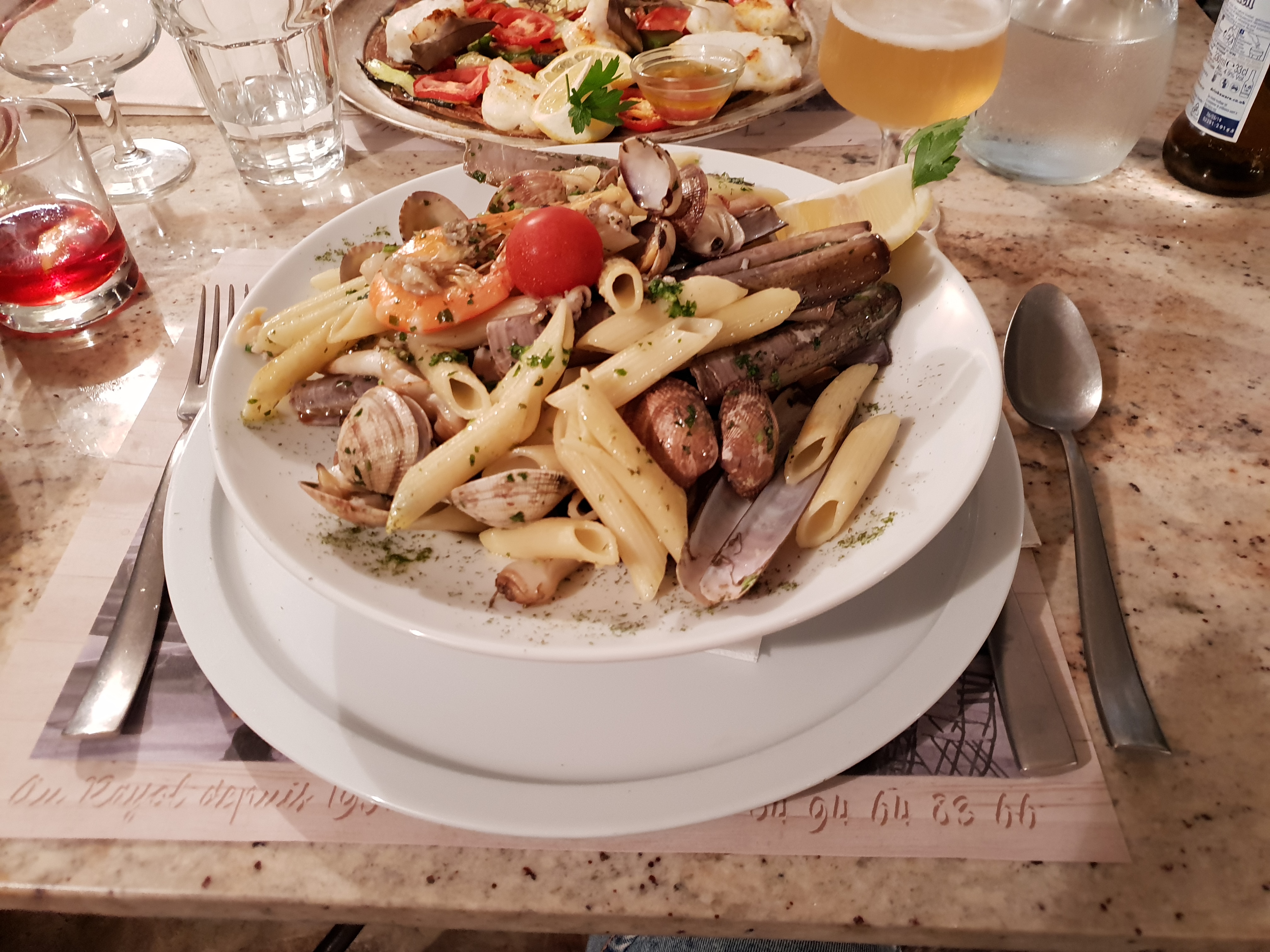 Linguines à l'encre de seiche délicieuses 😀 et accueil tout simplement merveilleux ❤️ Un grand merci à vous ☺️