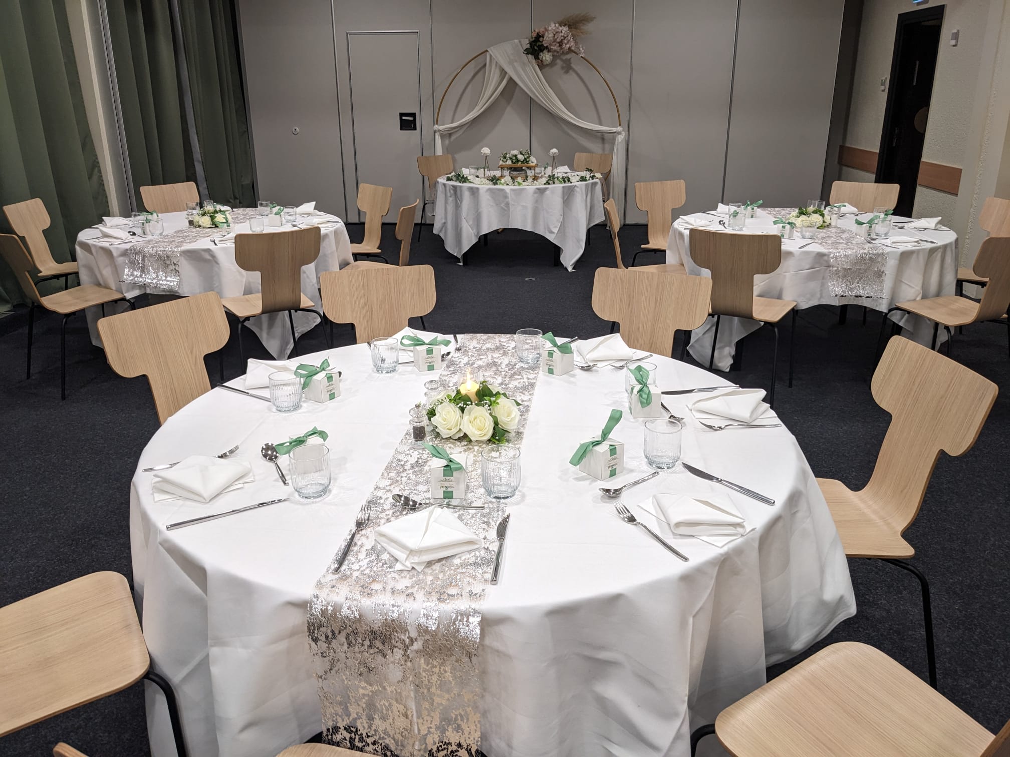 Nous avons choisi cet établissement pour notre repas de mariage. Et la prestation a largement dépassé nos espérances. Je tiens à remercier l'ensemble de l'équipe qui a contribué de près ou de loin à la préparation de cet évènement ( Corinne, Elodie, Yves, Valssou, Cedric, Severine et ceux qui ont travaillé dans l'ombre). Le buffet était aussi beau que délicieux tout comme l'entrée, le plat et le dessert. Des produits frais très bien cuisinés et assaisonnés. Les tables ont été soigneusement dressées et disposées selon notre demande. Le service était parfait, nous avons tous été servi en même temps, la prestation était parfaite et nous avons mangé chaud. Le menu enfant ( nuggets maison, frite, boissons dessert maison) a comblé nos petits convives qui étaient ravis de trouver des livrets d'activités individuels avec des crayons et des tatouages. Je recommande vivement.