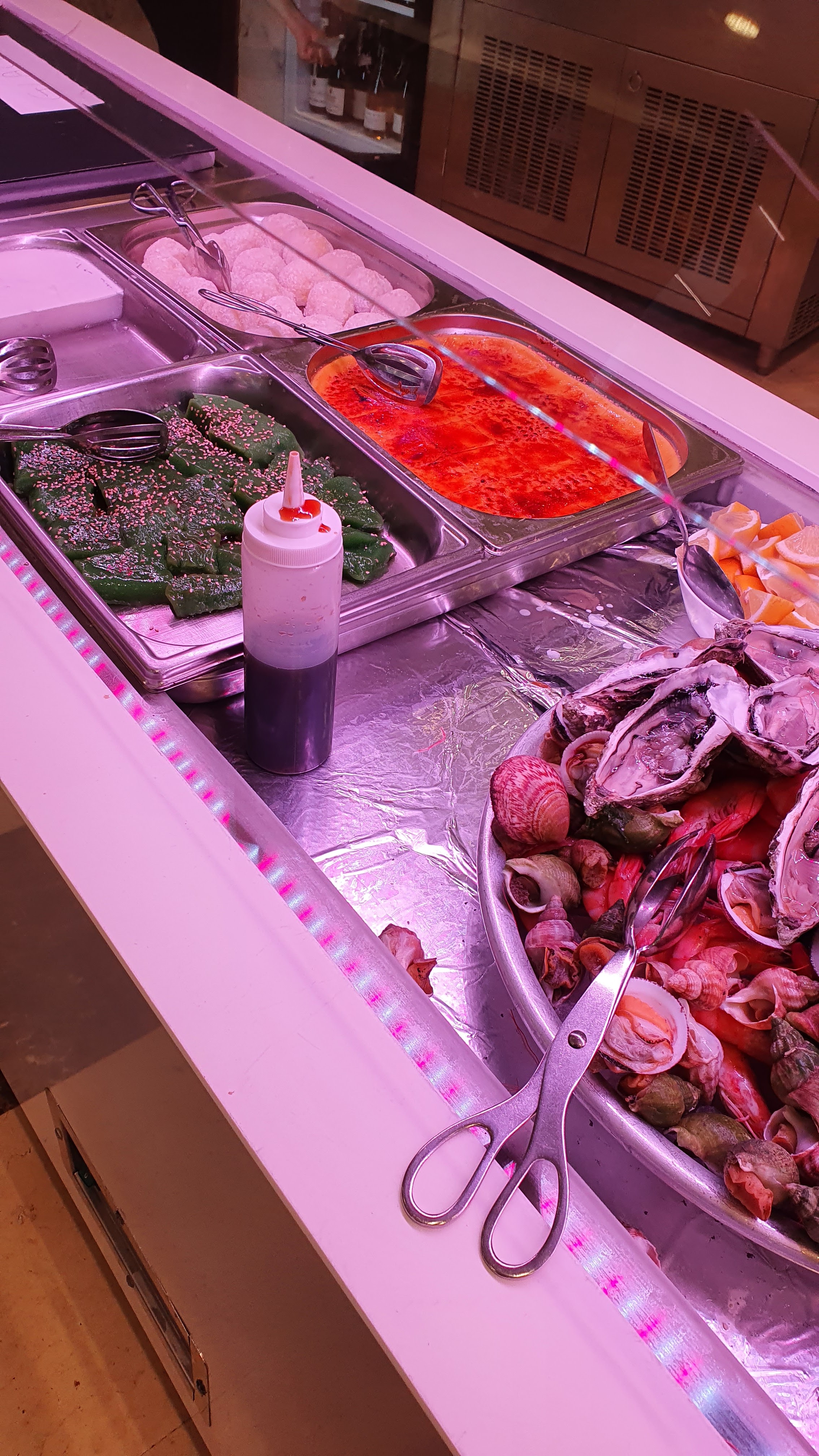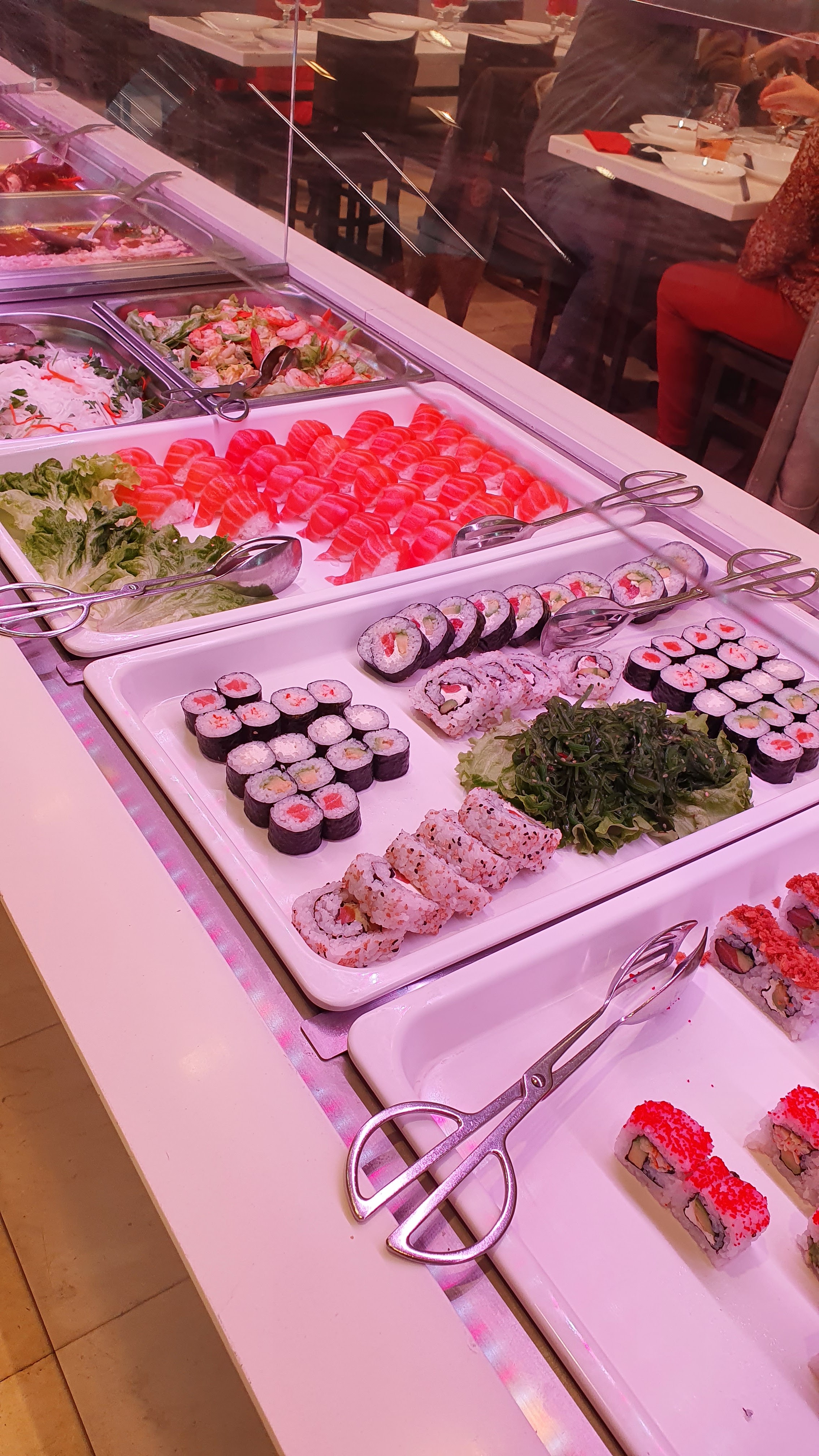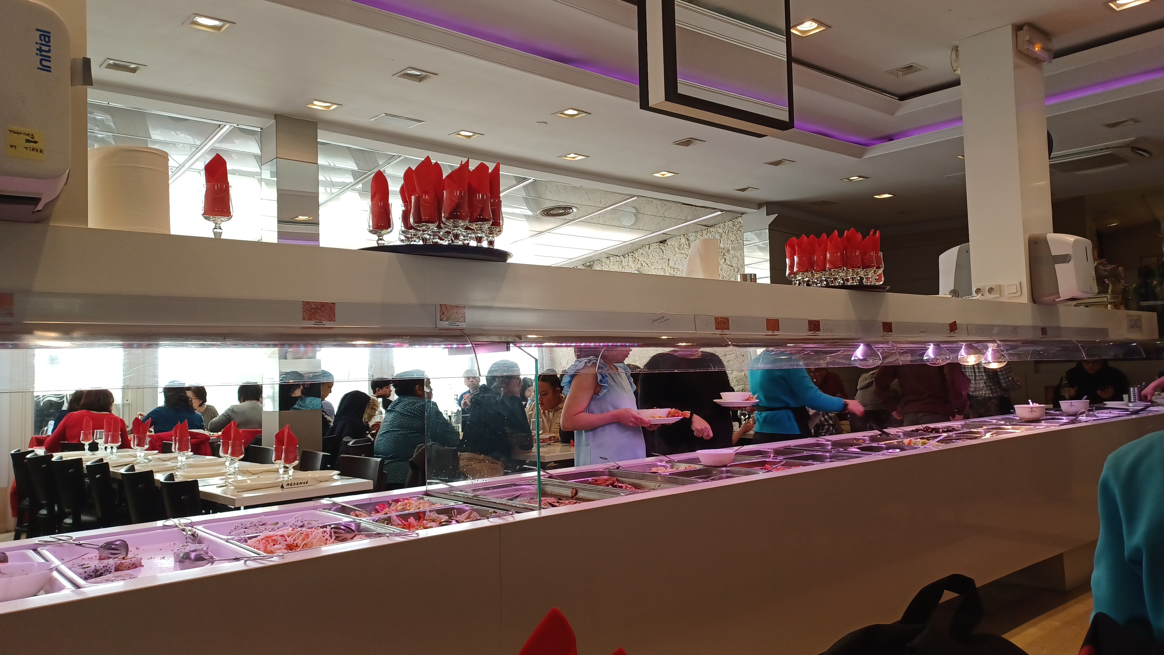 A peine assis j'ai du payer l'addition. Niveau restaurant c'est vraiment dégueulasse, nous sommes repartis 5 minutes à peine arrivée, le buffet horrible ne respect pas la chaîne du froid, les règles d'hygiènes ne sont pas au rendez-vous les gens touches les couvercles les cuillères sont posées dedans sans support vous trouverez du riz en plastique des sushis avec un choix de 3 et en plastique des Vapeurs en plastique bref à vomir !!!!!!! ÉVITEZ avant de regretter.