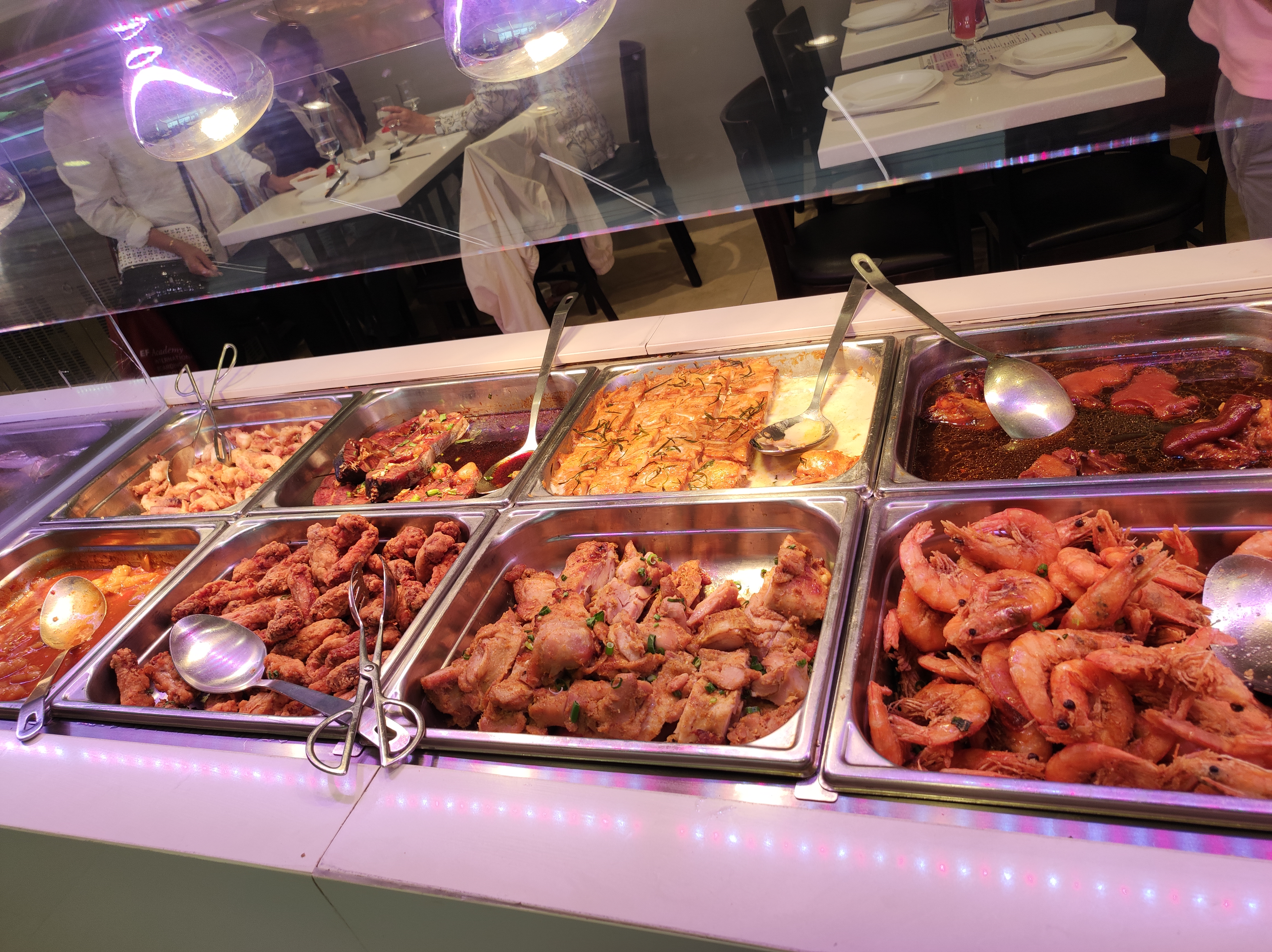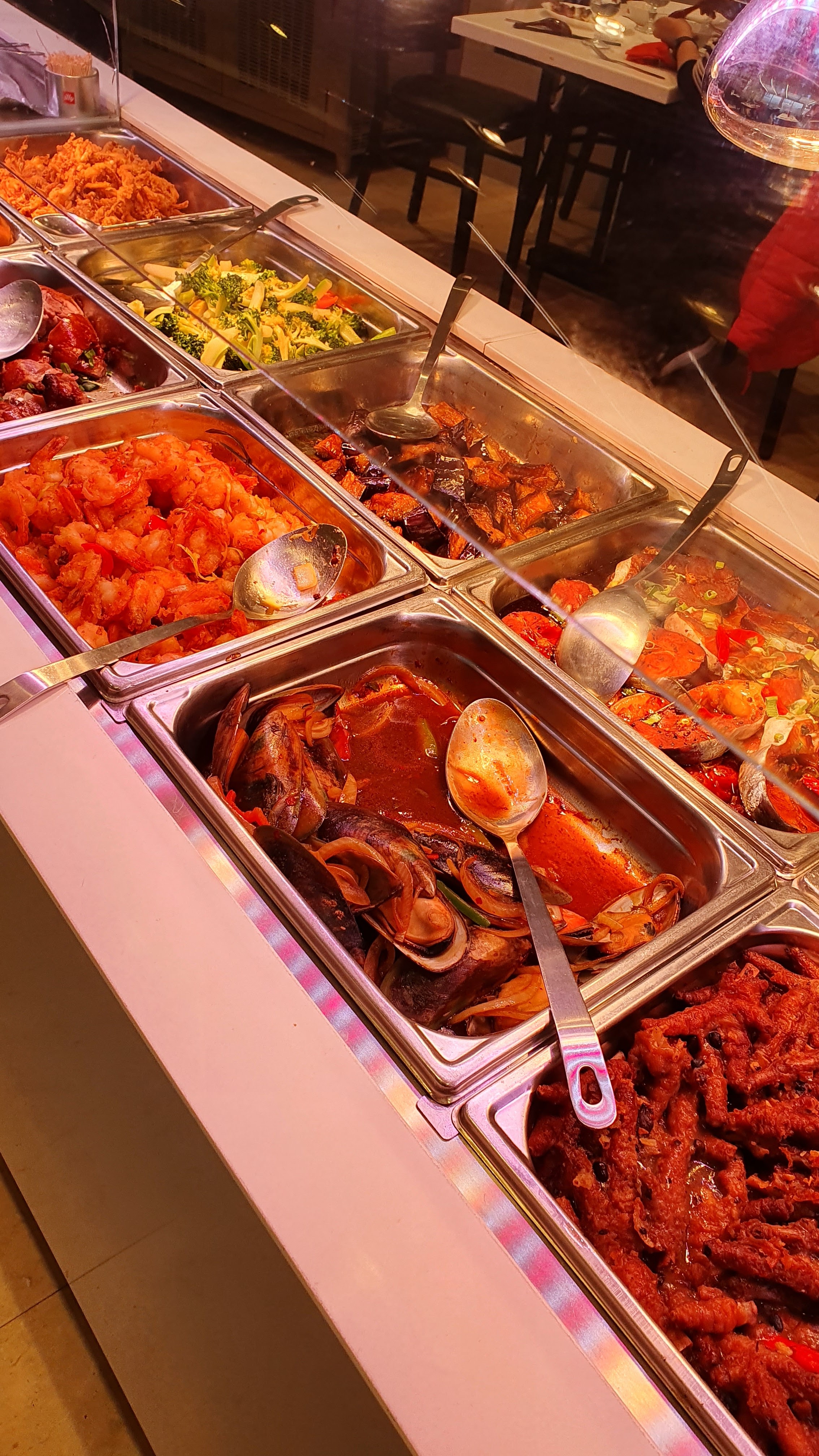 Clair, propre,personnel très efficace . Les buffets présentent une nourriture fraîche,appétissante,avec quelques spécialités comme les pattes de poulet,pieds de porcs,des poissons,fruits de mer,un excellent rapport qualité prix.