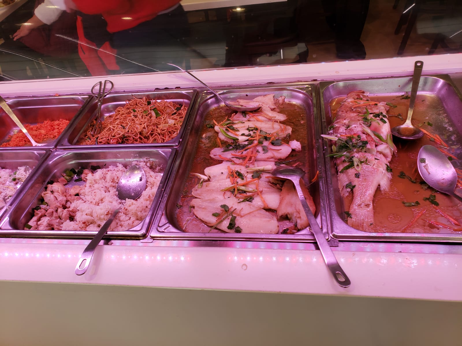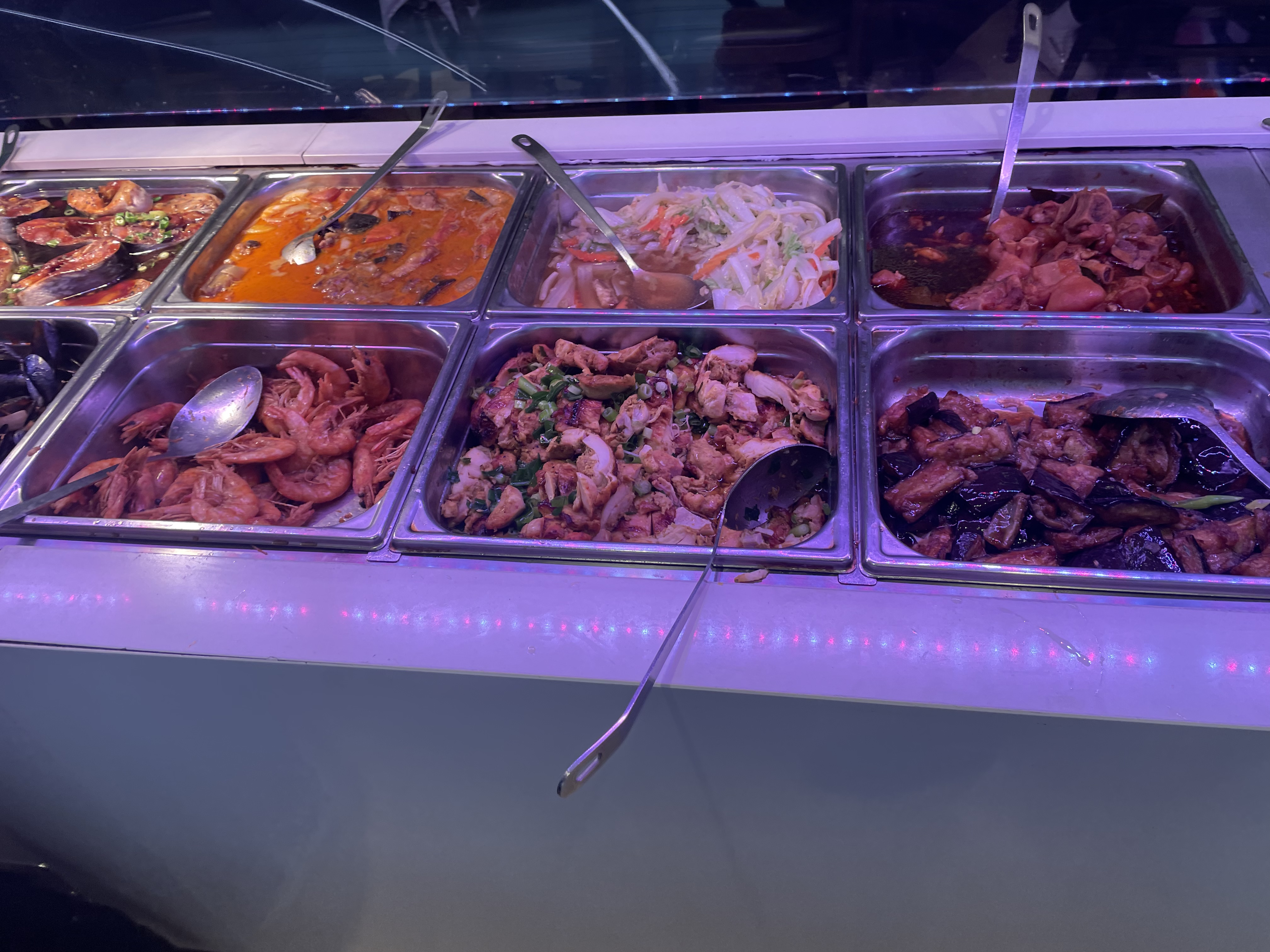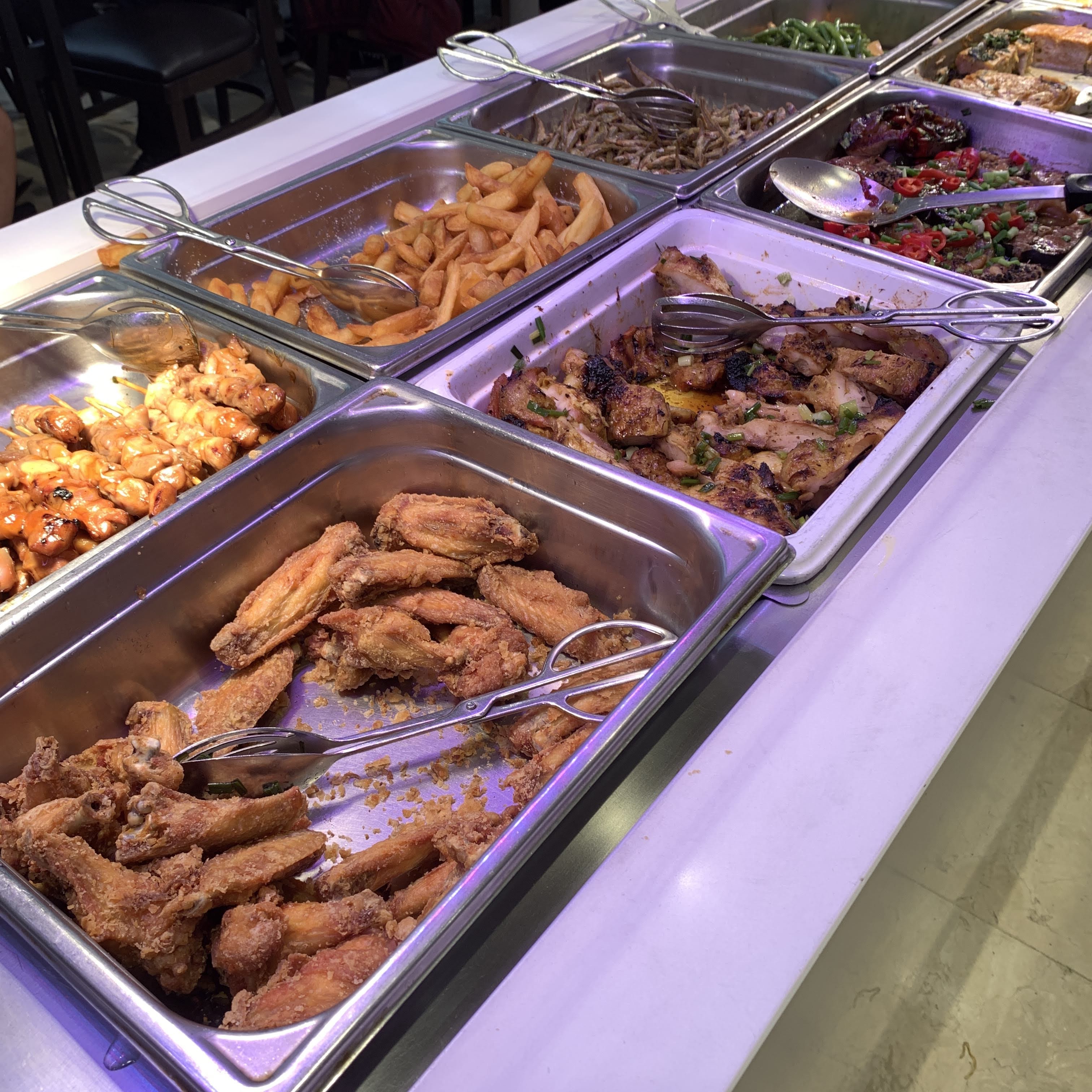 17$/personne Ne proposez que des plats asiatiques, notamment des plats d'Asie du Sud-Est, chinois et japonais, mais pas beaucoup de choix. Fourni trois à quatre desserts dont de la glace (4 saveurs), quelques salades, des entrées et environ 8 plats principaux dont 1 à 2 fruits de mer. A noter que le restaurant propose des crevettes salées et poivrées (grosses crevettes), le plat le plus populaire uniquement le week-end. Les saveurs étaient généralement bonnes, cependant, certains plats étaient fades. Seul le thé au jasmin était fourni gratuitement, les autres boissons nécessitent 1 dollar supplémentaire et un remplissage gratuit. En tant qu'Asiatique, le goût de la nourriture était acceptable mais pas distinct. Un ami français local qui dînait avec moi a suggéré que les Européens pourraient l'apprécier.