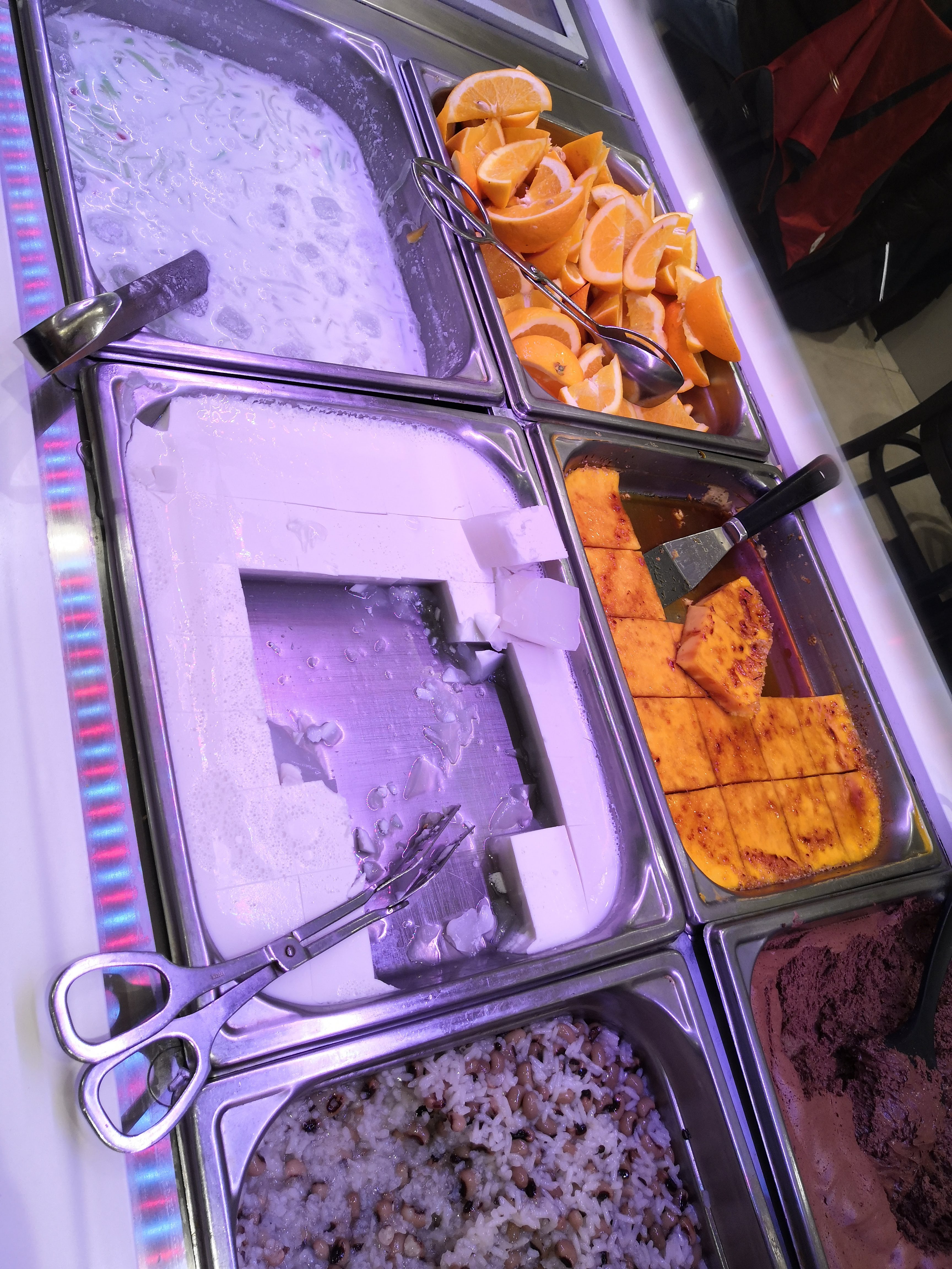 . Resto propre et limpide, dommage pas de clim ou en panne, il y fait très chaud à l'intérieur. Un grand choix de dessert de fruits frais. Poisson excellent, bcp de choix dans le buffet. Tous les Newms sont à éviter, aucun goût dommage, à revoir. Femmes de salle, très propres. Resto à redécouvrir