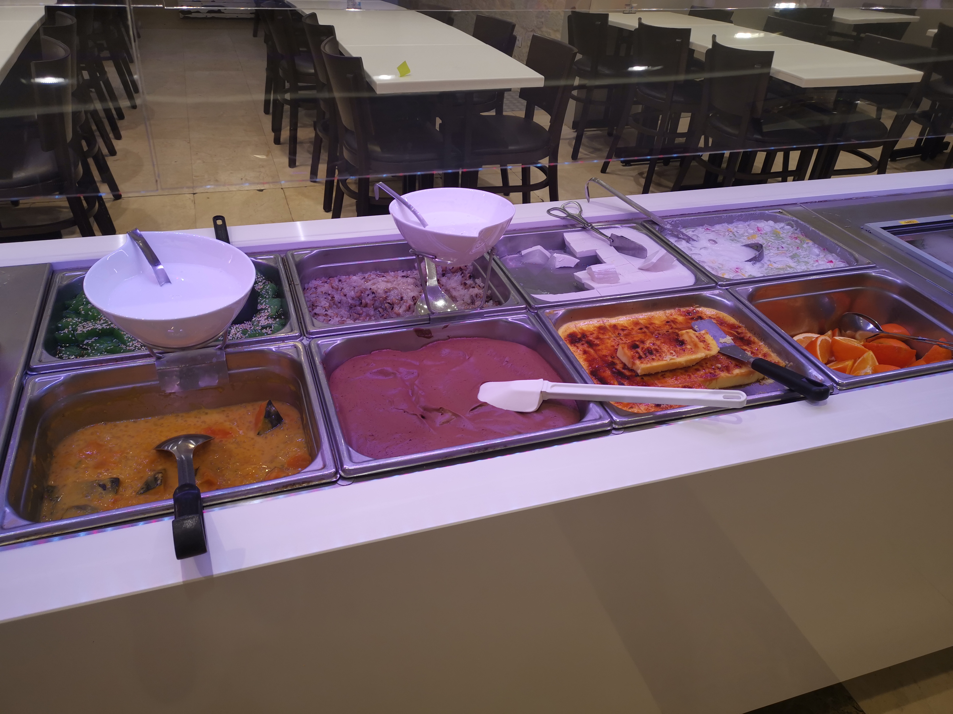 Lieu joli en soit mais très bruyant. Le buffet est grand mais n’a pas beaucoup de choix, cependant il y a pas mal de plats introuvables dans d’autres buffets du genre. Mais les indications ne sont pas précises, nous ne savons pas vraiment ce que nous mangeons. Les déserts sont vraiment très étranges...