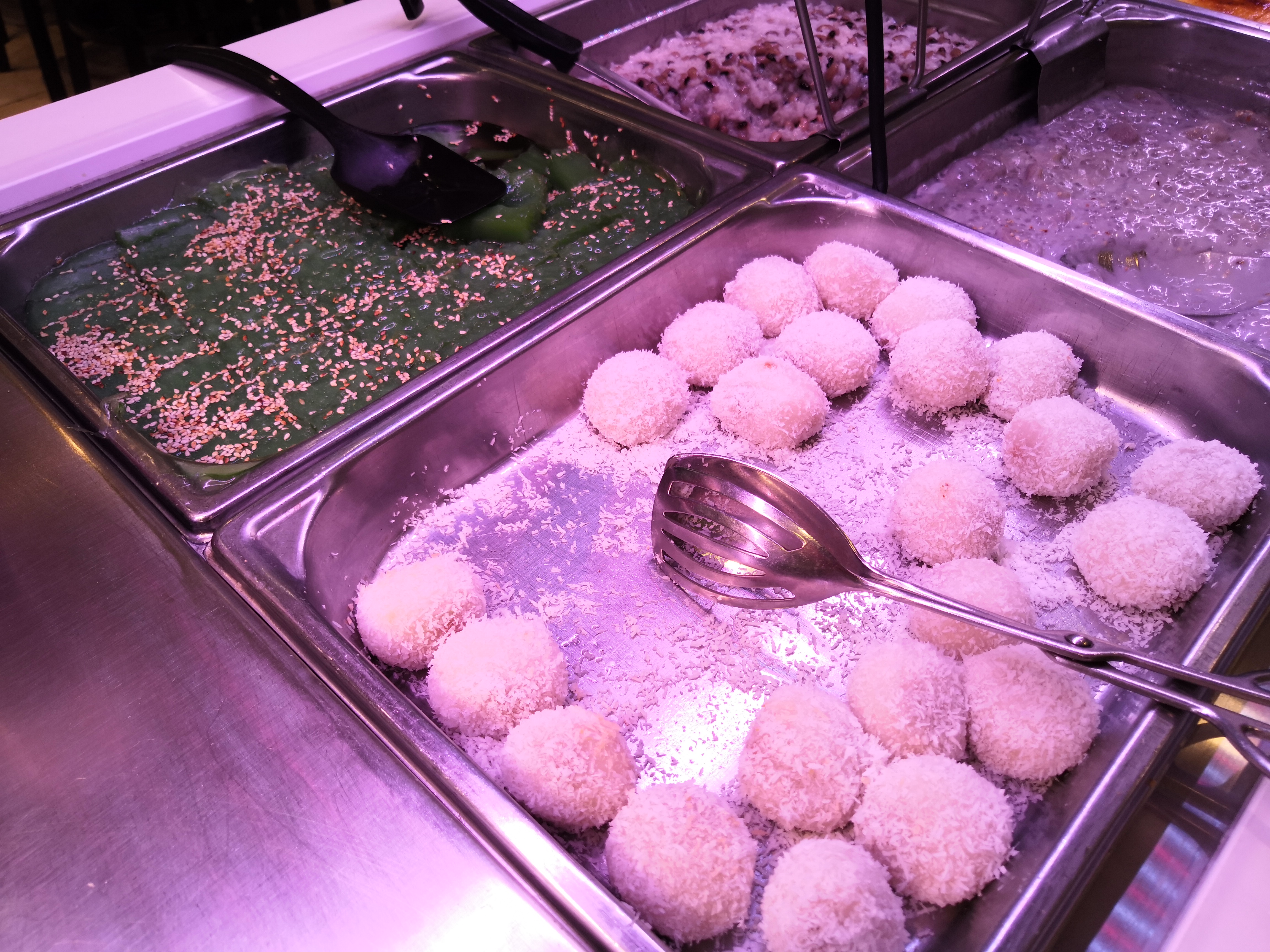 Contrairement à un buffet chinois classique, le Jardin d'Asie propose des plats plus traditionnels, comme le curry, les pattes de poulet, des ragoûts, des pâtés de riz, de la soupe tonkinoise et des desserts comme la gelée au pandan, le dessert 3 couleurs. J'ajoute que le thé au Jasmin (froid ou chaud) est inclus dans le menu à volonté. Une bonne surprise.