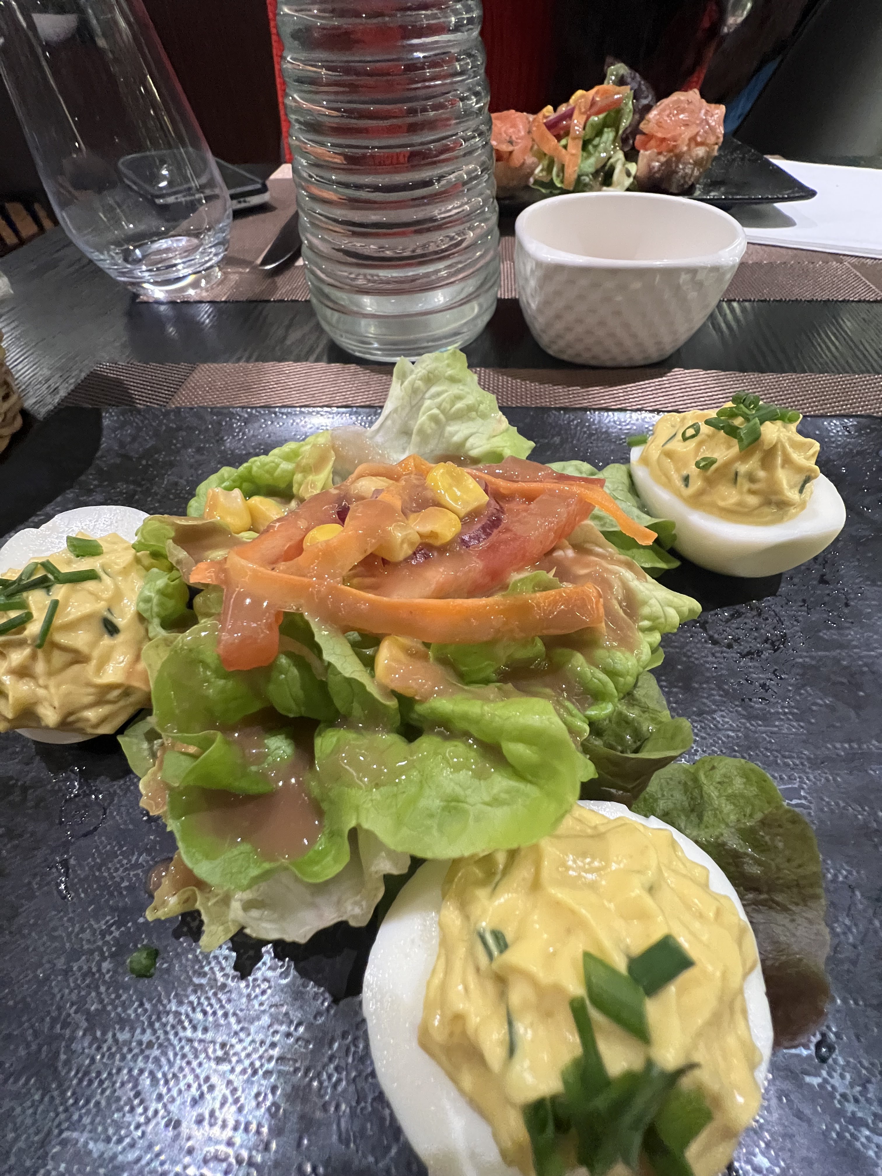 Le cadre est bien mais la nourriture n'a vraiment rien d'exceptionnel. C'est trop cher pour ce que c'est. Y a de la salade partout pour combler les vides. Vraiment décu.