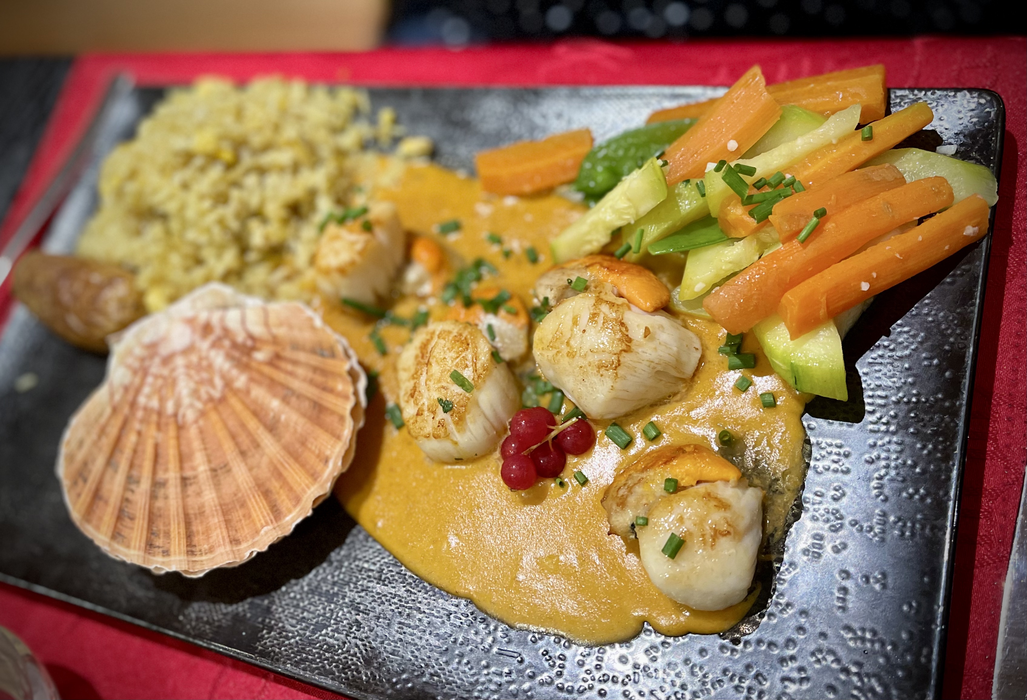 Cela faisait longtemps que je n’avais pas aussi bien mangé dans un restaurant ! J’ai commandé l’échine de porc au gingembre et avons à table commandé des salades, une bavette, des saint Jacques et tout le monde a été ravis. Et petit +, c’est une vraie crème brûlée en dessert !! Seul petit bémol, le service était un peu lent, tout comme l’attente entre le plats mais je recommande tout de même