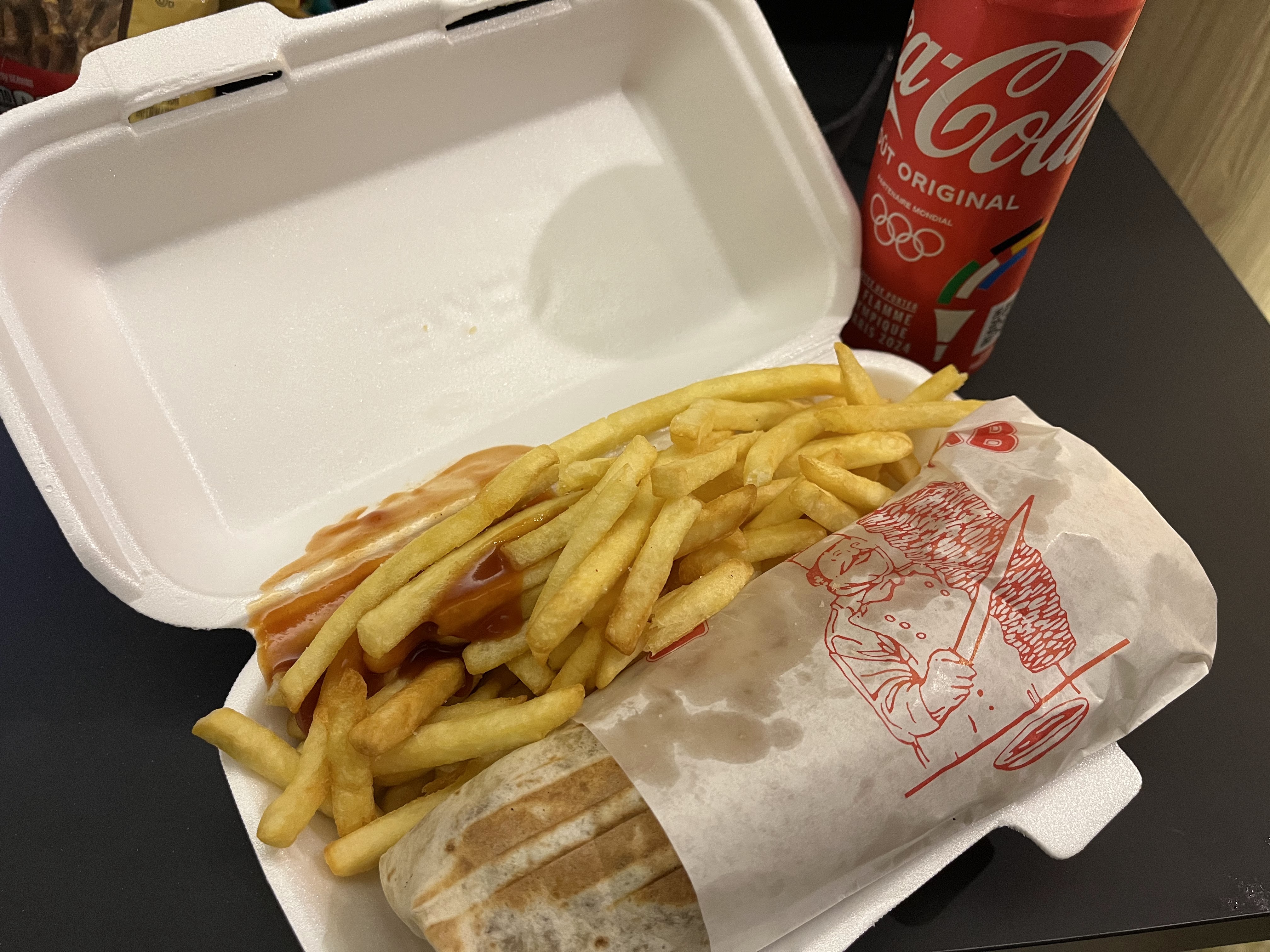 Pas un mauvais Doner Kebab épicé. Avec des frites et un Coca à moins de 10€ !