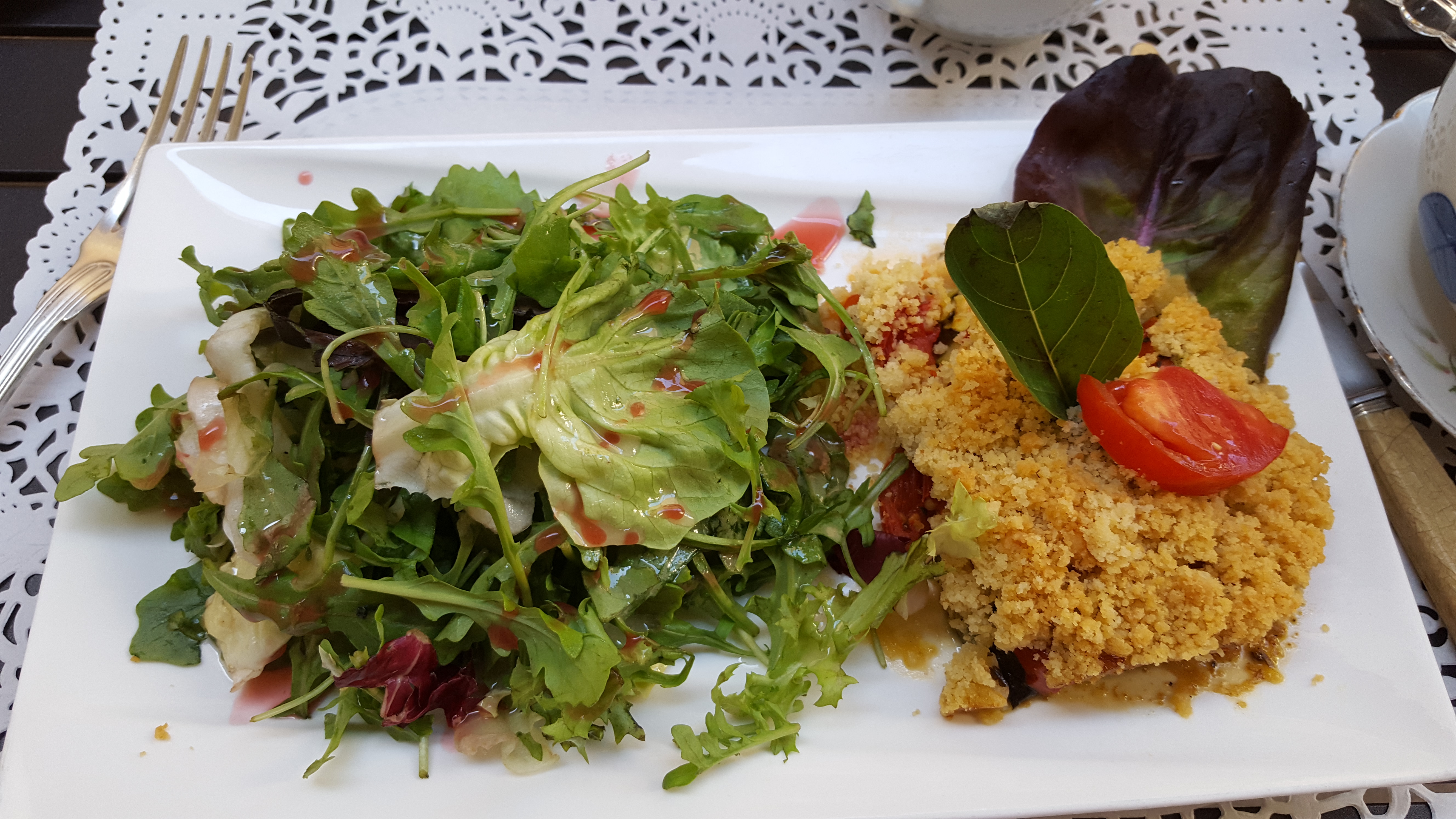 Nous avons très bien déjeuner, très bon accueil, repas en terrasse , endroit calme en plein centre ville de Poitiers. Crumble aux légumes. Gâteau au fromage blanc. Je conseille vraiment cet endroit un peu désuet et atypique. Produits locaux et bio accompagnés de thé originaux.