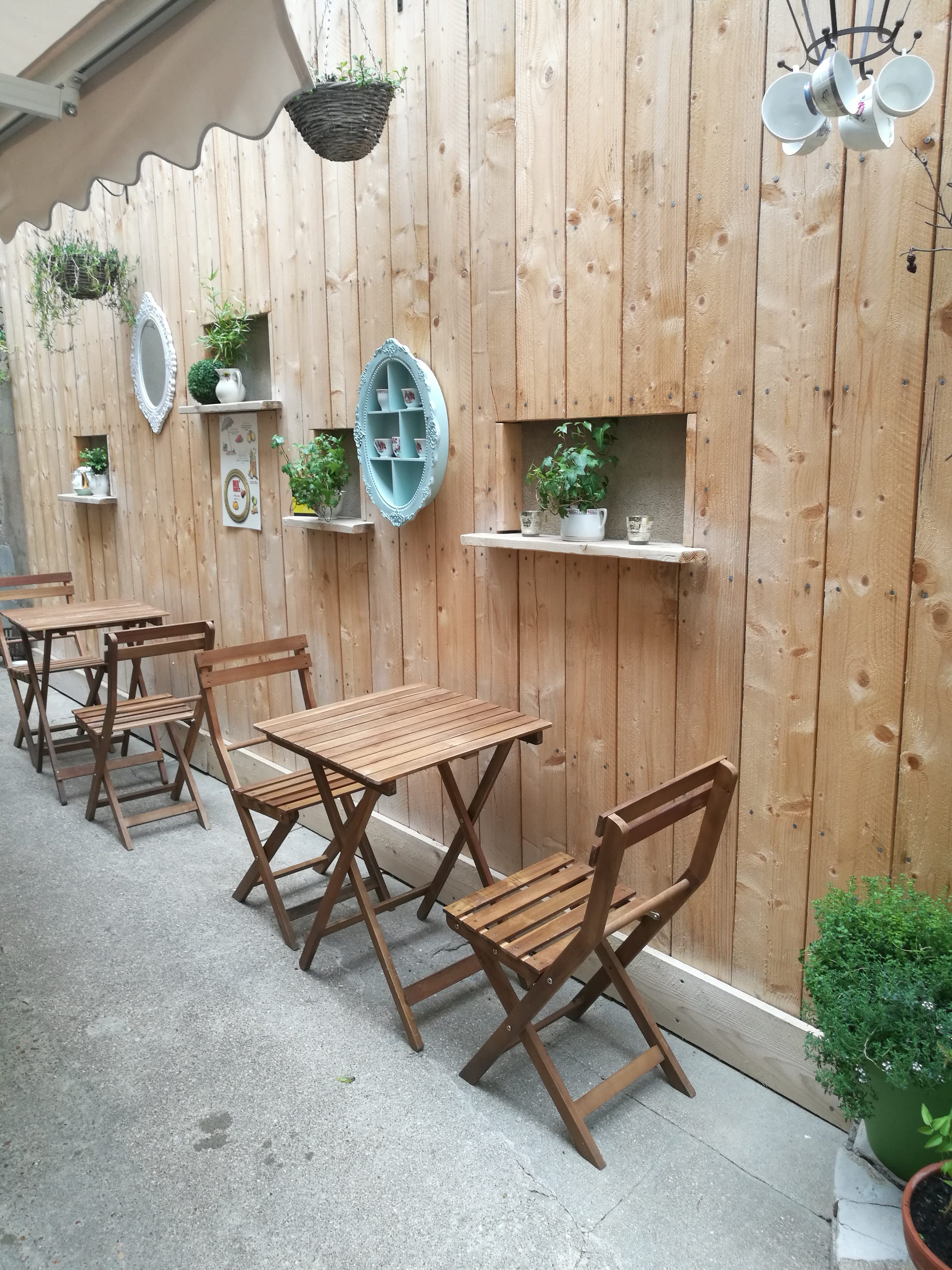 Cadre charment qui rappel les salons de thé. Proposition de plat maison. Espace un peu petite et quand il fait froid en début d'automne, sur la terrasse mise en place de couverture polaire pour se rechauffer.
