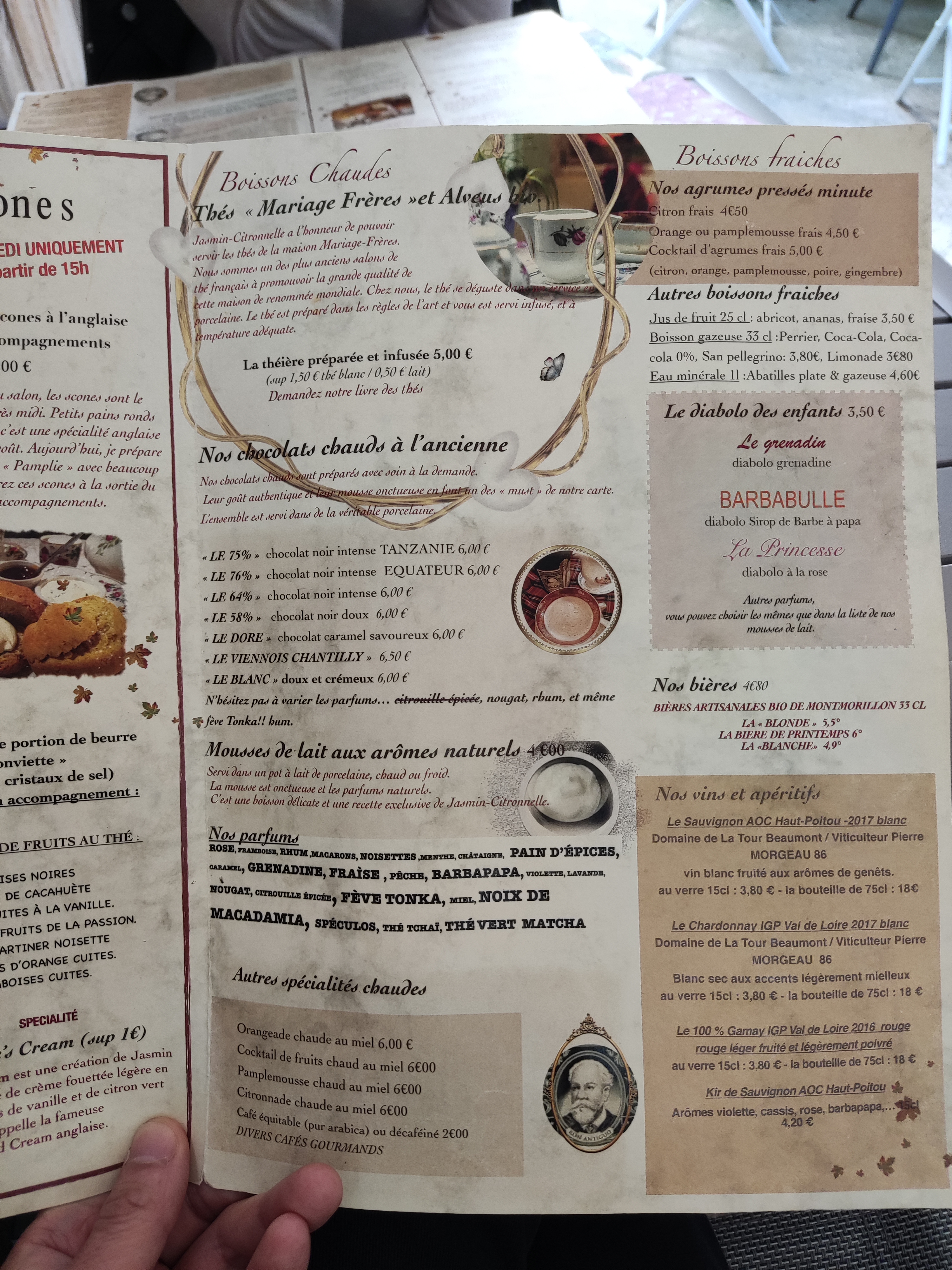 Un cadre charmant et insolite et une expérience culinaire et buvante légèrement différente pour la France. Toujours très français, mais aussi un peu d'Angleterre en France si vous prenez les scones pour le thé de l'après-midi un samedi après-midi après 15h.