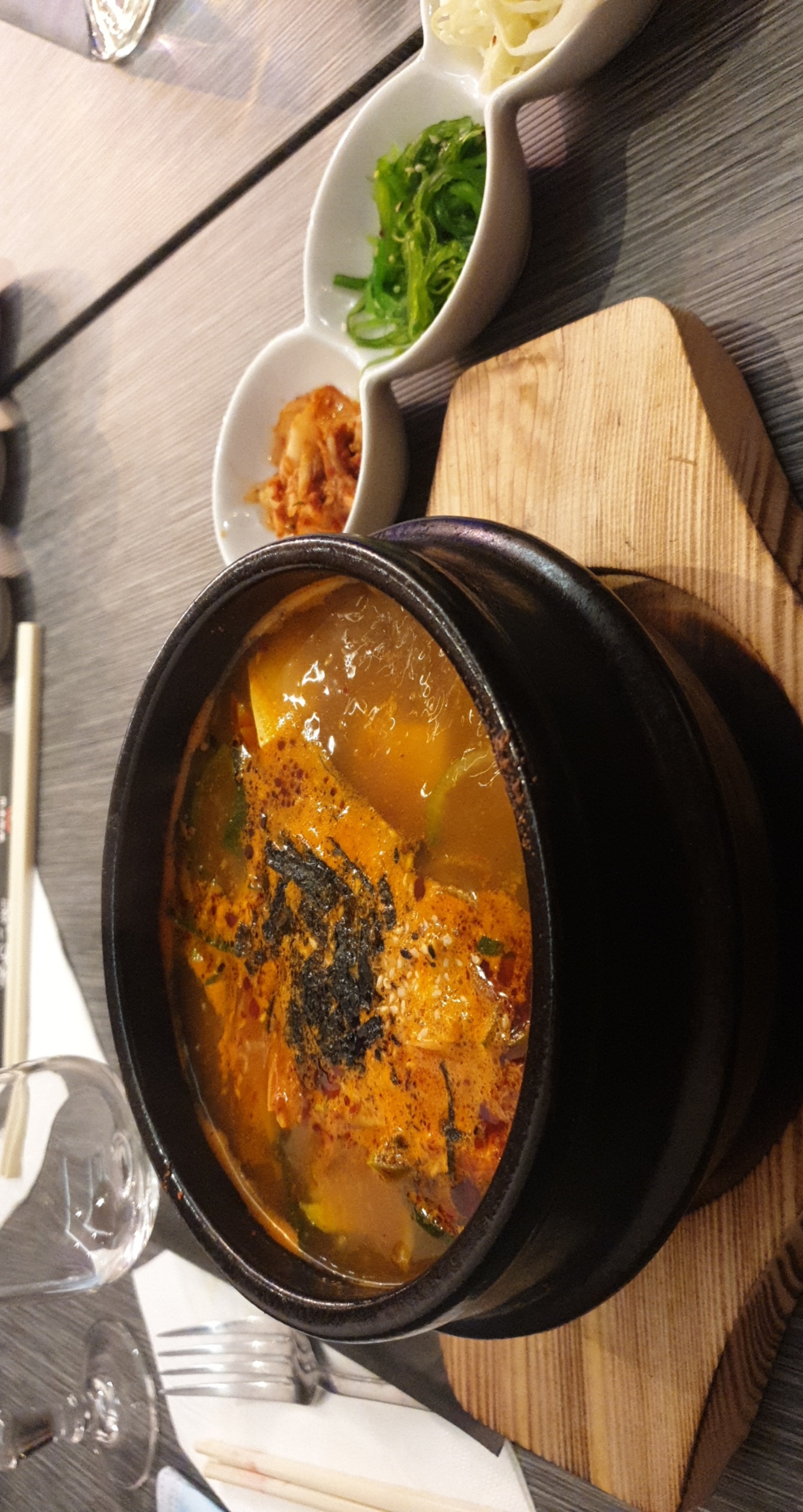 Très bon Bibimbap qui continue à cuire dans son bol en pierre chaud, bien accueillie alors que je suis arrivée peu de temps avant l'heure de fermeture. Le bol est très bien rempli et les accompagnements étaient inclus dans le prix qui est d'ailleurs raisonnable. Je recommande.