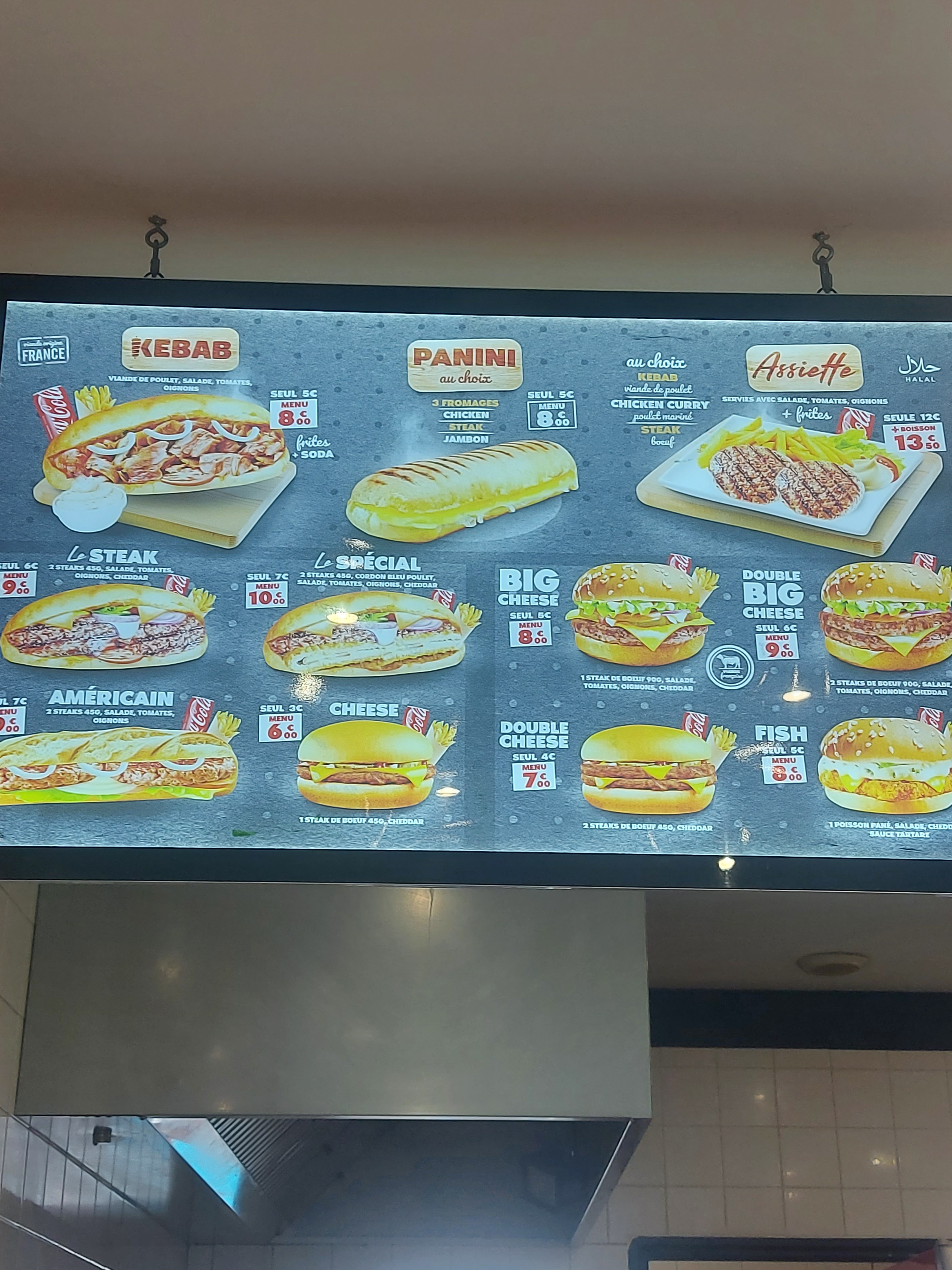 On ne pas mettre 0 étoiles. Dommage. Panini 3 formage. Sans fromages. Vendu en menu. Et bien Les frites on dû se perdre entre la friteuse et le sac. Tout comme les sauces. Les tenders ? Ne sont pas des tenders. Aucune photo ne correspond à ce qu'ils servent. En plus on nous dit qu'on ne peut rien faire d'autre que des Paninis ou de la friture car tout est éteint alors que D'autres clients rentre après nous et eux on leurs propose des kebabs. La facture de 34 euros, on la sent passée. Contrairement à ce qui nous est servi. 34 eur pour deux pain précuit. 1 avec une tranche de jambon et l'autre vide. Les frites et sauces oublié. Des pané de poulet surgelés vendu comme des tenders. Apart le menu enfant (nuggets frites) et les cannettes. Tout est bon à jeter. Et c'est bien la première fois que je met un avis sur un établissement de bouffe. Mais la clairement,c'est proprement scandaleux ! Nous y sommes allés le 10 juin 2020 pour la première et surtout la dernière fois !