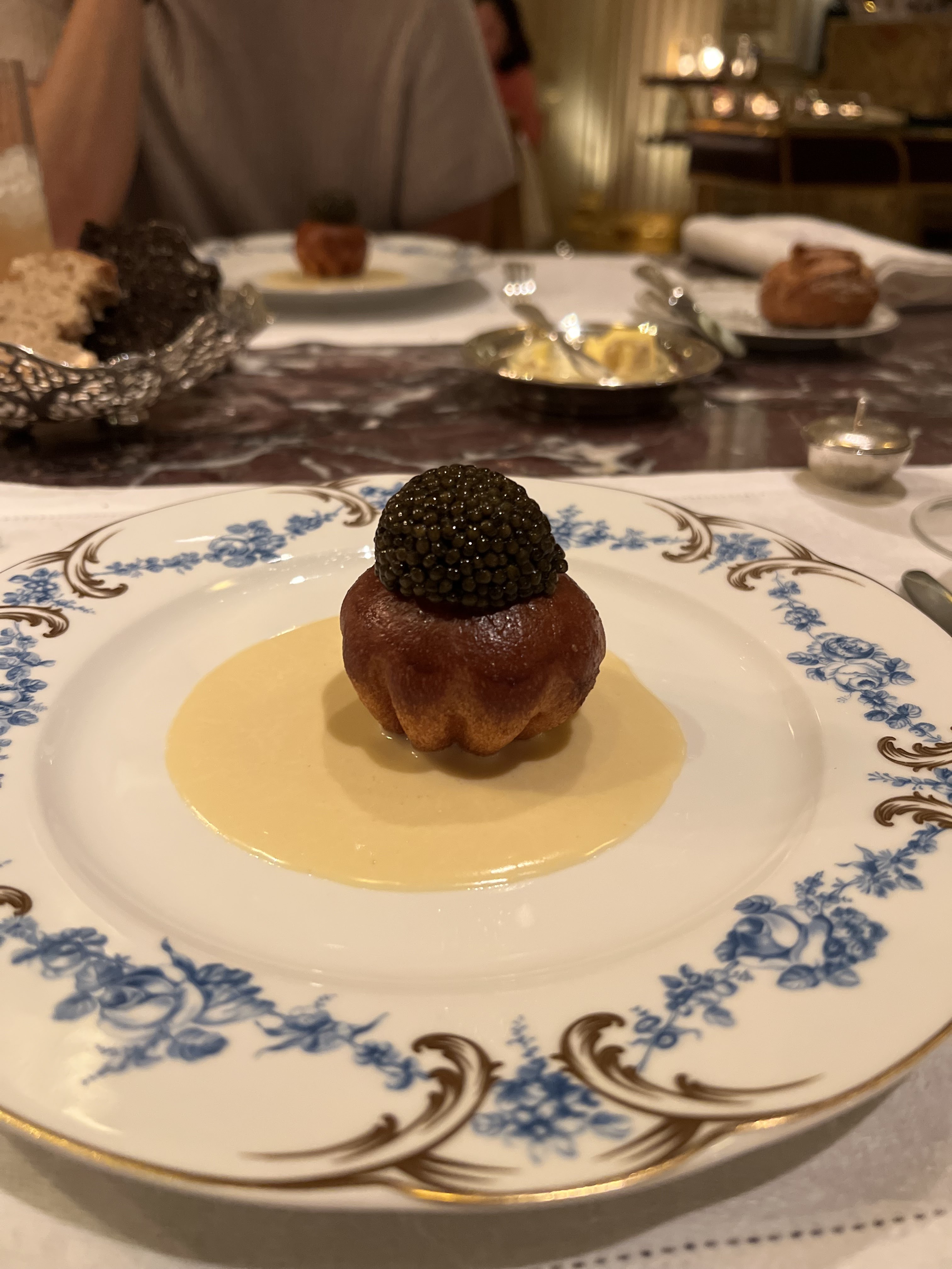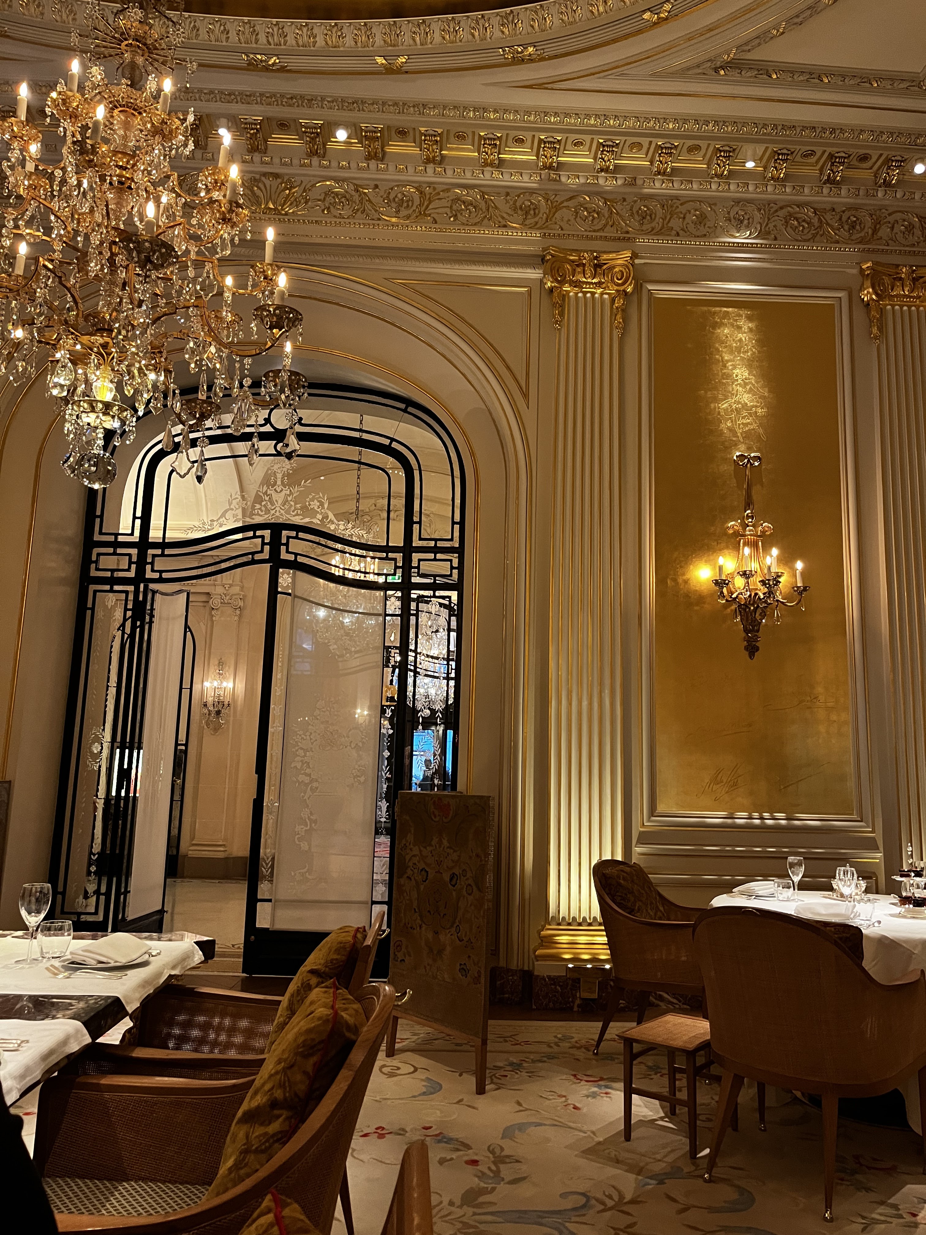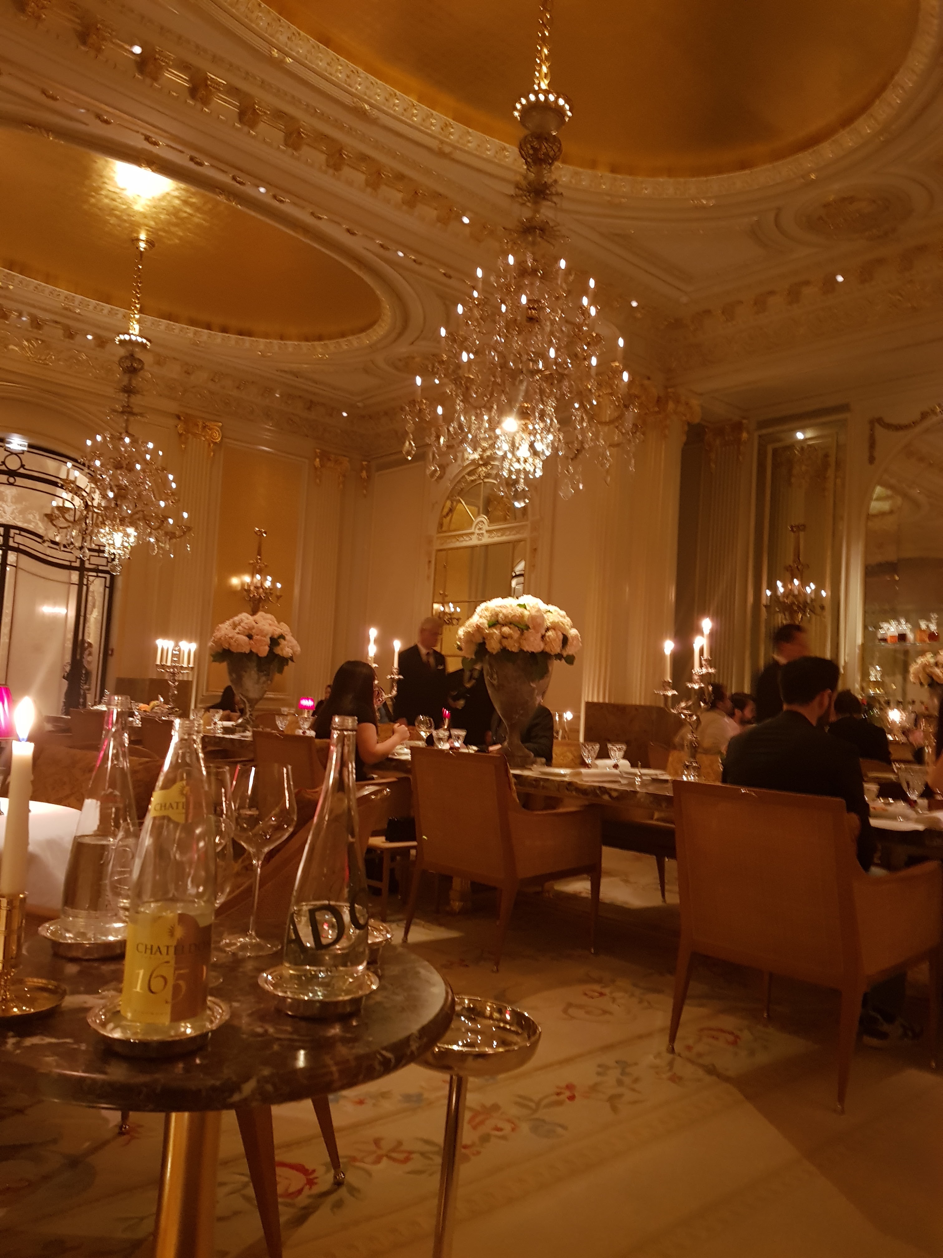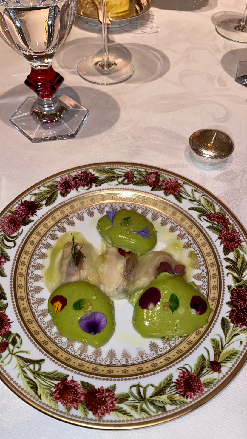 Nous avons fêté mon anniversaire. Nous avons pris le menu de Jean. Concernant le turbot, moi et mon frère avons eu 6/7 arrêtes chacun dans nos assiettes ce qui nous a beaucoup gêné pour la dégustation du plat. Lors du dessert un des serveurs allait enlever le bol pour la glace de mon père sachant qu’il ne s’était pas encore servi mais au dernier moment un autre serveur lui a dit de ne pas le faire. Concernant de façon plus globale l’arrivée des plats nous avions des fois des difficultés à comprendre la description donnée par les serveurs. Lors du repas le personnel s’est également adressé à nous à 2 reprises en anglais. Il n’y a pas de réel souci mais dans un endroit de ce standing nous aurions aimé une meilleure prise en compte des clients et donc de notre nationalité. À part le principal problème des arrêtes, ce sont des petits détails mais non négligeables pour un restaurant 1*. L’addition était tout de même excessive quant à l’ensemble des plats proposés (bons mais en deçà d’autres restaurants 1*) malgré le fait que nous soyons dans un palace. Nous avons malgré tout passé un bon moment et la décoration a été faite avec goût. Bonne découverte tout de même mais des points à améliorer.