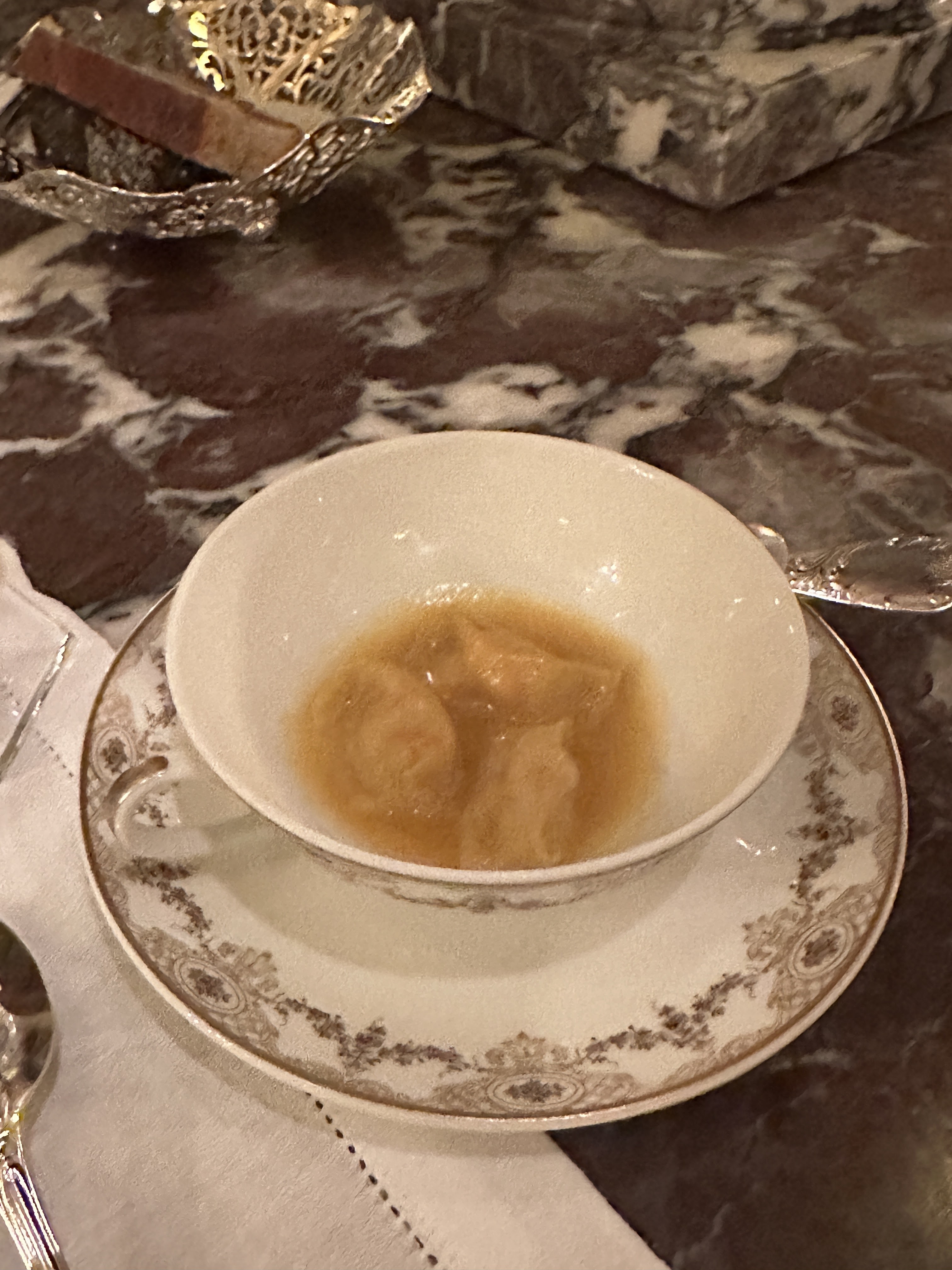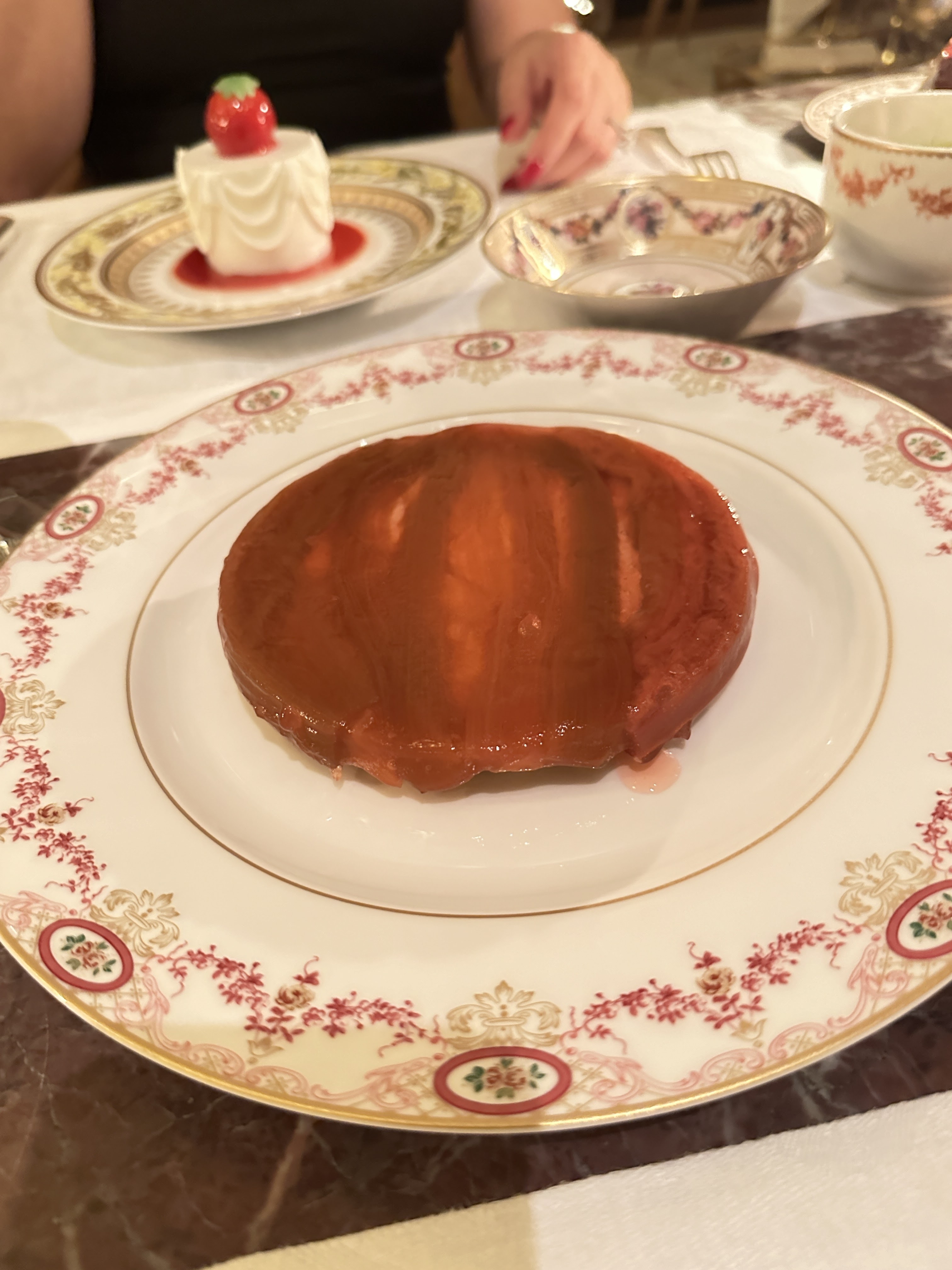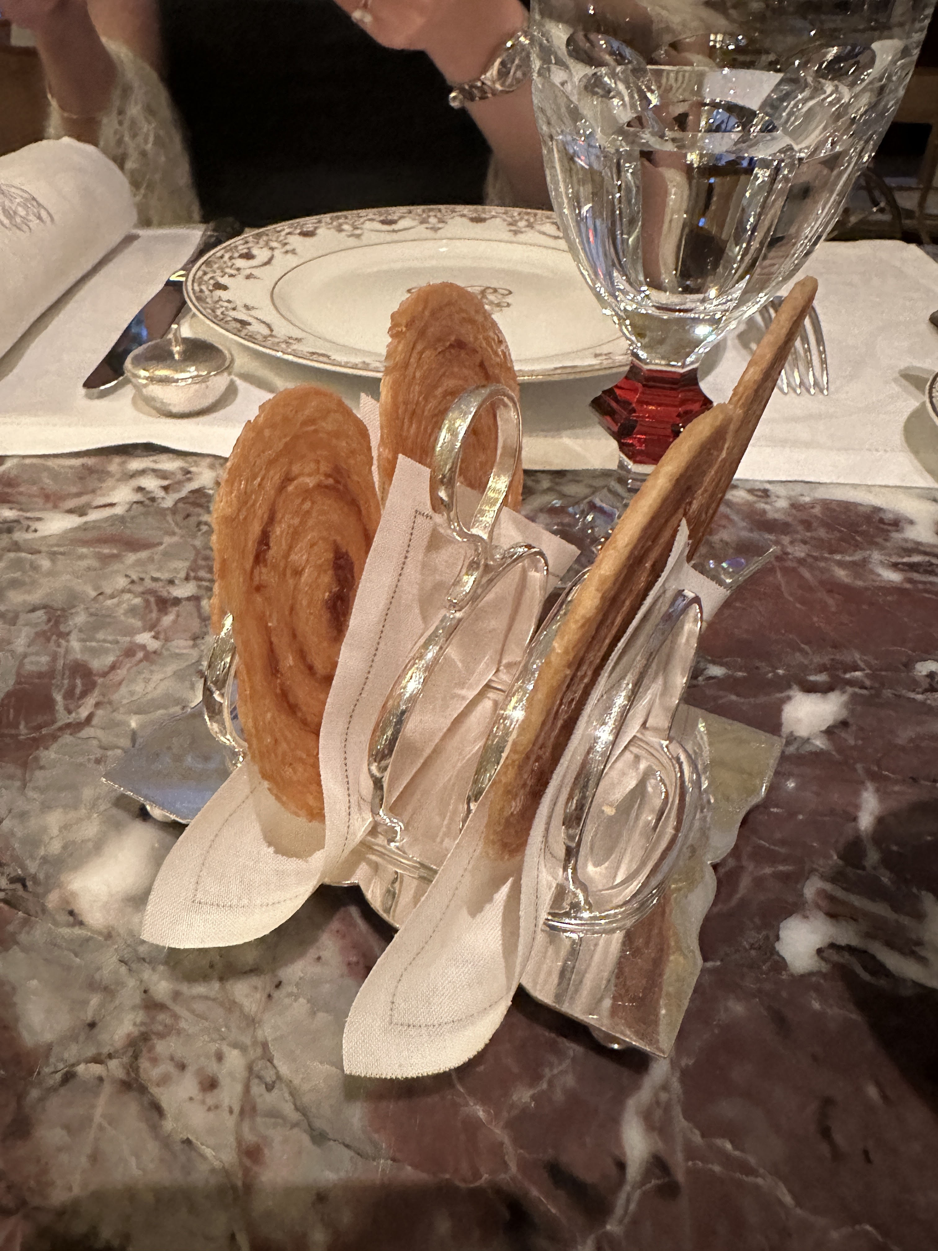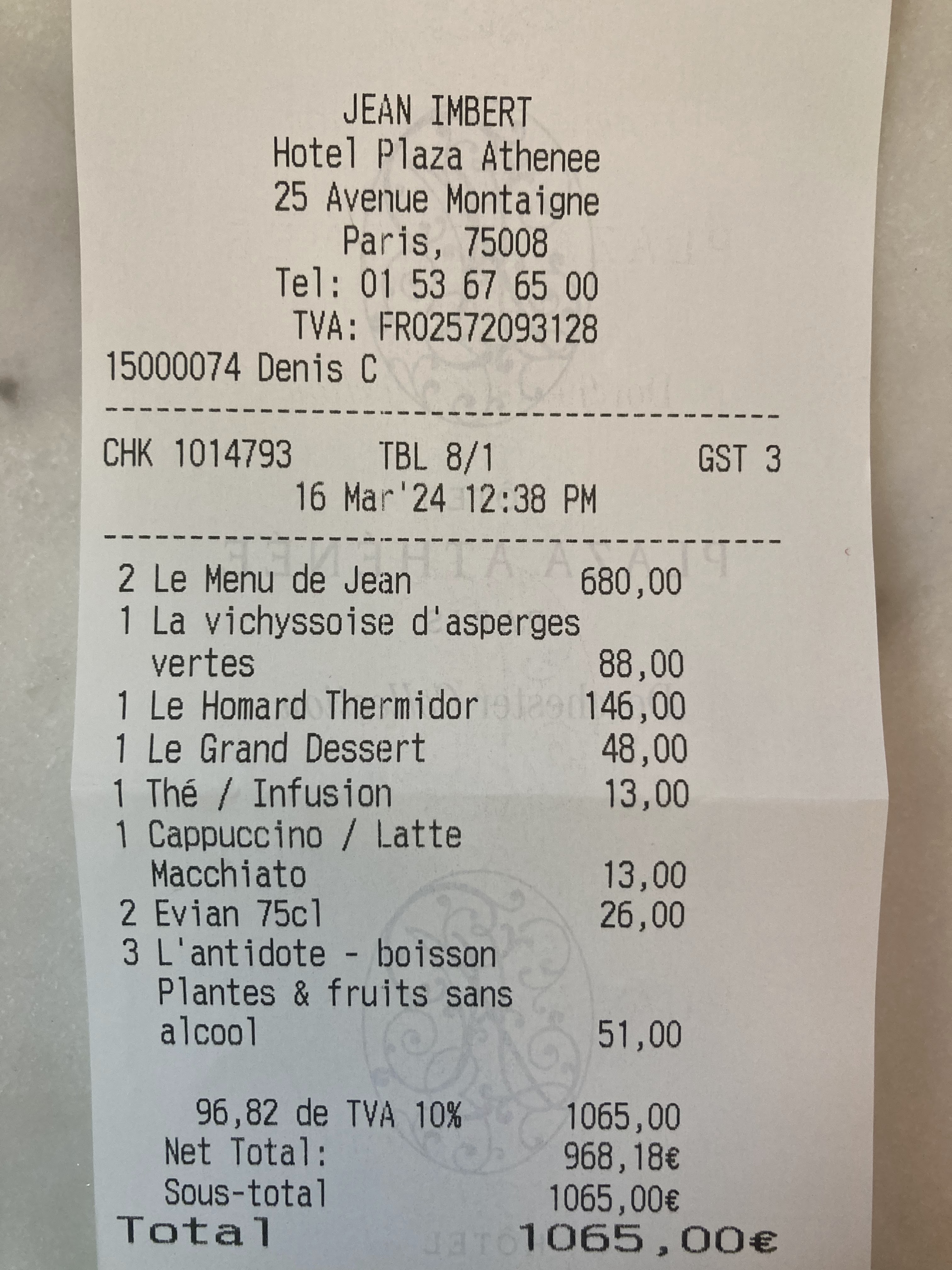 Nous avons fêté mon anniversaire. Nous avons pris le menu de Jean. Concernant le turbot, moi et mon frère avons eu 6/7 arrêtes chacun dans nos assiettes ce qui nous a beaucoup gêné pour la dégustation du plat. Lors du dessert un des serveurs allait enlever le bol pour la glace de mon père sachant qu’il ne s’était pas encore servi mais au dernier moment un autre serveur lui a dit de ne pas le faire. Concernant de façon plus globale l’arrivée des plats nous avions des fois des difficultés à comprendre la description donnée par les serveurs. Lors du repas le personnel s’est également adressé à nous à 2 reprises en anglais. Il n’y a pas de réel souci mais dans un endroit de ce standing nous aurions aimé une meilleure prise en compte des clients et donc de notre nationalité. À part le principal problème des arrêtes, ce sont des petits détails mais non négligeables pour un restaurant 1*. L’addition était tout de même excessive quant à l’ensemble des plats proposés (bons mais en deçà d’autres restaurants 1*) malgré le fait que nous soyons dans un palace. Nous avons malgré tout passé un bon moment et la décoration a été faite avec goût. Bonne découverte tout de même mais des points à améliorer.