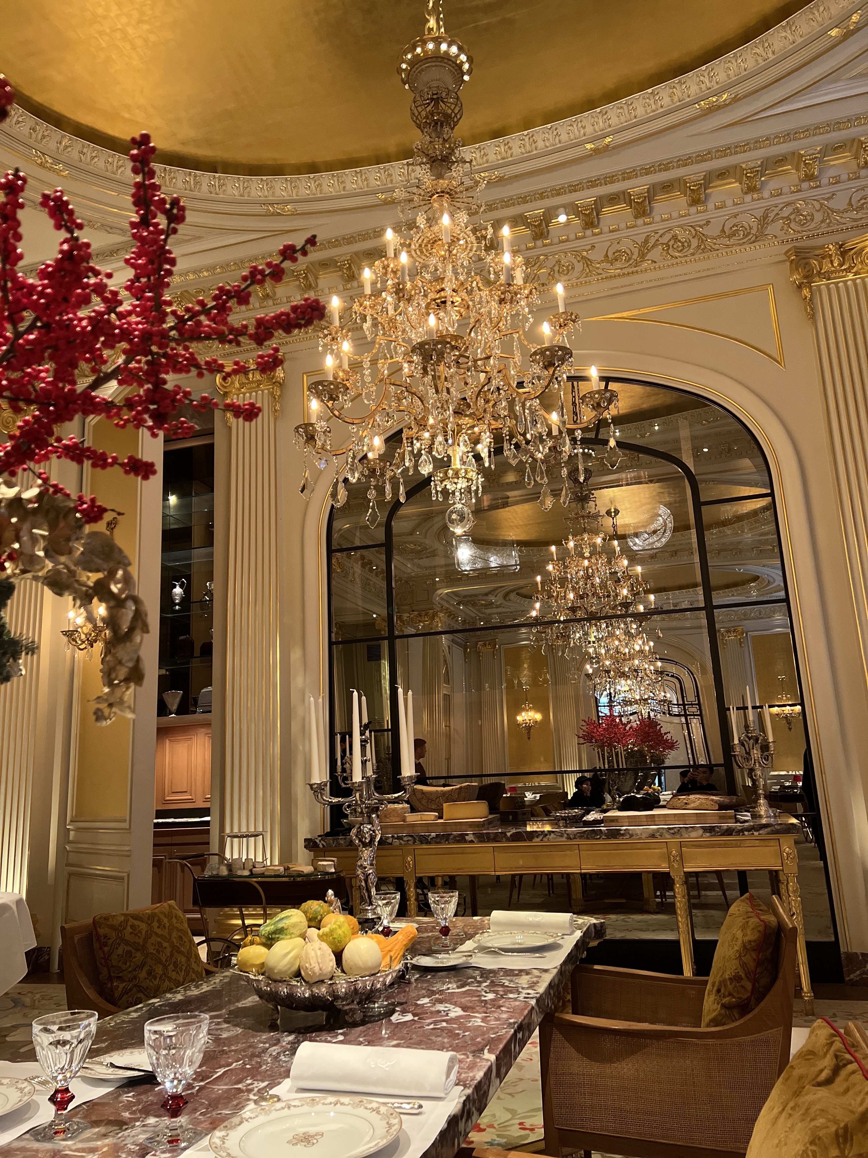 En visitant Paris pour Noël, nous savions que ce restaurant étoilé Michelin était à ne pas manquer ! Délicieusement niché à l'intérieur de l'immaculée Plaza Athénée, l'ensemble de la propriété s'illumine pendant la période des fêtes. Dès que vous entrez dans le restaurant, vous serez époustouflé par l'attention portée aux détails et au service. Si vous souhaitez vraiment vivre une expérience culinaire hors du commun, une aventure culinaire et un voyage dans l'épicentre de la gastronomie française, alors ce restaurant étoilé Micheline est fait pour vous ! Mon épouse est végétarienne et le chef a travaillé très dur pour répondre à ses besoins alimentaires. La nourriture était fantastique et l'ambiance était vraiment royale. Le chef nous a surpris avec d'innombrables friandises tout au long de notre repas et le homard était divin ! Je recommande vivement la crêpe pour terminer le repas. Plus de 5 étoiles dans mes livres et effectivement l'une des meilleures expériences culinaires que j'ai vécues de ma vie.