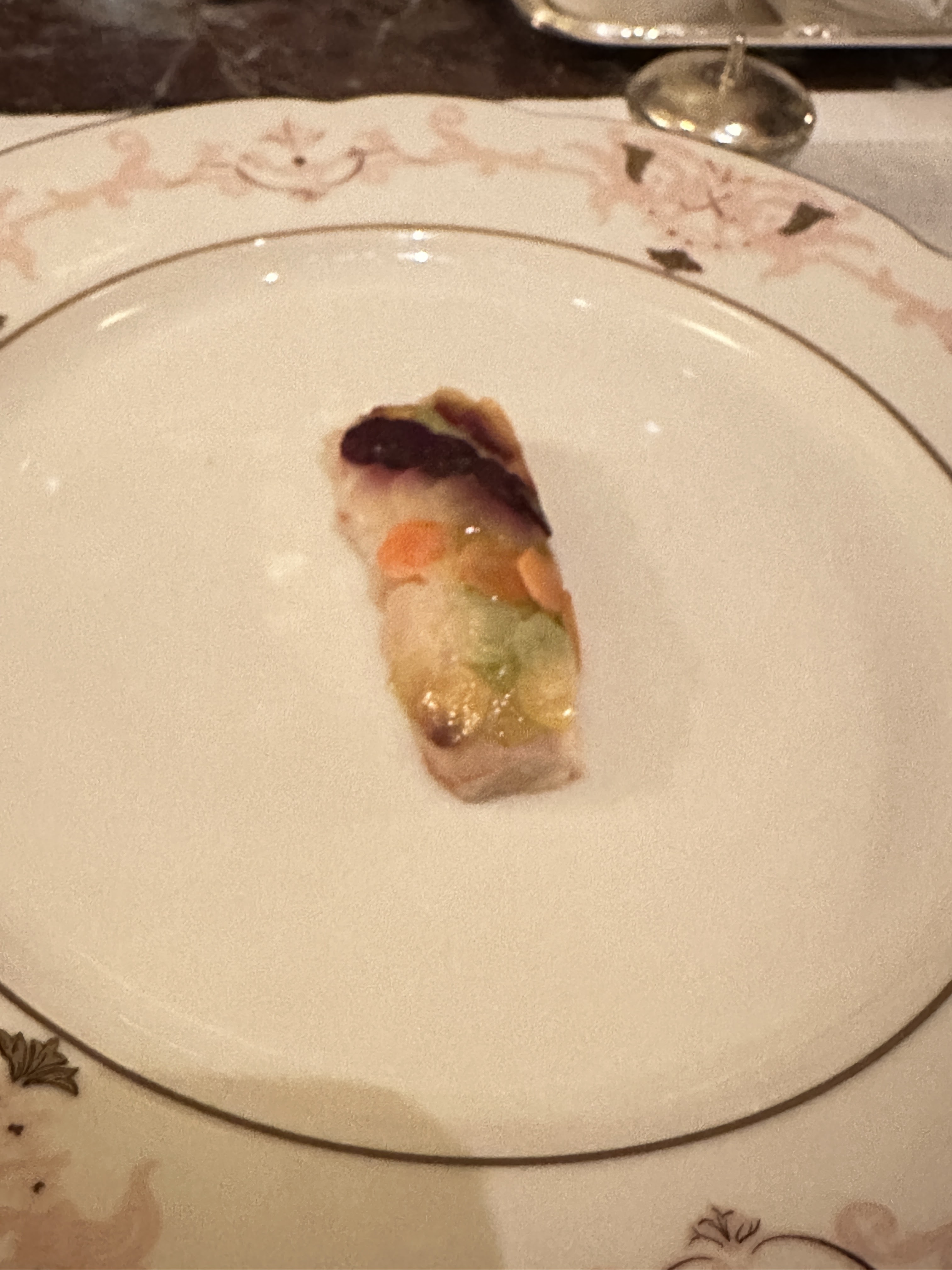 L'expérience globale a été bonne. La configuration de la salle à manger donnait l'impression d'être dans un dîner extravagant à Versailles et même si les clients étaient là séparément, c'était comme si nous y étions ensemble. La nourriture était délicieuse, mais rien d'inattendu en termes de saveur et de complexité.